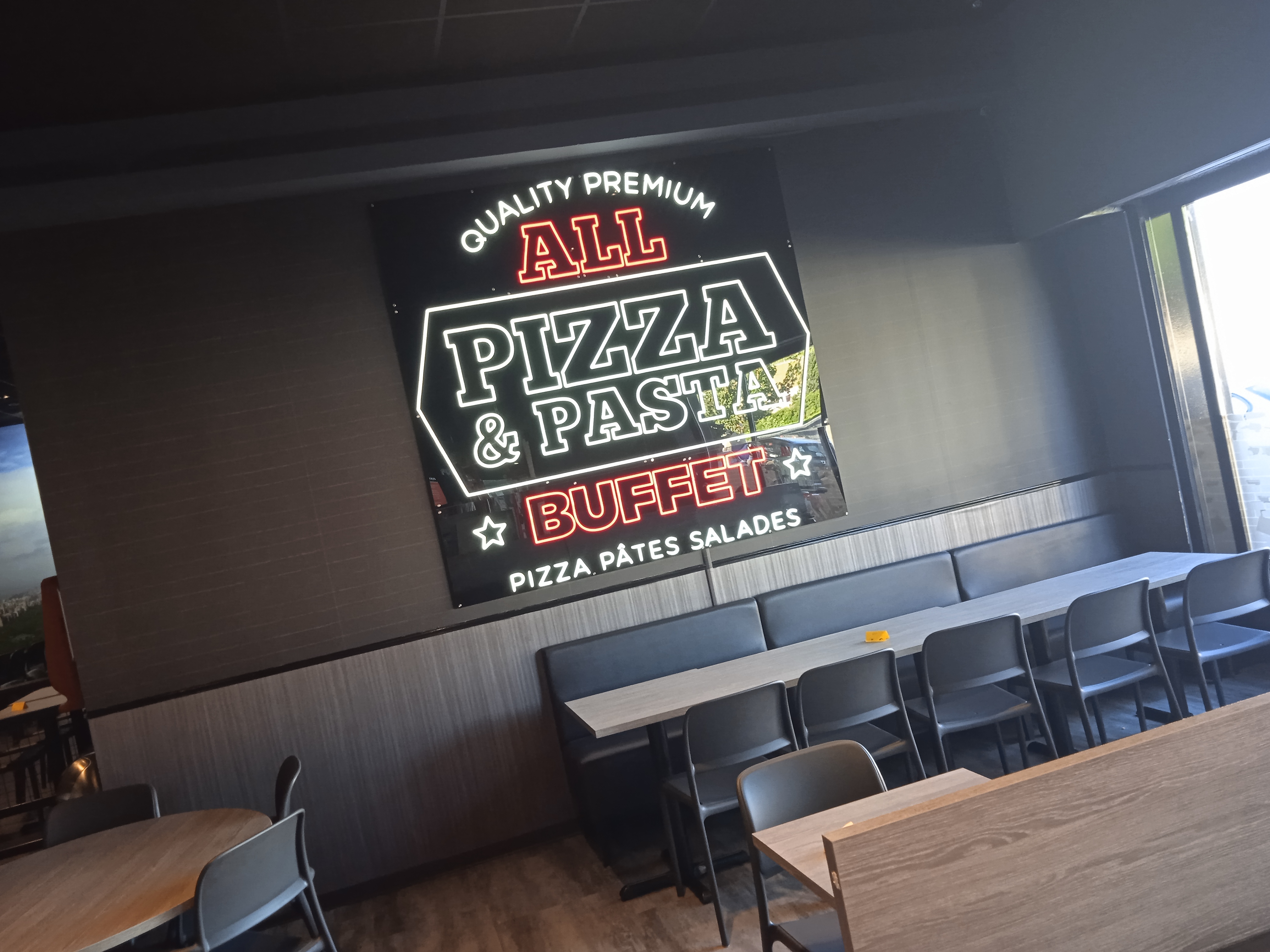 Grand restaurant de type buffet très agréable Le personnel est serviable et les pizzas très bonnes !