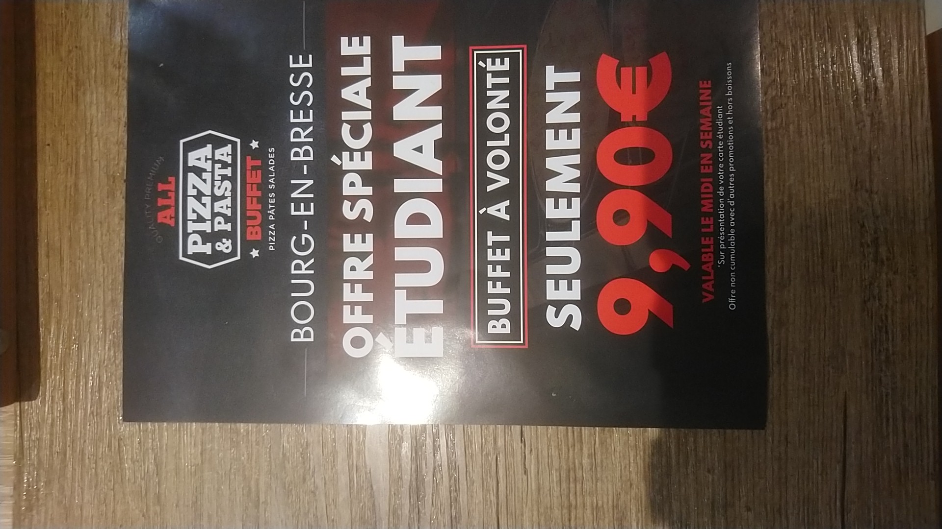 ALL PIZZA & PASTA Buffet-Bourg en Bresse Superbe soirée. On s’est bien régalé. Bien accueilli par le personnel. Les employés sont très réactifs. Restaurant très propre. Pourtant, on a bien embêté les serveuses et elles ont toujours gardé le sourire. Restez comme vous êtes. Vous êtes au top. À bientôt.