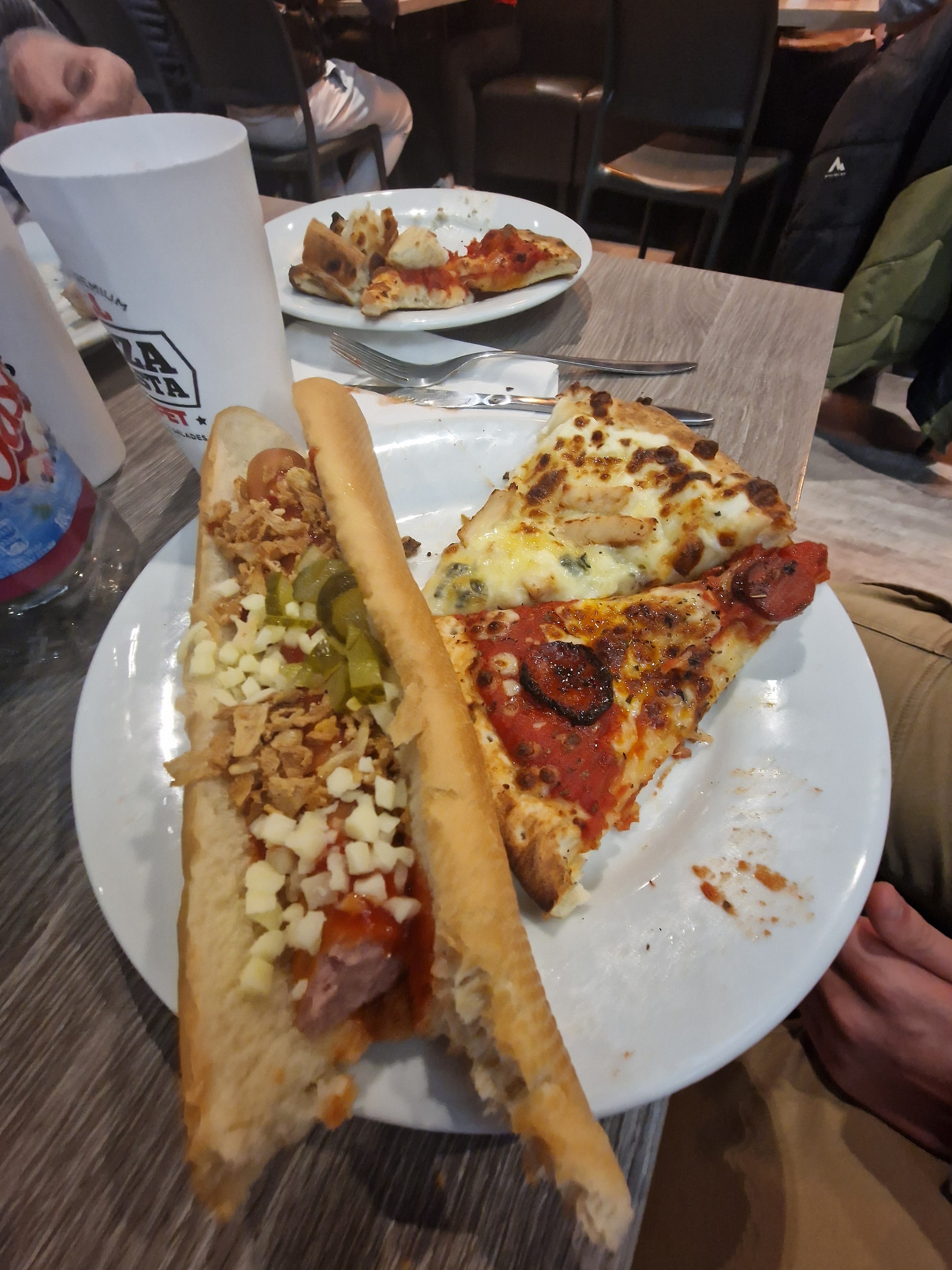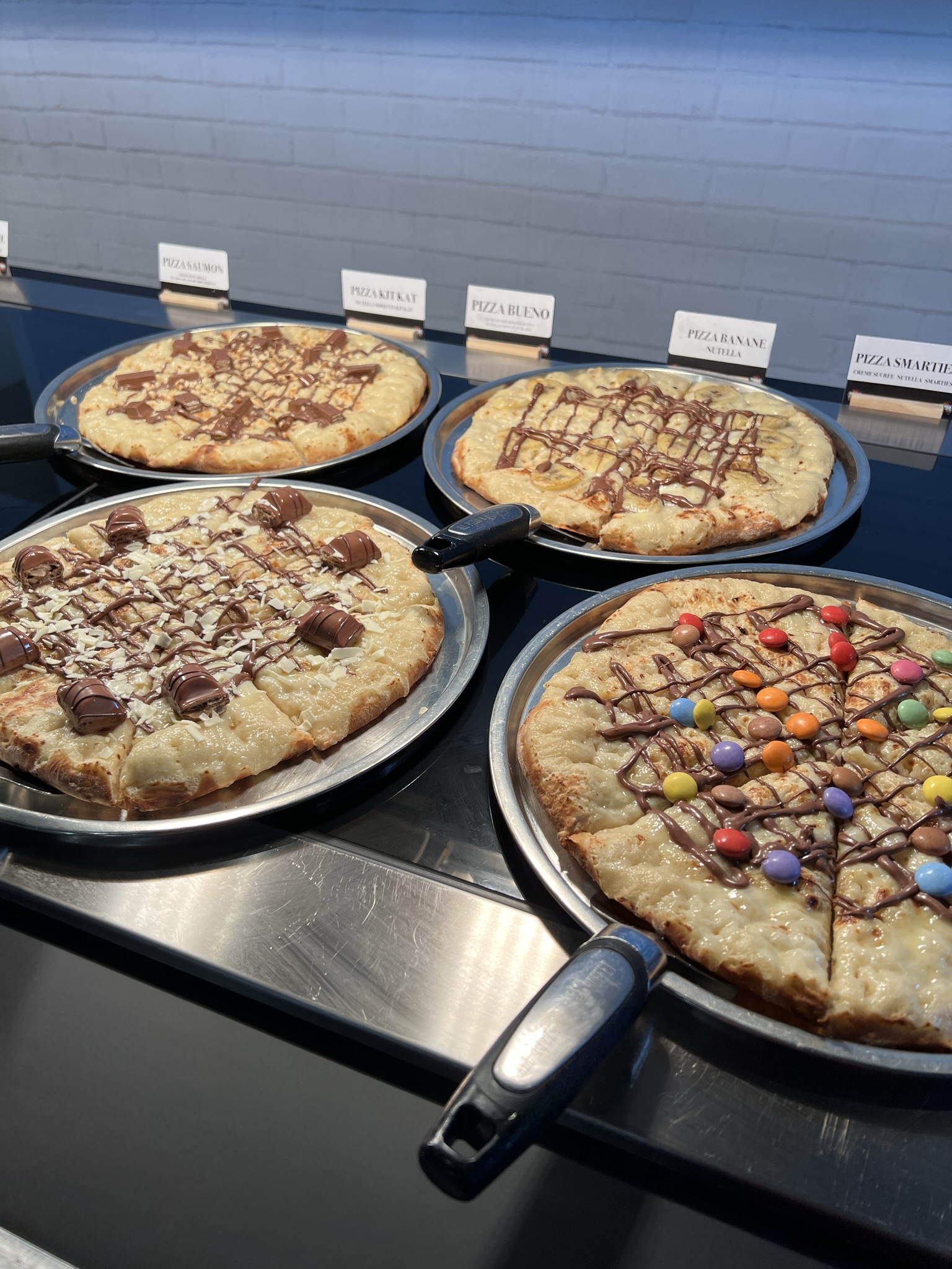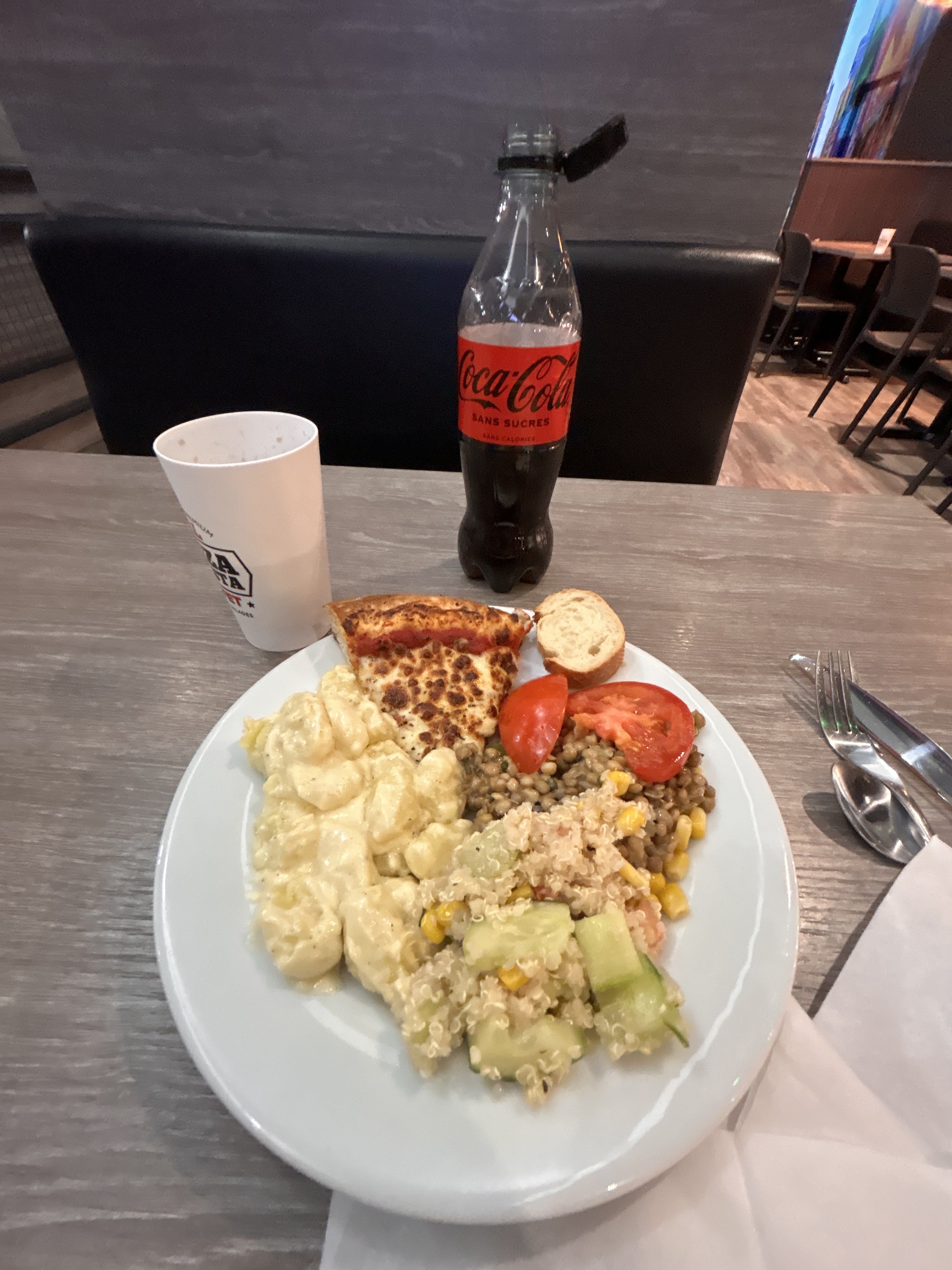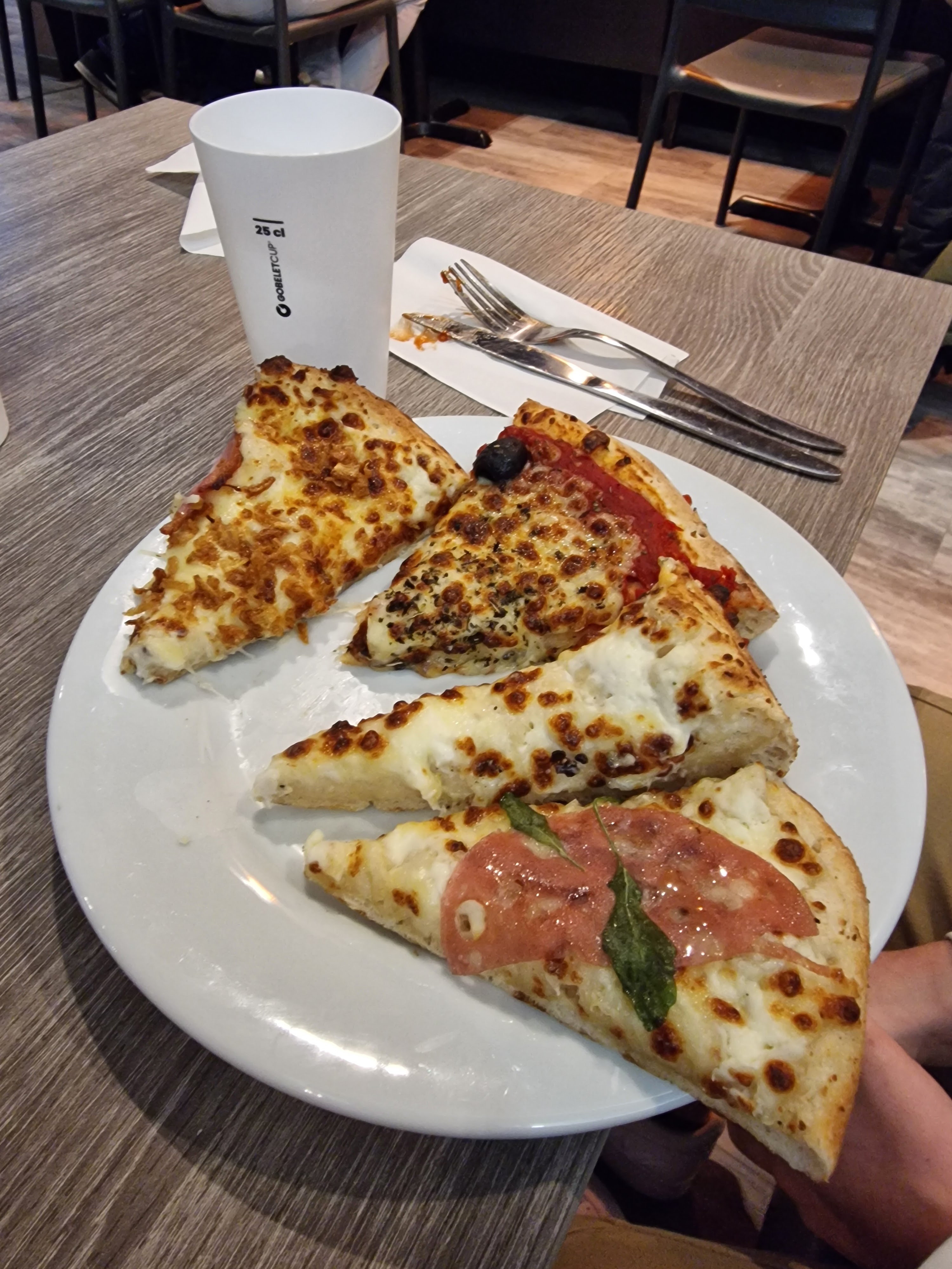 Le concept est intéressant, top même quand on y pense! mais j’ai été déçue sur plusieurs points (cela reste mon avis 😉): - j’aurais préféré des verres pour les boissons plutôt que les gobelets en carton, et une carafe d’eau au lieu de traverser le restaurant avec mon gobelet pour me rendre à la fontaine - les garnitures des pizzas sont originales, la pâte est délicieuse, beaucoup de choix (un réel bon point) mais je suis tombée sur quelques part dont la cuisson de la pâte manquait un peu - au niveau des desserts, il n’y a pas forcément besoin de plus de choix (surtout après des pâtes et de la pizza 😊), c’était très bon, mais la salade de fruits est peut être à revoir car elle manquait de saveur. Sinon l’ambiance du resto est sympa, les serveuses sont agréables, il y a de l’espace pour venir en famille 👍