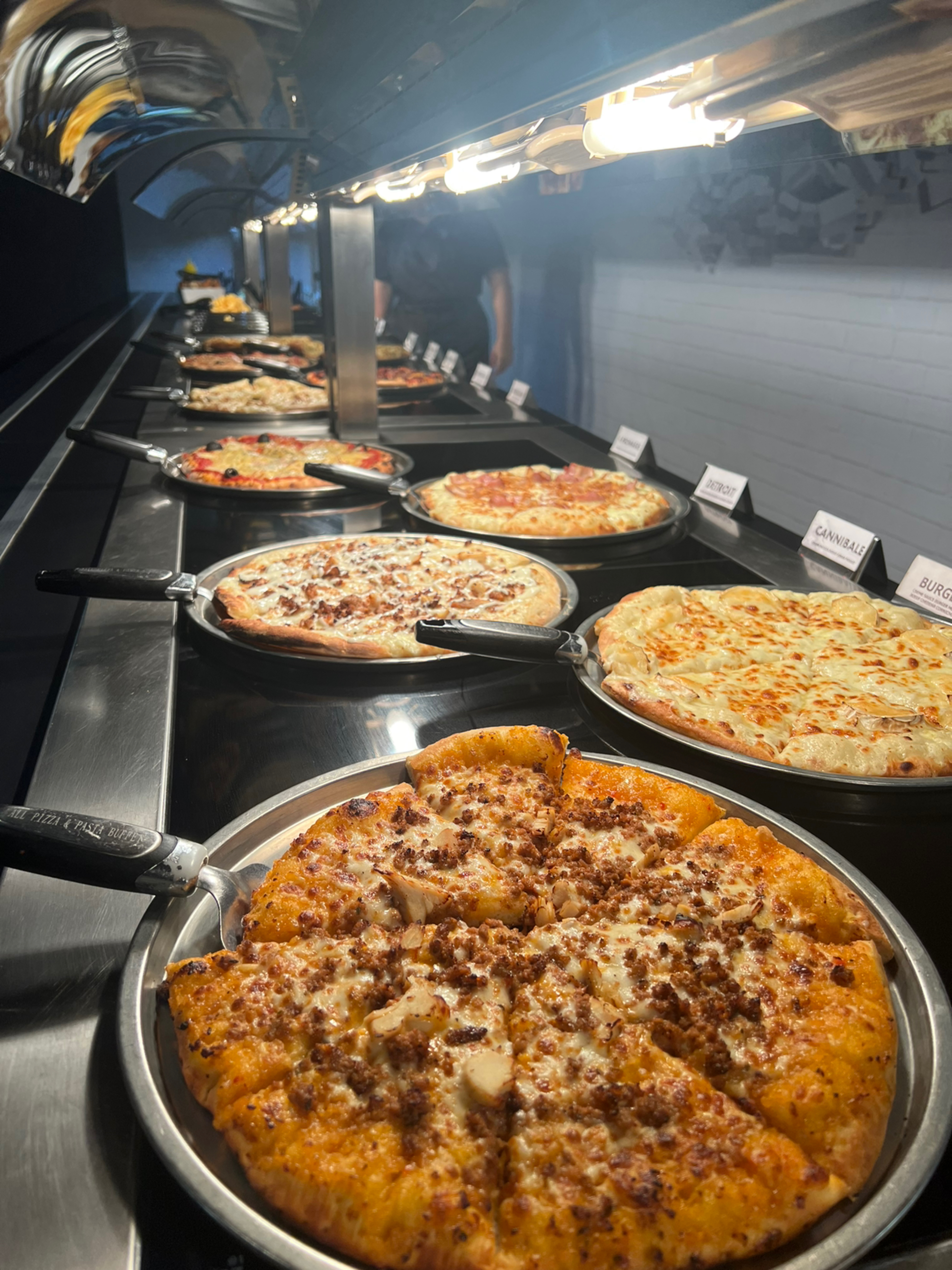 Grand buffet de pizza mais aussi pâtes, poulet et desserts tout est bon et le prix est très bien aussi!