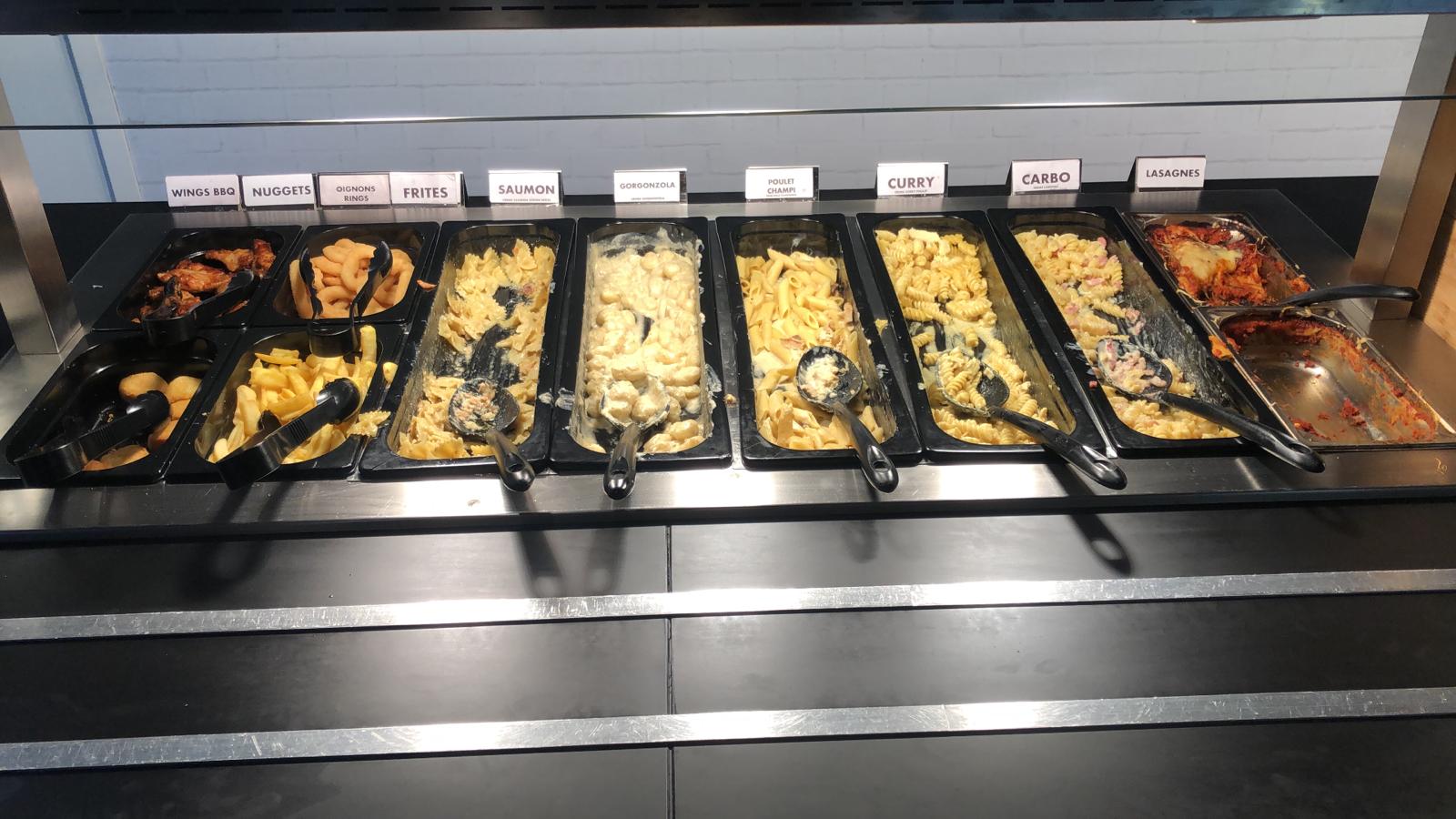 Buffet simple mais efficace quand on a pas beaucoup de temps. Choix variée entre salade, pizza, burger et pâtes mais qualité moyenne
