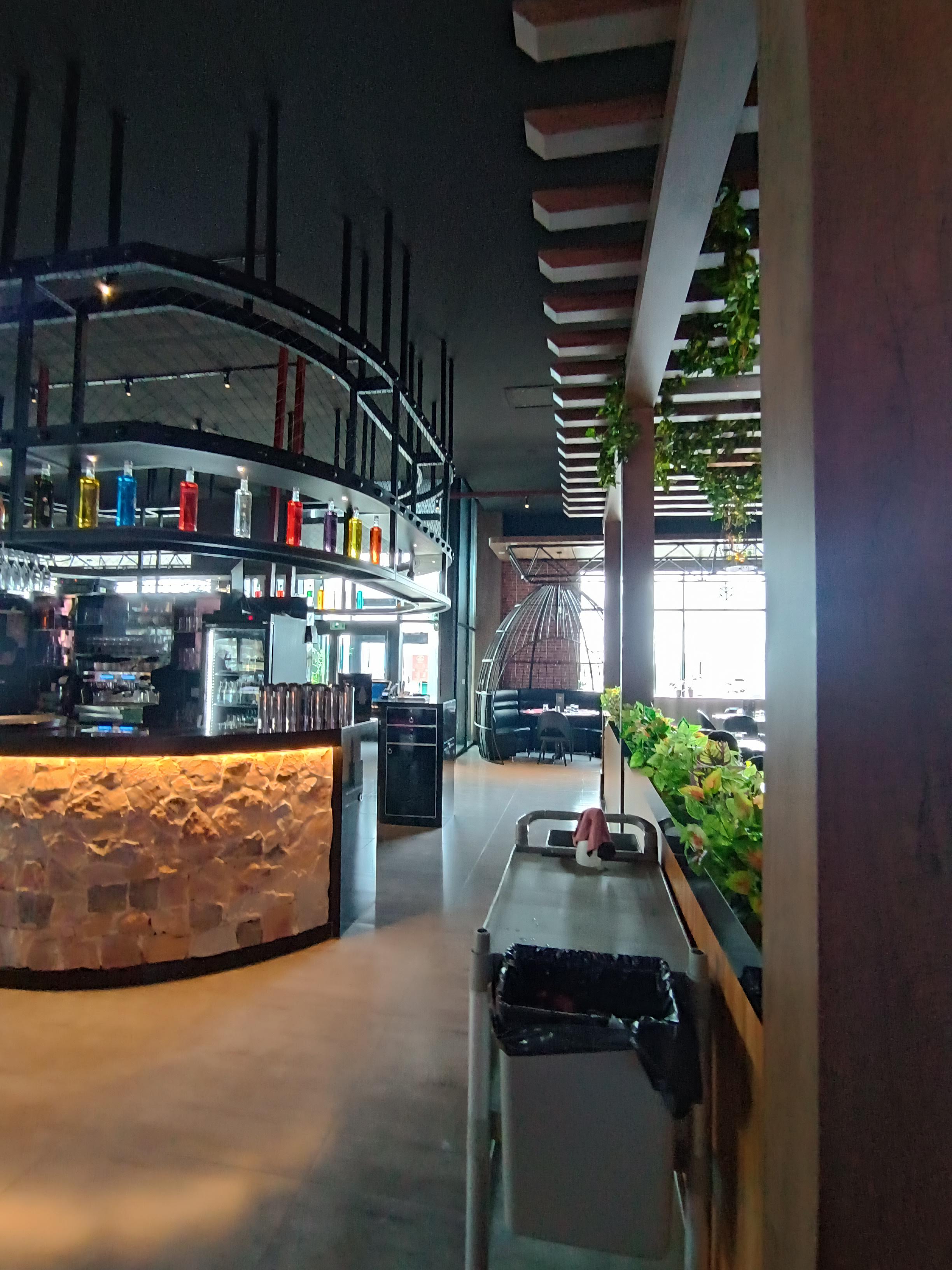 c'est vraiment joli à l'intérieur, dommage que ce soit assez petit pour un restaurant de ce genre et qu'il n'y ai pas beaucoup de choix alimentaire par rapport à ce genre d'offre. Le personnel n'est pas très accueillant, ils ont l'air d'être au bout de leur vie, pas de sourire, limite agacés. J'ai demandé au cuisinier au niveau du gril s'il pouvait me cuire un peu plus des ailes de poulet, il m'a littéralement envoyée paitre. J'ai donc laissé mes ailes pas cuites dans mon assiette, quel gâchis....