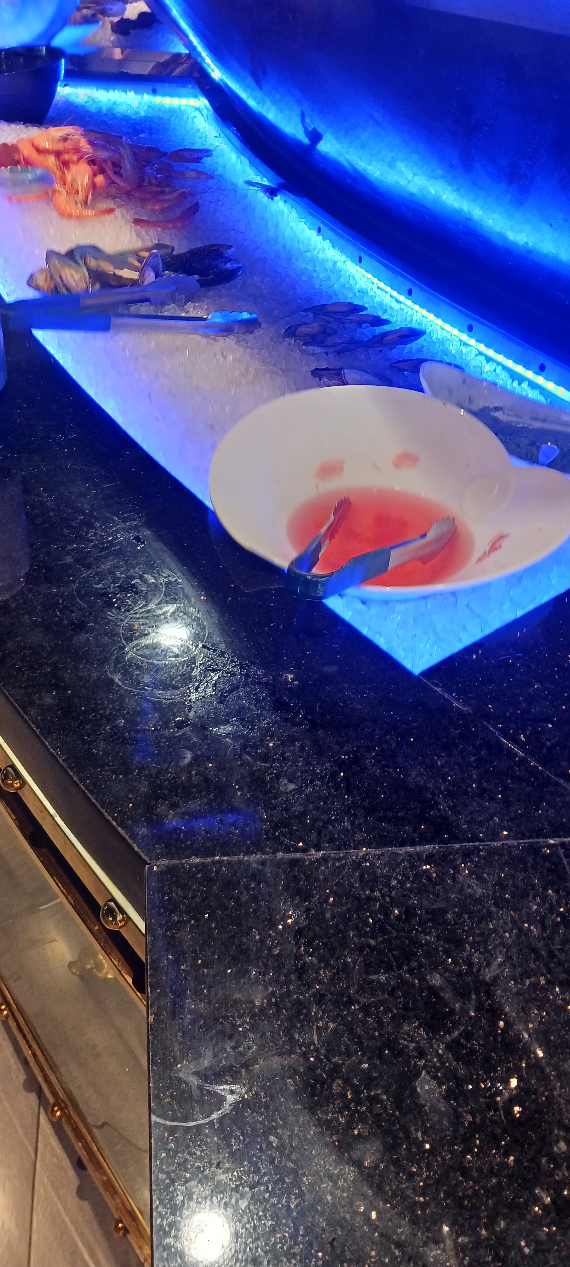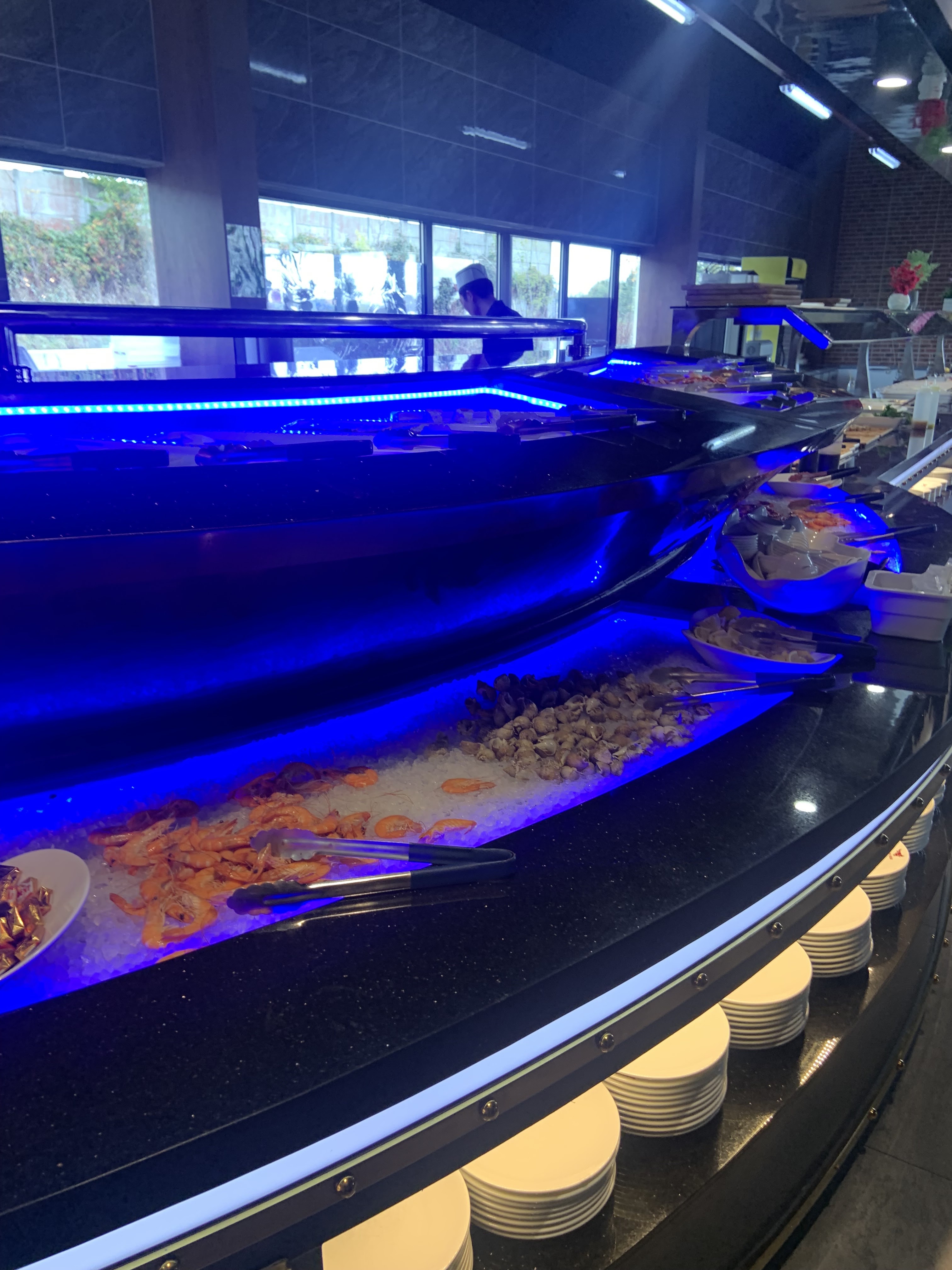 Ma première réaction : surprenant! Nouveau concept que je ne connaissais pas. Le buffet est varié, plutôt complet. La qualité des produits était convenable. La variété des viandes aussi. Pour les amateurs de côté de 🐂. Il y a! Néanmoins ce n'est pas la meilleure. Le cadre est convenable aussi. Bon, pour le prix je ne chipote pas car le rapport qualité prix est au rdv. Mais ça reste du buffet à volonté. En tant que tel, on ne doit pas s'attendre à de la grande gastronomie.