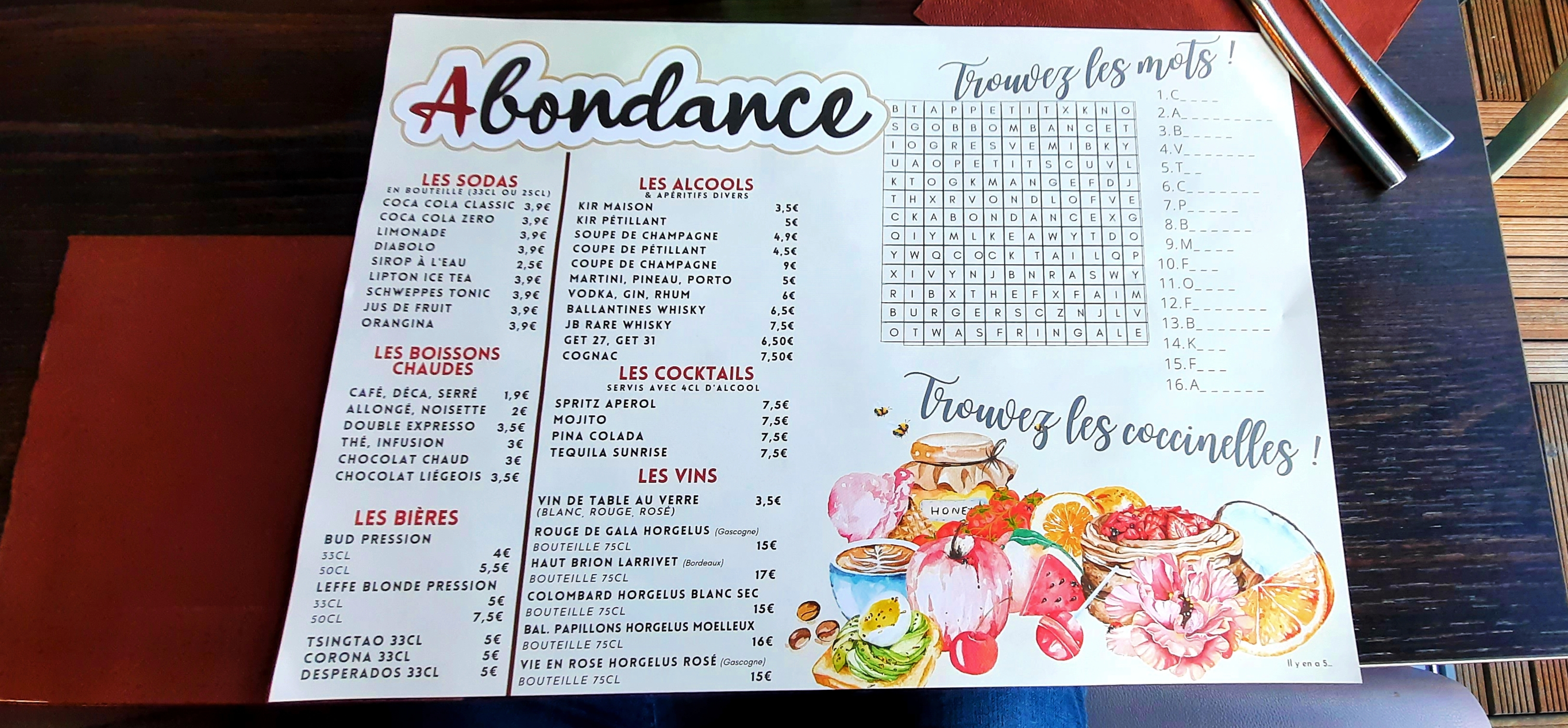 Excellent établissement, la propreté est top par ce temps de pandémie c'est appréciable de trouver du gel hydroalcolique sur sa table ,l'accueil est parfait et le service est top L'abondance porte bien son nom rien à dire sur la quantité et sur la qualité bravo nous reviendrons