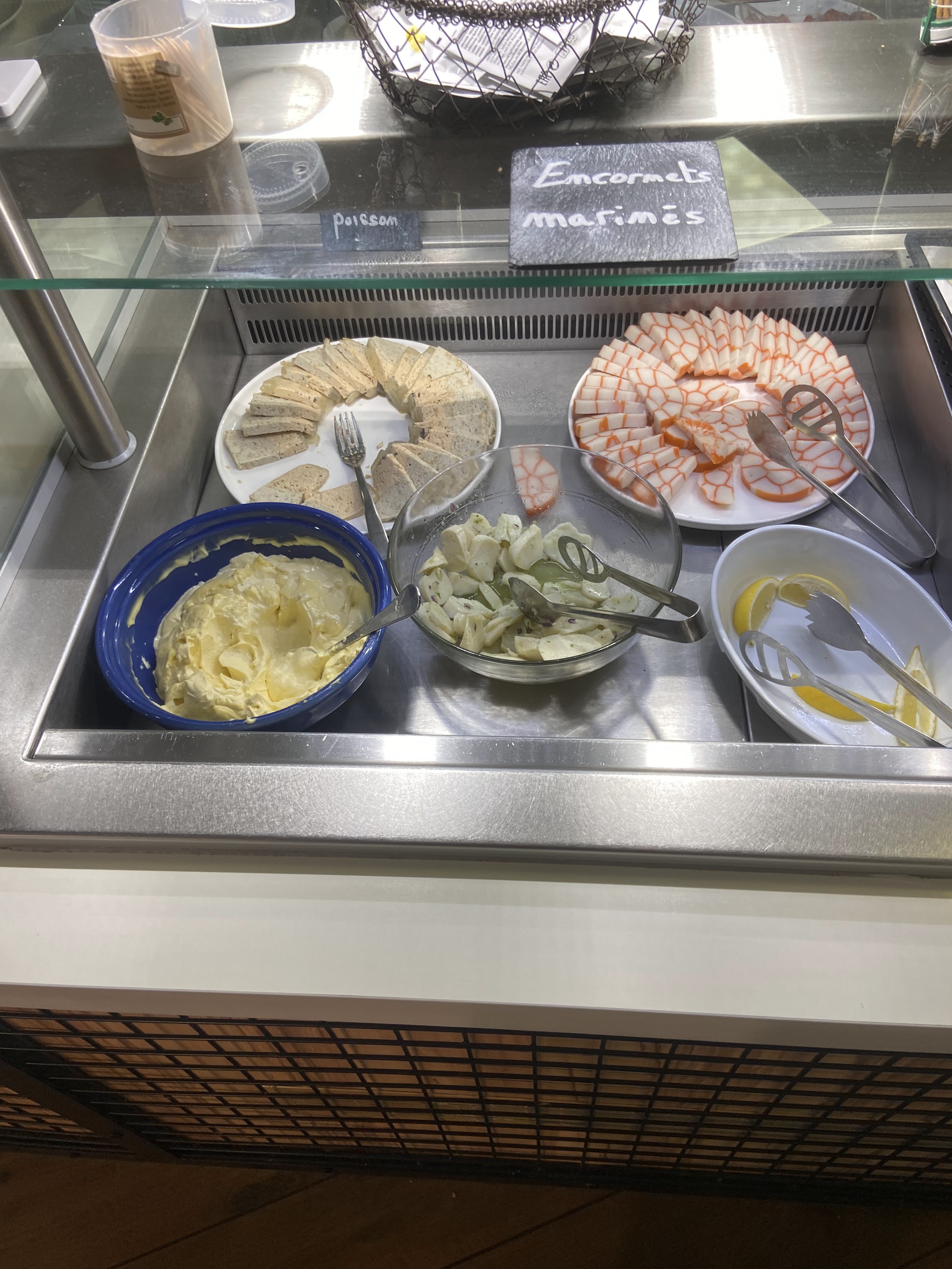 Cause covid pas de clim. Normal. Mais entree chaude ( charcuterie.Crudités .beurre fondue et pas emballer. Même pas une plaque de glace dessous. Pas pris non plus de crustacés. En espérant que ils reserve ne pas kes reste le soir