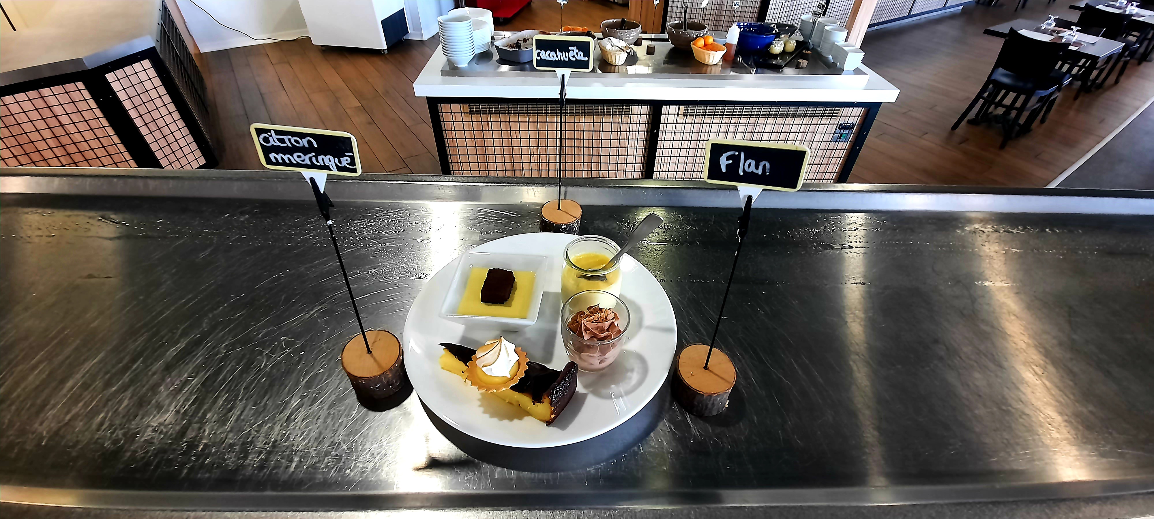 Bonjour je déjeune avec mes 2 garçons régulièrement et c'est toujours Excellent !!! Prix très raisonnable.. buffet à volonté, tres varié, beaucoup de diversité ,le bœuf bourguignon est au top et le lapin moutarde aussi ,les ilots des entrées sont hyper variés ,et l'ilot plat chaud est au top ,il y a egalement des spécialités asiatique ,de la pizza , des mini burger ,et un super grill ou les entrecôtes sont saisies devant vous ,il y aussi un choix de viandes andouillettes ! Le chef et son équipe sont constamment a l'ecoute ,les plats sont beaux et bons et les ilots toujours garnis au maximum , c'est très dynamique tous le personnel est agréable et souriant... Nourriture fraîche et de bonne qualité et cuisiné sur place !!! il y a aussi l'ilot des desserts et il y a un large choix de gâteaux , de spécialités , de mousses , des fruits frais tout est bon et le rapport qualité prix et quantité est imbattable ! bref satisfait a chaque fois que y allons ( 2 fois par mois) Merci à toute l’équipe toujours aussi souriant et aimable...