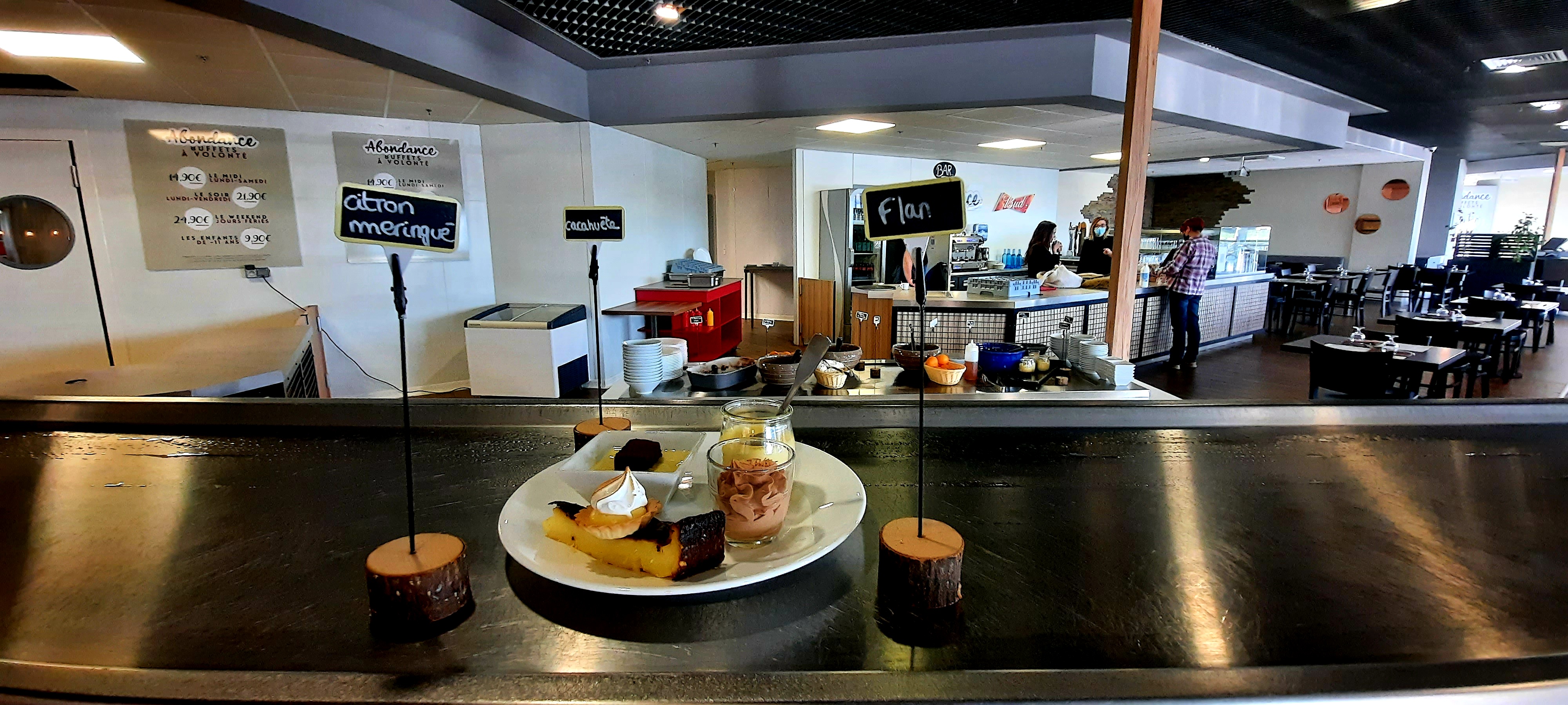 La cafétéria Abondance se situe dans le centre commerciale Leclerc, au premier étage. L'accueil est chaleureux et aimable. Les buffets, entrées, plats et desserts sont variés et jolies. Les plats sont régulièrement alimenté. Il y a de nombreuses tables disponibles. Et le parking est partagé avec le centre commercial.