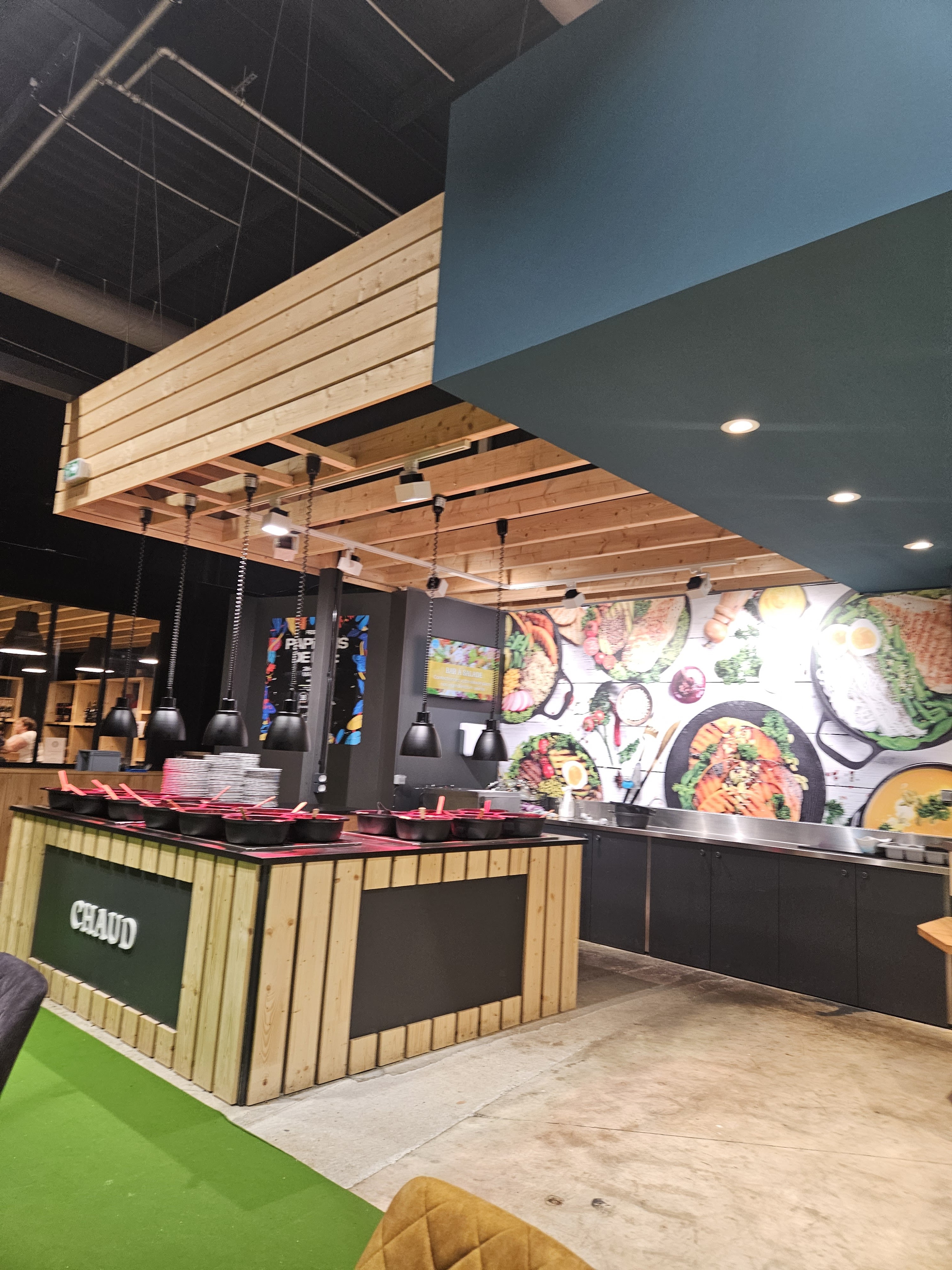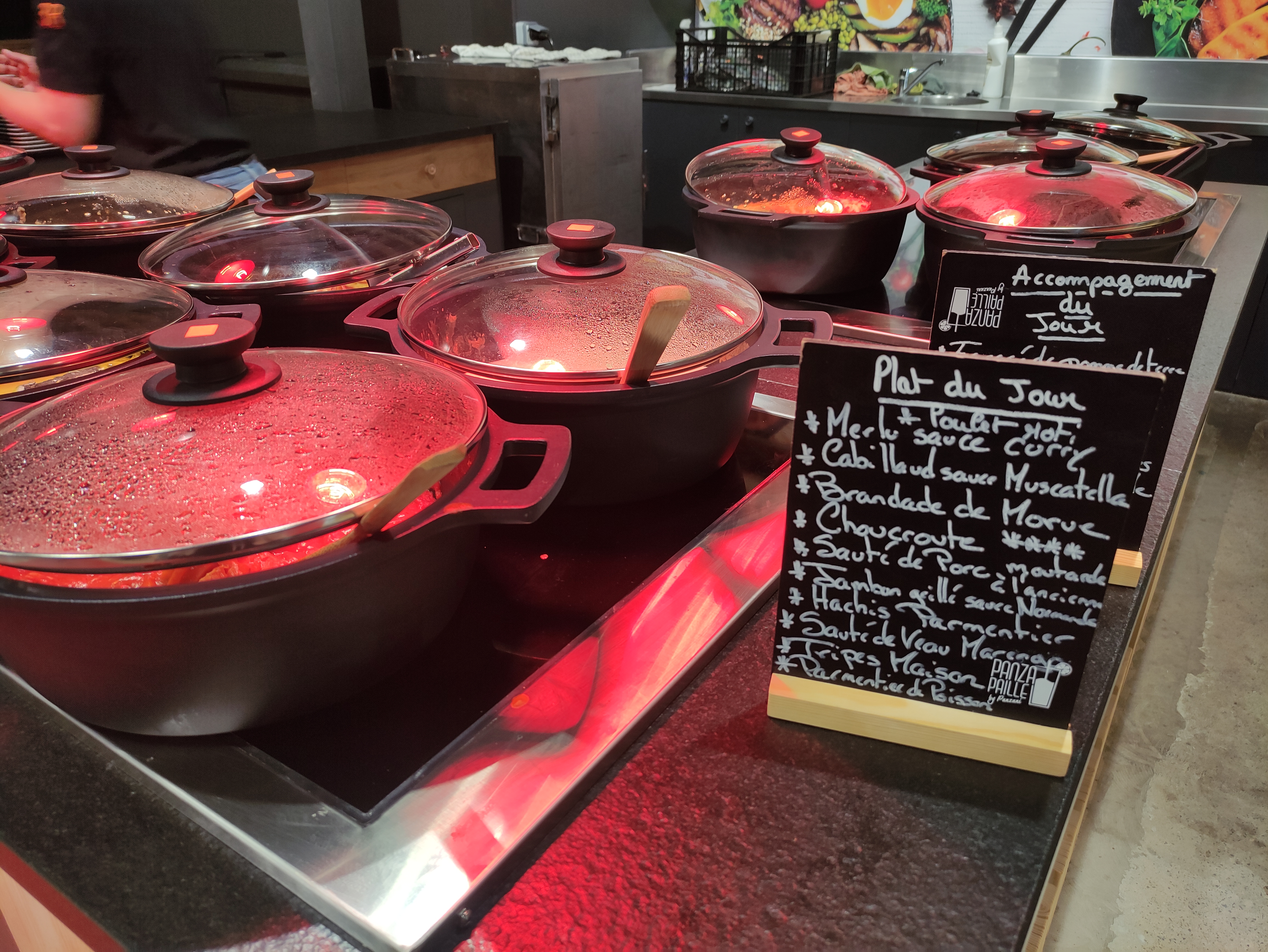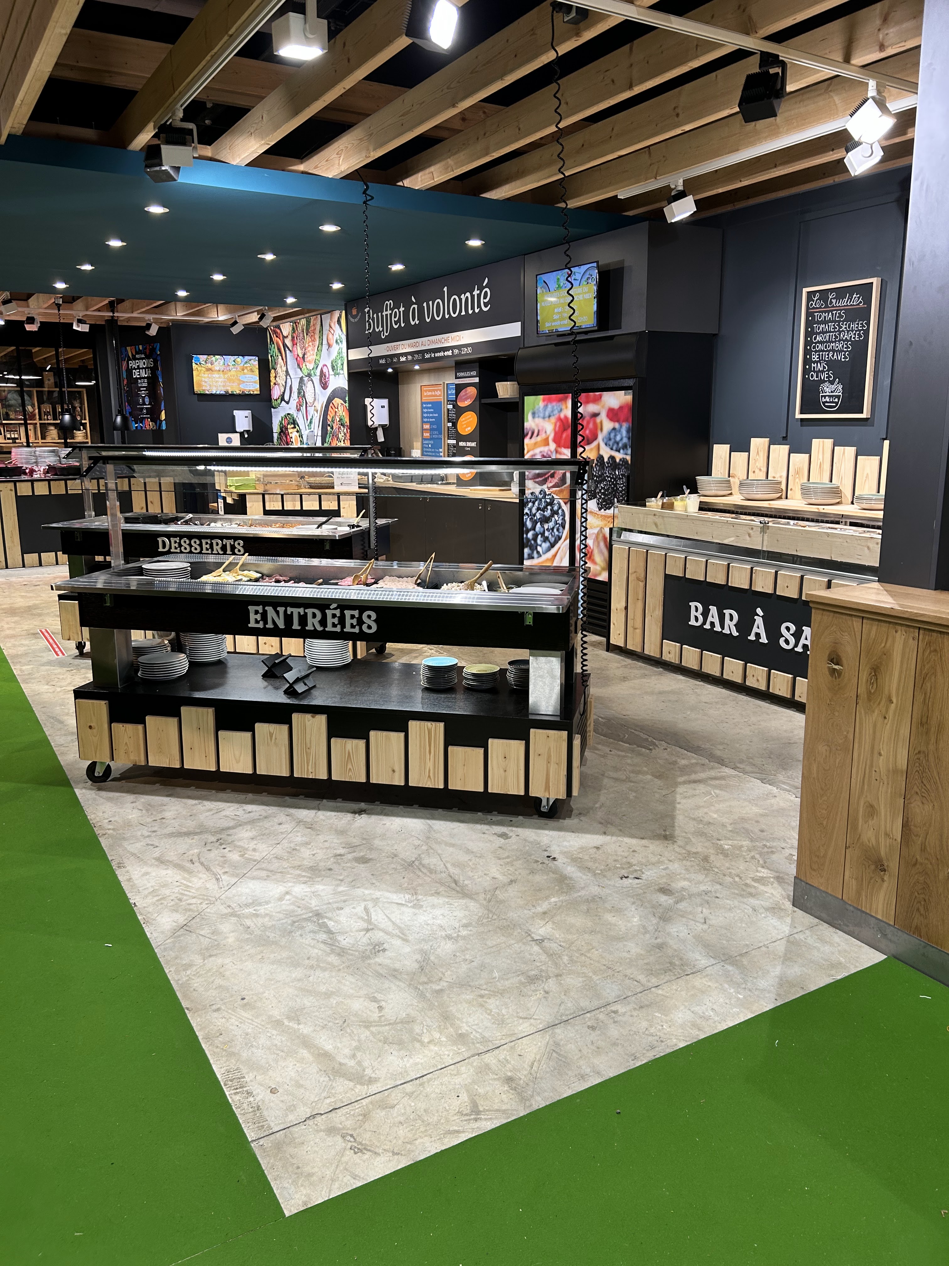 Le bar à salade est le seul endroit de bien. On ne peut tricher avec les légumes crus. Les plats baignent dans la sauce. Viande trop cuite à force de rester sur les plaques. On ressent le surgelés parfois encore glacé à l'intérieur ou baignant dans l'eau. 1 euros pour des frites en complement, sauf que...les frites baignent dans l huile..une huile qui se changent messieurs dames...inmangeable, à vomir. Les desserts...des goûts étrange.. vomit en rentrant je ne conseil pas cet endroit