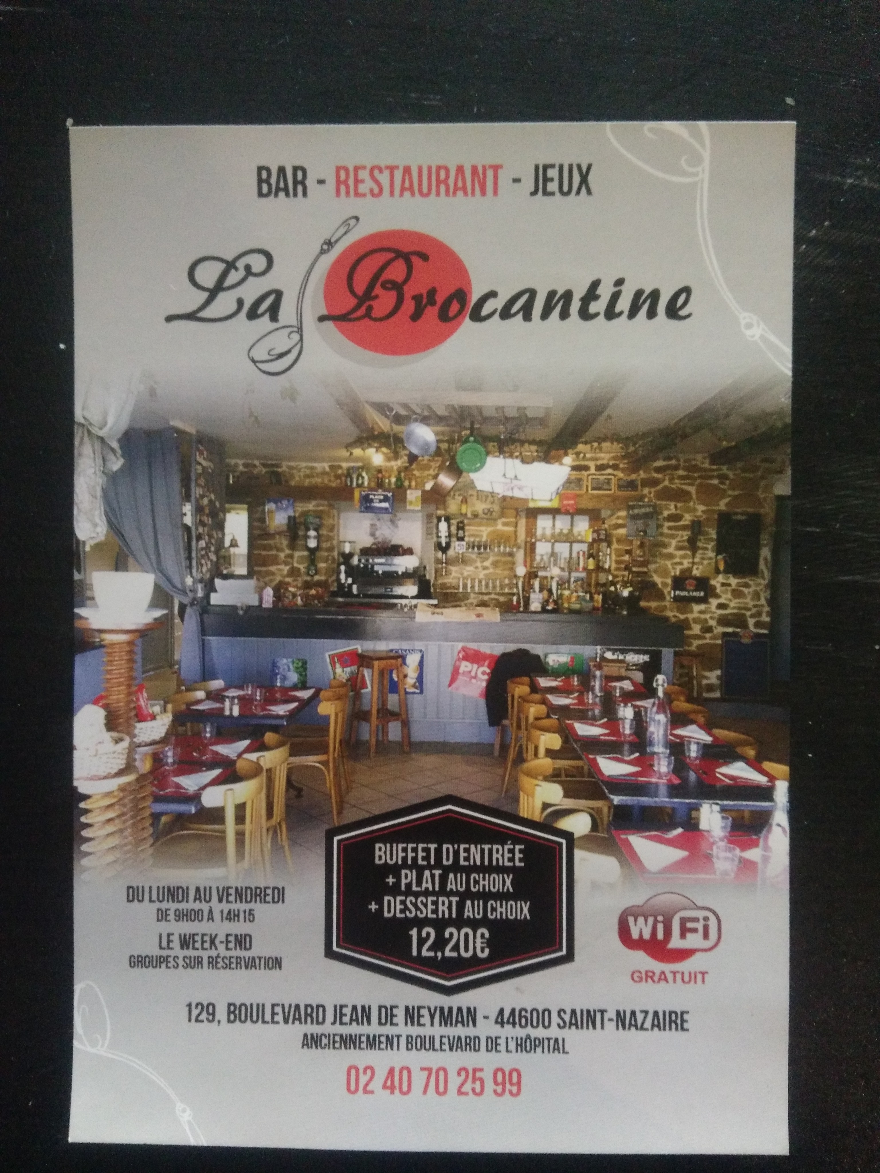 Monsieur, pardonnez moi de vous répondre si tardivement. Je suis navrée de vous avoir décu. Effectivement, La Brocantine à respectée ce jour là, les contraintes et horaires des organisateurs. Nous avions préparé en collaboration avec les organisateurs de votre concours deux services de 50 personnes pour vous satisfaire au mieux. l'un à 11h30 et l'autre à 12H30, malheureusement les premiers joueurs sont arrivés à 12h45... ce qui à défavorablement désorganisé le service .... Cependant, il ne me semble pas particulièrement aberrant de payer le vin et le café dans un restaurant... N'hesitez pas à me contacter au 06 88 32 49 44 pour un échange plus complet.