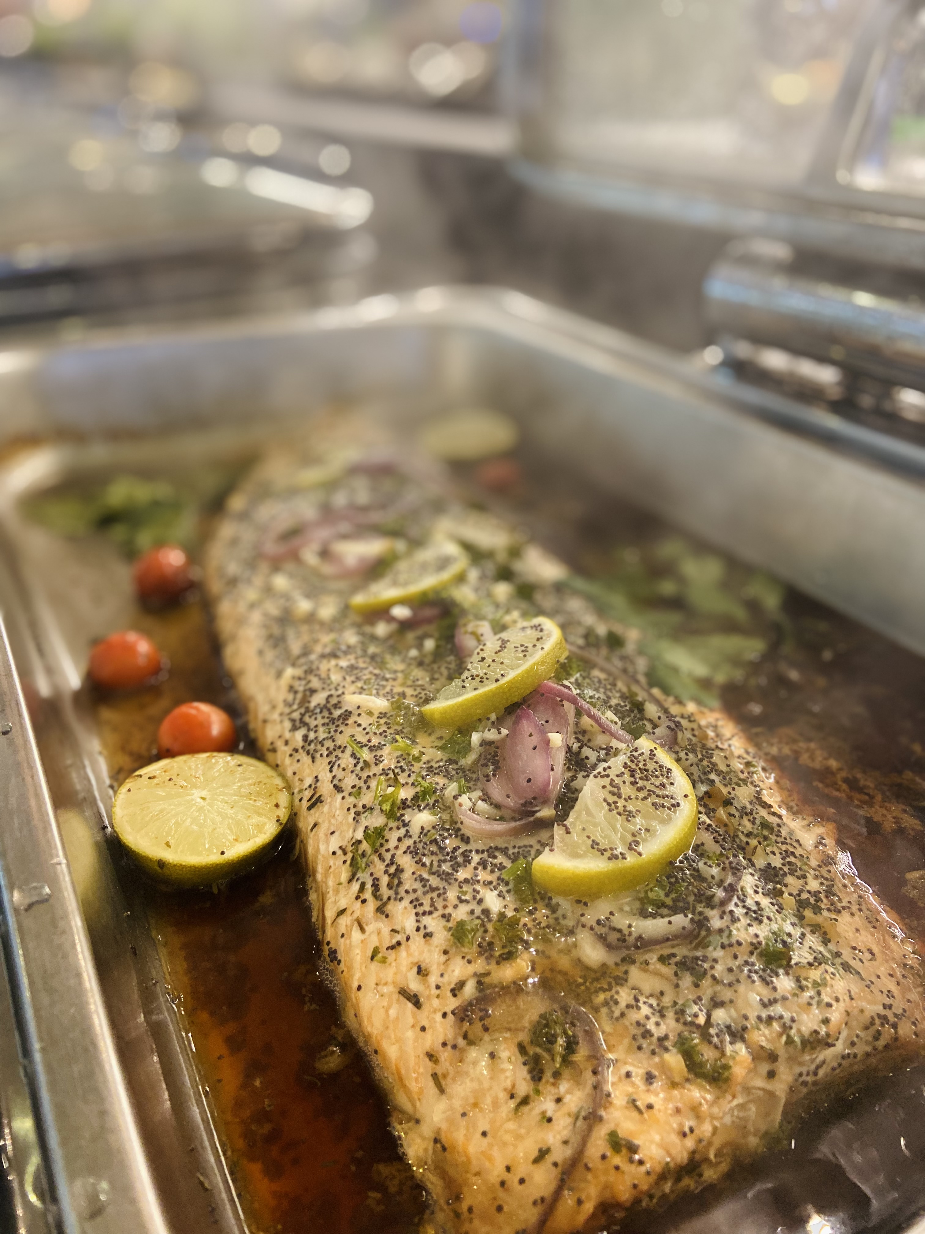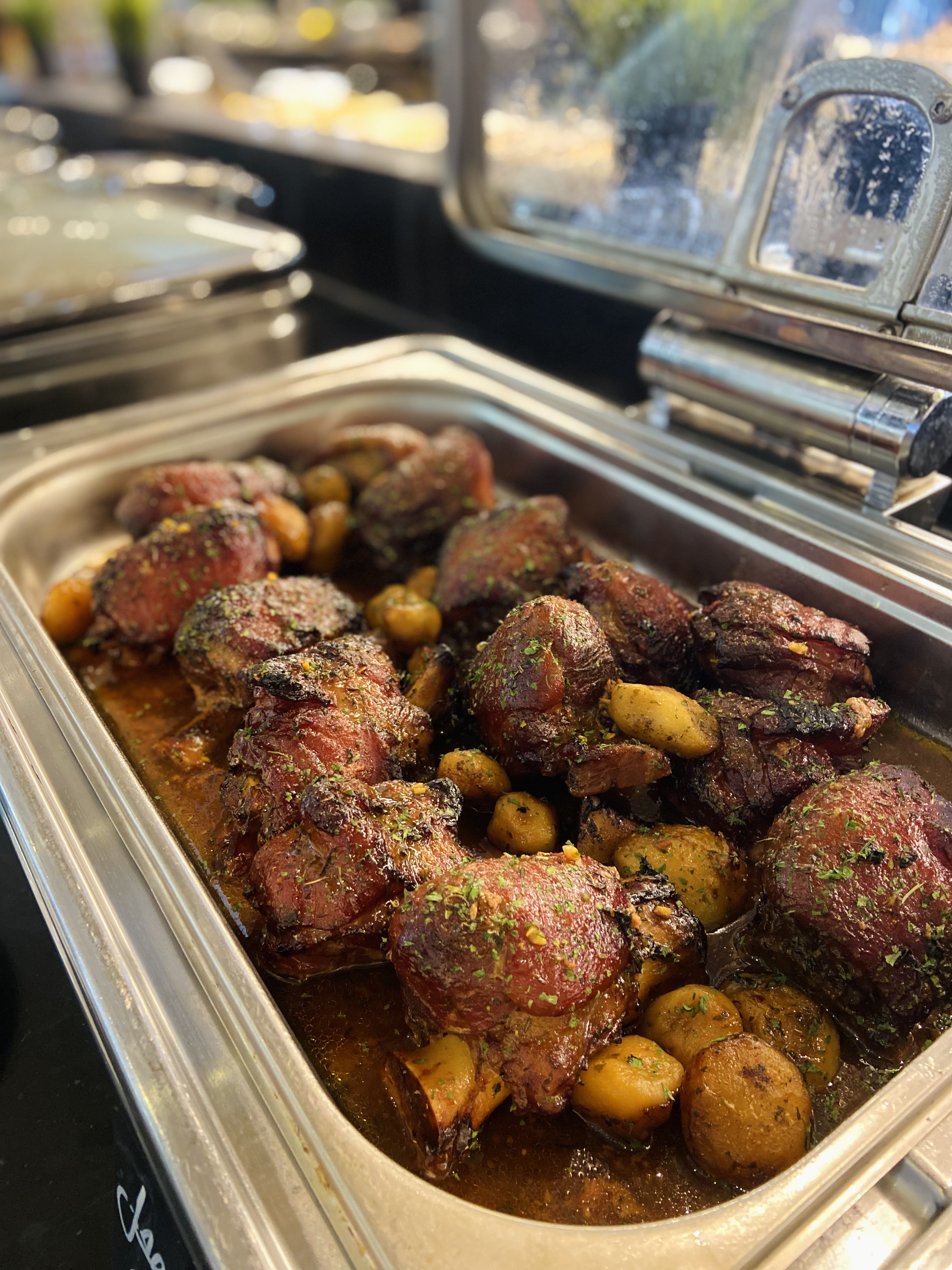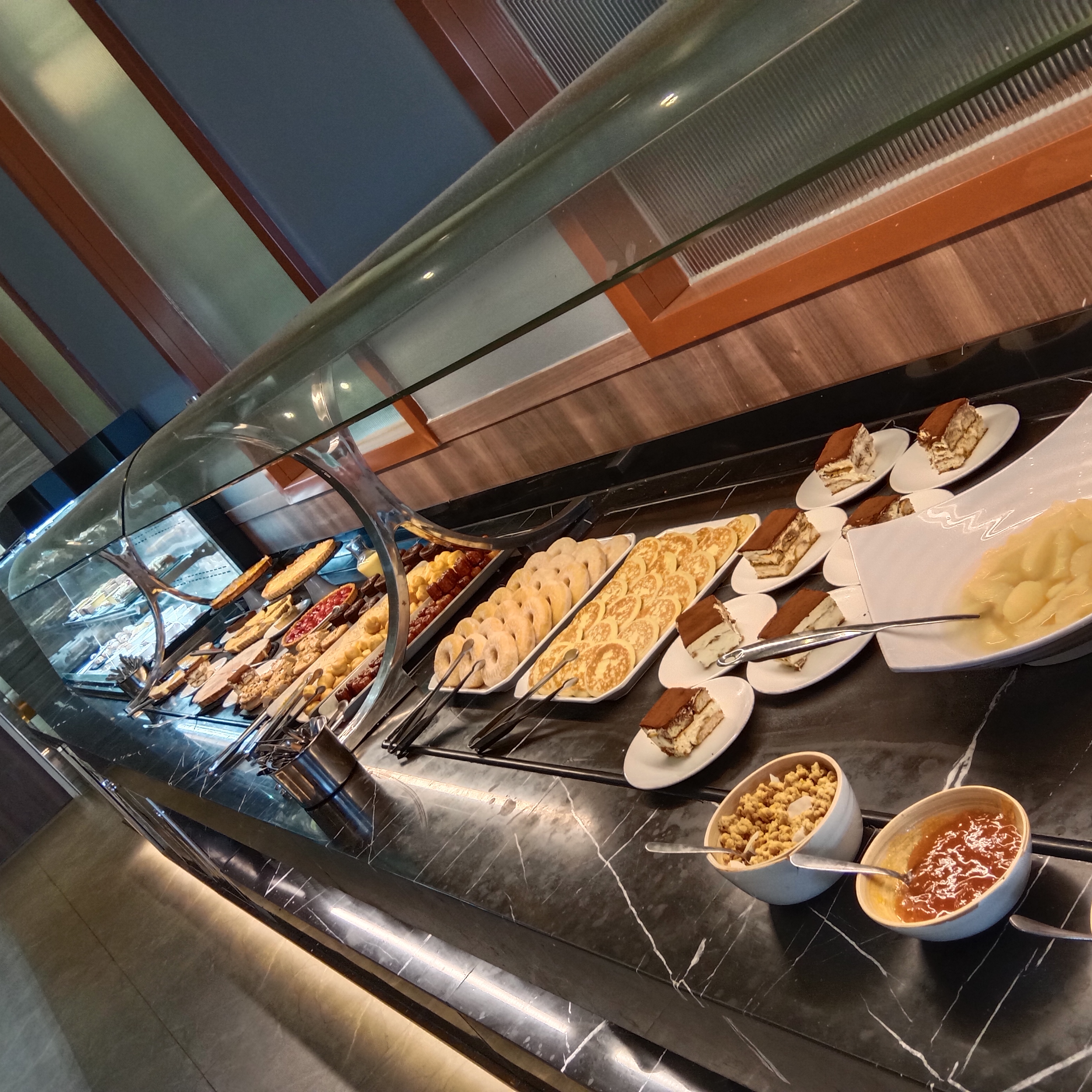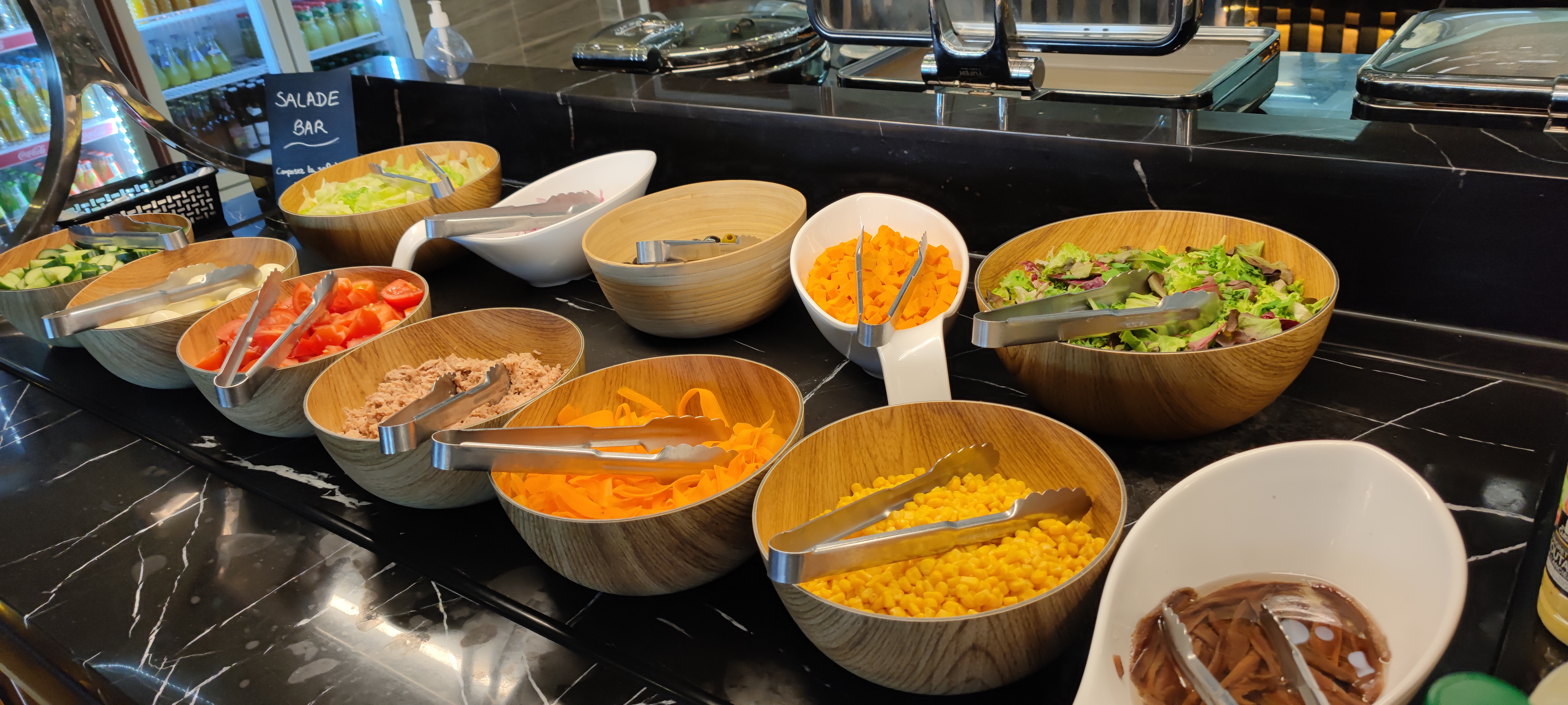 Un buffet avec un choix varié sur les plats et mention spéciale pour les desserts, je ne peux cependant pas cacher ma déception quant à certains plats présents sur les photos mais dont l’absence se fait cruellement ressentir une fois sur place … Saumon rôti, frais ou fumé, raclette, tartiflette, tous ces plats sont ils réservés aux soirs et week-end lorsque la formule coûte plus cher, ou suis je simplement mal tombé ? Malgré ma déception je recommande si vous avez envie d’un buffet.