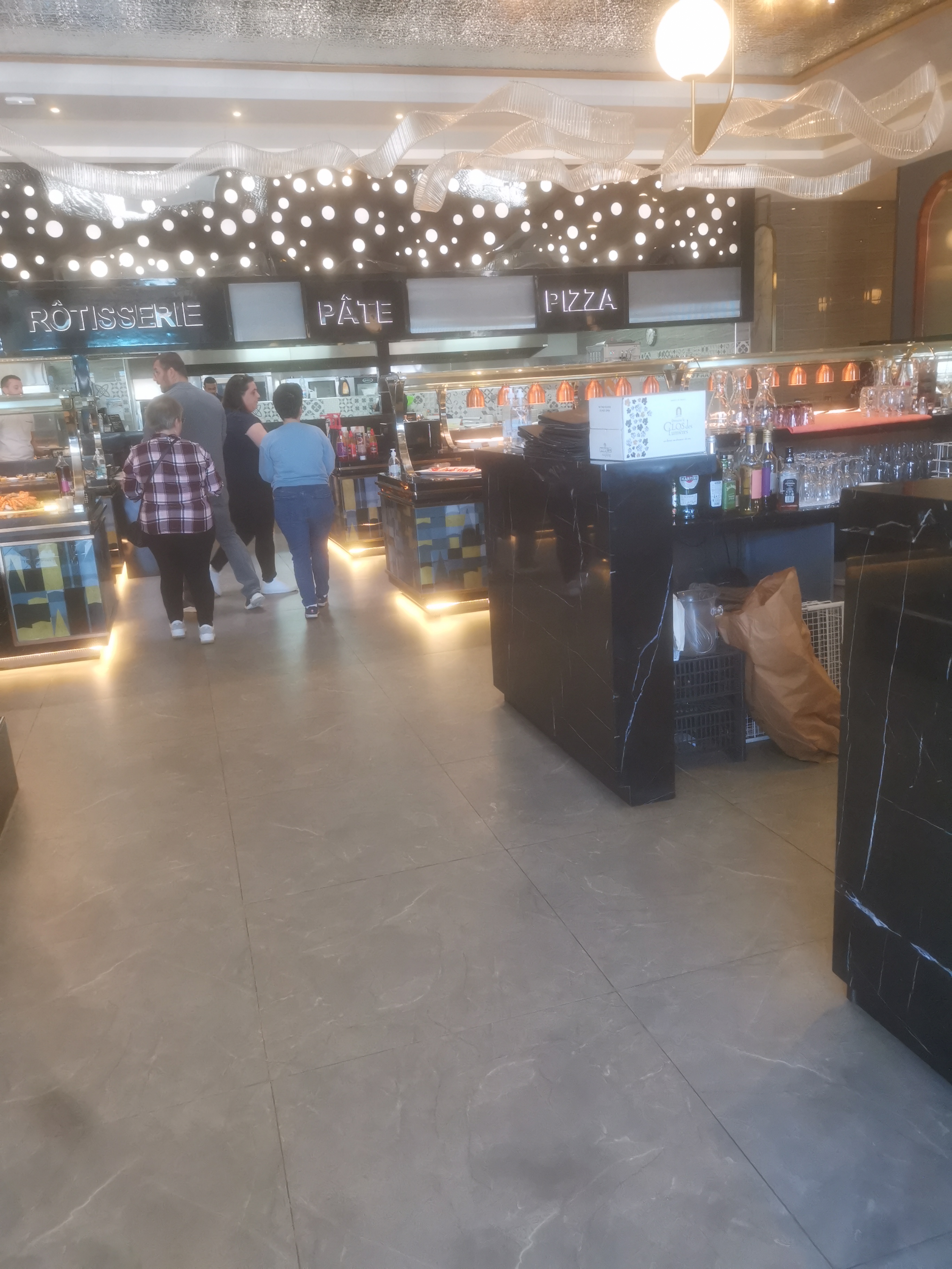 Honnêtement, je partais sans a priori vu les notes Google... Alors oui la salle est jolie mais à part ça pas grand chose à sauver... En entrée, on nous propose des pâtés de mauvaise qualité très salés, le seul plat de poisson était vide, les haricots verts n'avaient aucun goût, les pommes de terre sautées étaient sèches et farineuses, les parts de pizzas se coupaient difficilement donc manque de fraîcheur, les beignets suintaient de gras bref pas grand chose à sauver...