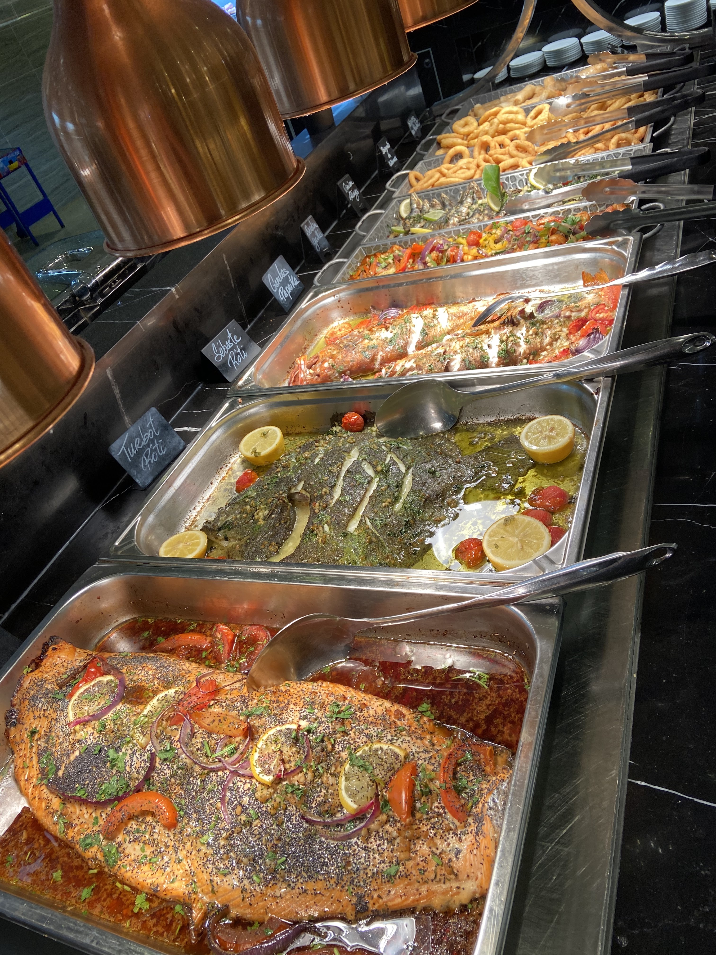 Mardi midi le restaurant n'est pas plein et c'est agréable puisque nous nous marchons pas dessus pour nous servir. Des plats sont faits maisons.. on peut y retrouver ratatouilles, légumes, couscous maison.. un large choix d'entrées, plats, fruits et desserts. Il y a l'originalité du steak de requin. Il y a également un bar à pizzas et les pizzas ont une pâte très fine dignes d'une réelle pizza c'est un point très très positif. Dans l'ensemble ça sort un peu du lot des restaurants à volonté. Avec des produits très frais. Je recommande !