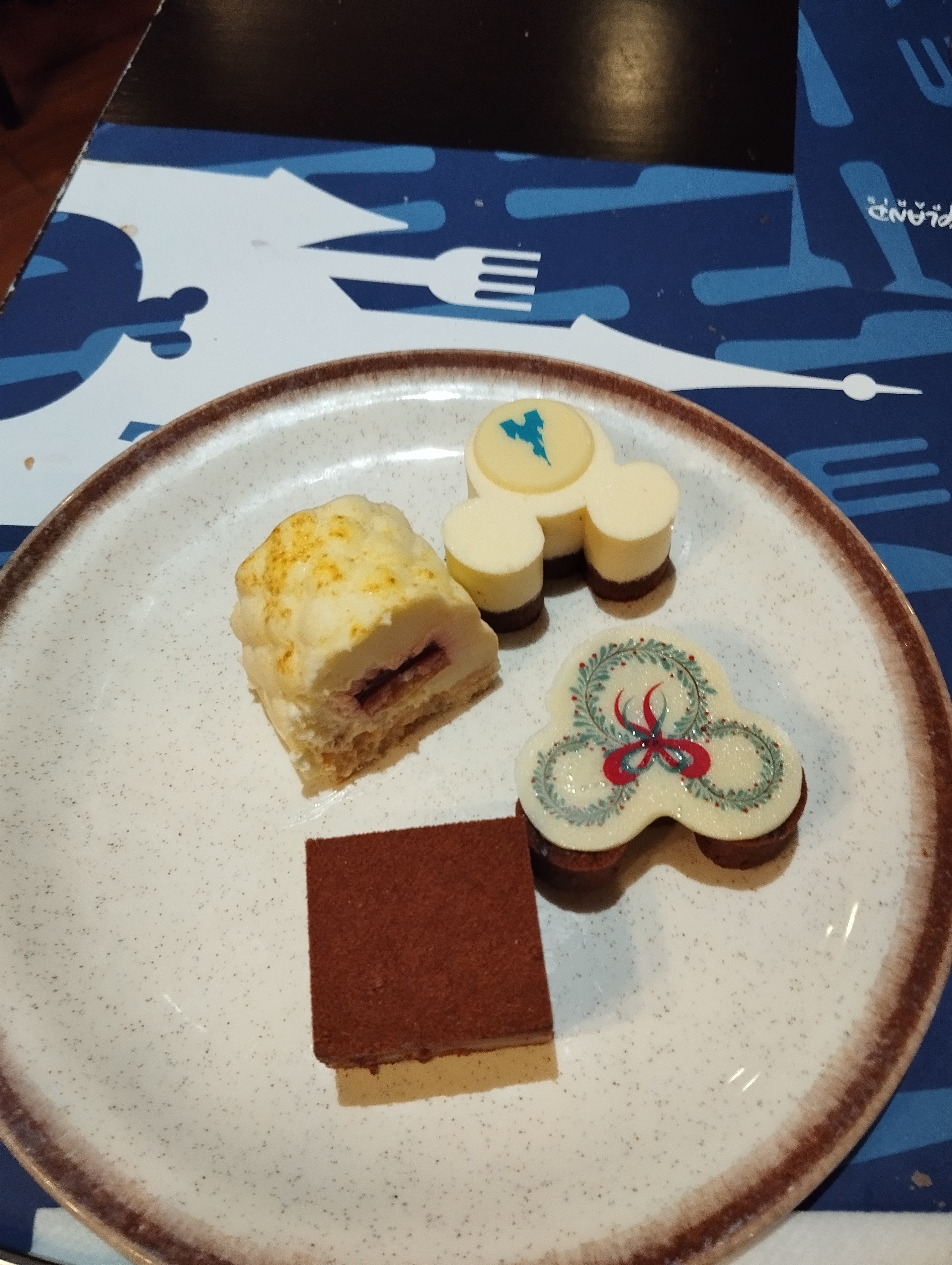 Très bonne expérience pour nous le soir du 25 décembre. Accueil chaleureux, super service. Lieu très agréable. J'ai goûté plusieurs entrées, bien préparées avec du goût. Pour le plat j'ai goûté le coquelet mariné au pain d'épices avec des pommes de terre et riz façon cantonnais et sauce forestière. Un régal. Pour le fromage le chèvre était d'excellente qualité. Au dessert j'ai goûté quasiment tous les desserts avec mon mari. Certains avec plus de goût que d'autres mais dans l'ensemble c'était très correct. J'ai adoré la bûche à la carotte. Un délice ! De part les quantités servies on imagine que tout ne peut pas être fait maison. Les prix chez Disney sont élevés c'est le jeu. Mais nous apprécions énormément la gentillesse du personnel qui fait tout son possible pour nous satisfaire. Merci à eux.🙏