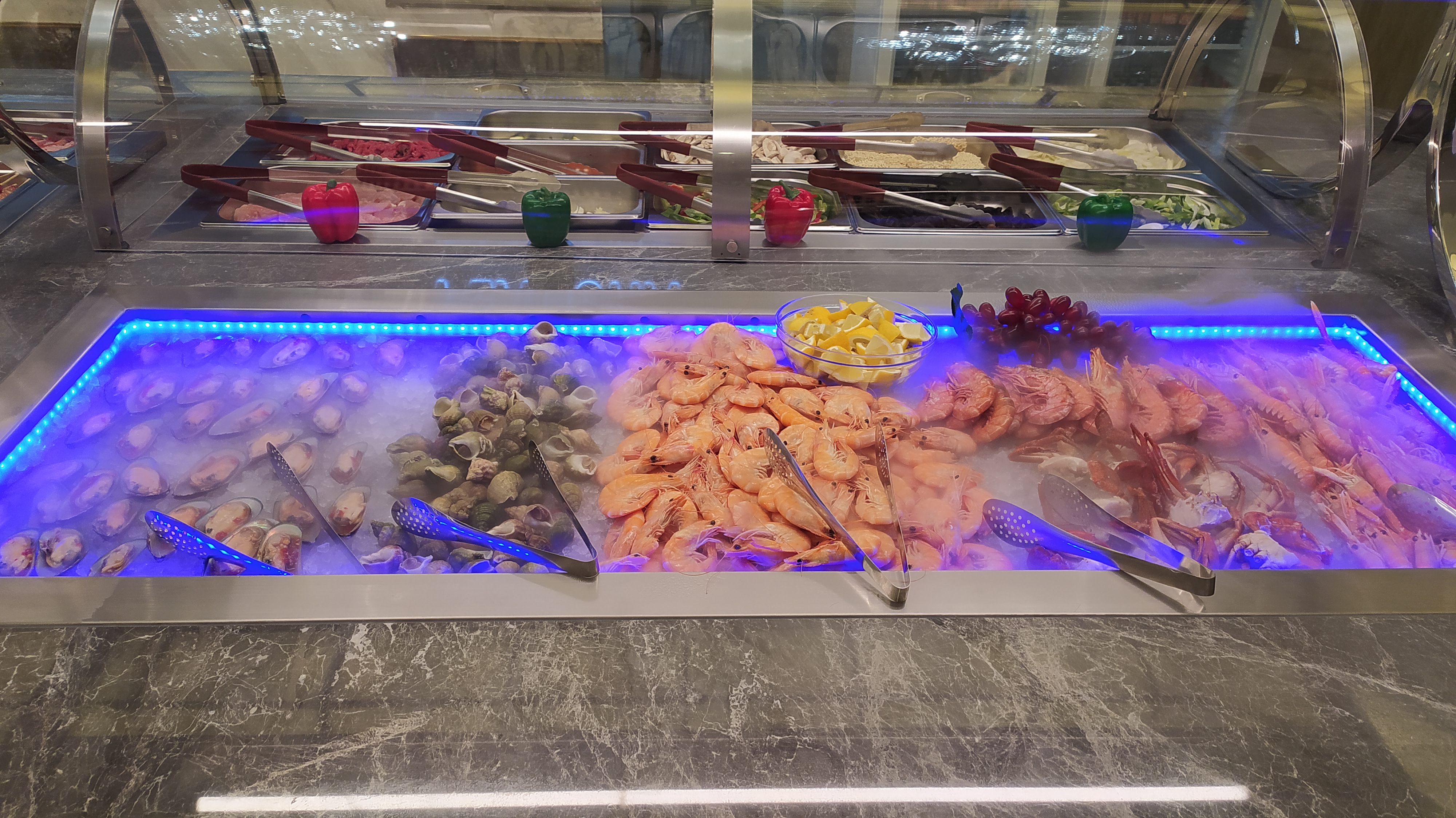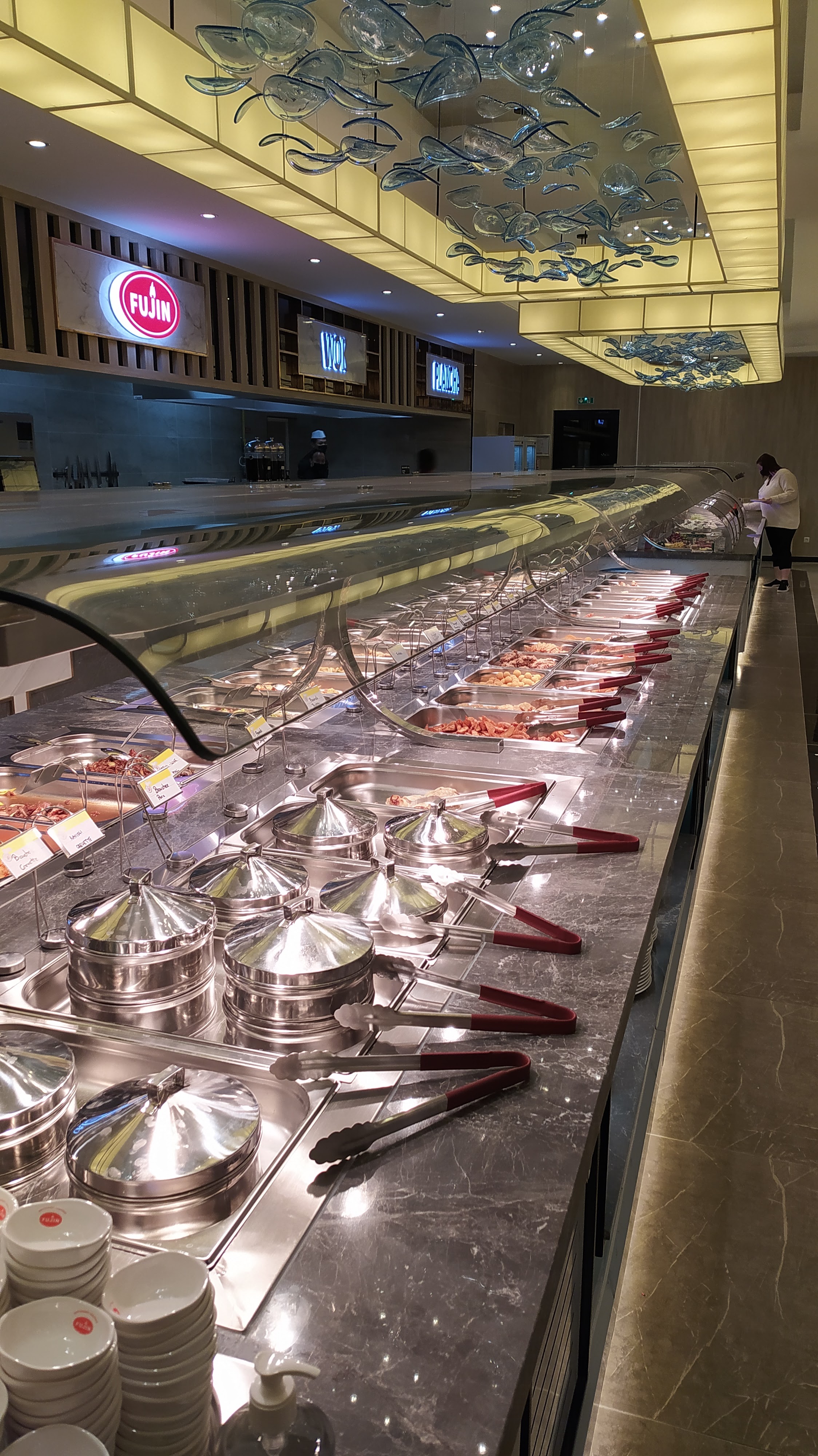 Beau restaurant tout neuf, buffet avec un très grand choix asiatique et européen, mais déçue par les fruits de mer, gambas gluante et translucide, crevettes sans goût. Prix correct. A retester, peut-être je suis mal tombée.