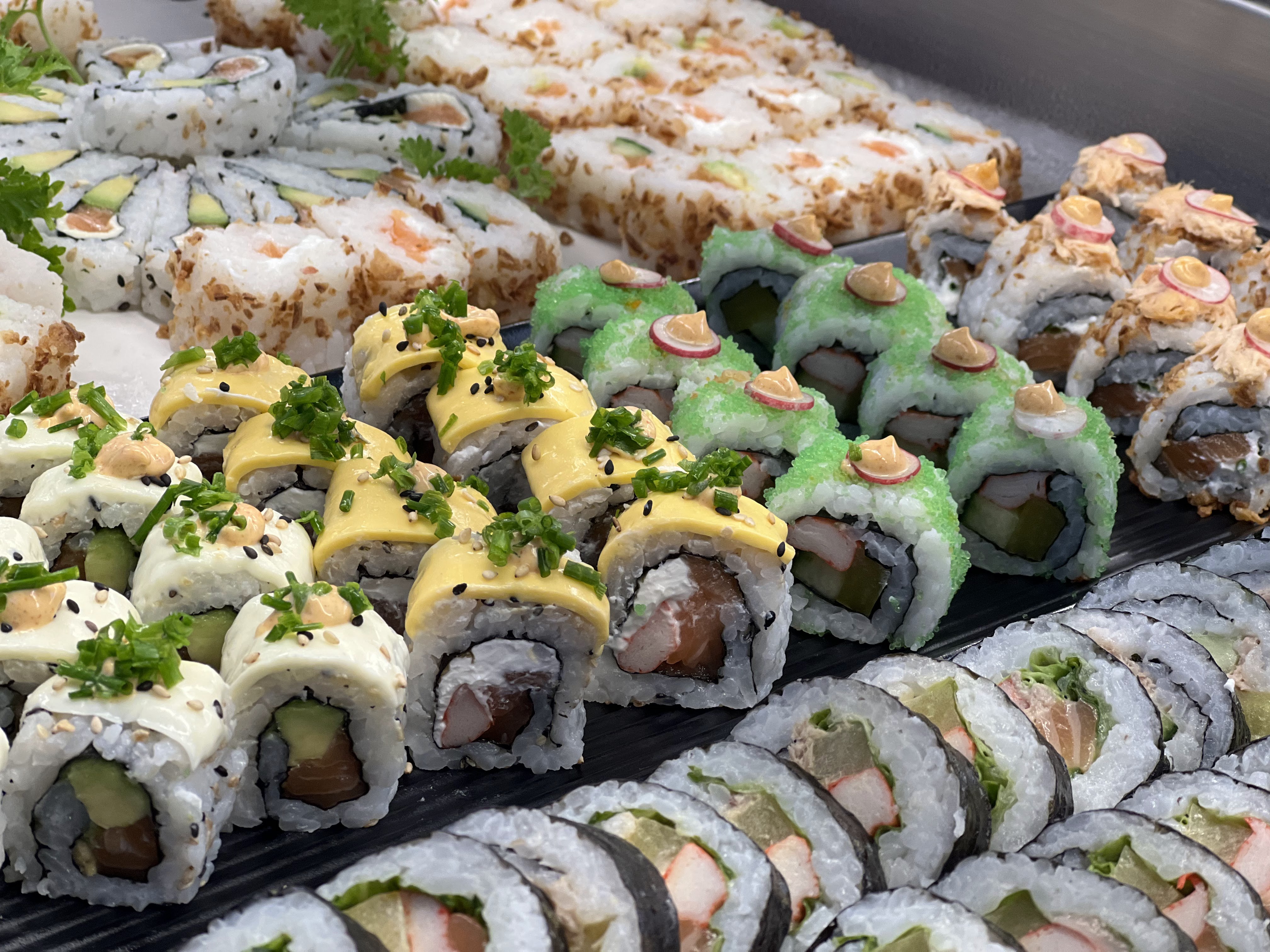 Les plats cuisinés du midi ne semblaient pas bien frais au début de service. Les sushis et maquis sont simple mais étaient de qualité....dont 1 au canard à goûter absolument. Les aliments pour le wok et les grillades présentaient bien. Service sympa