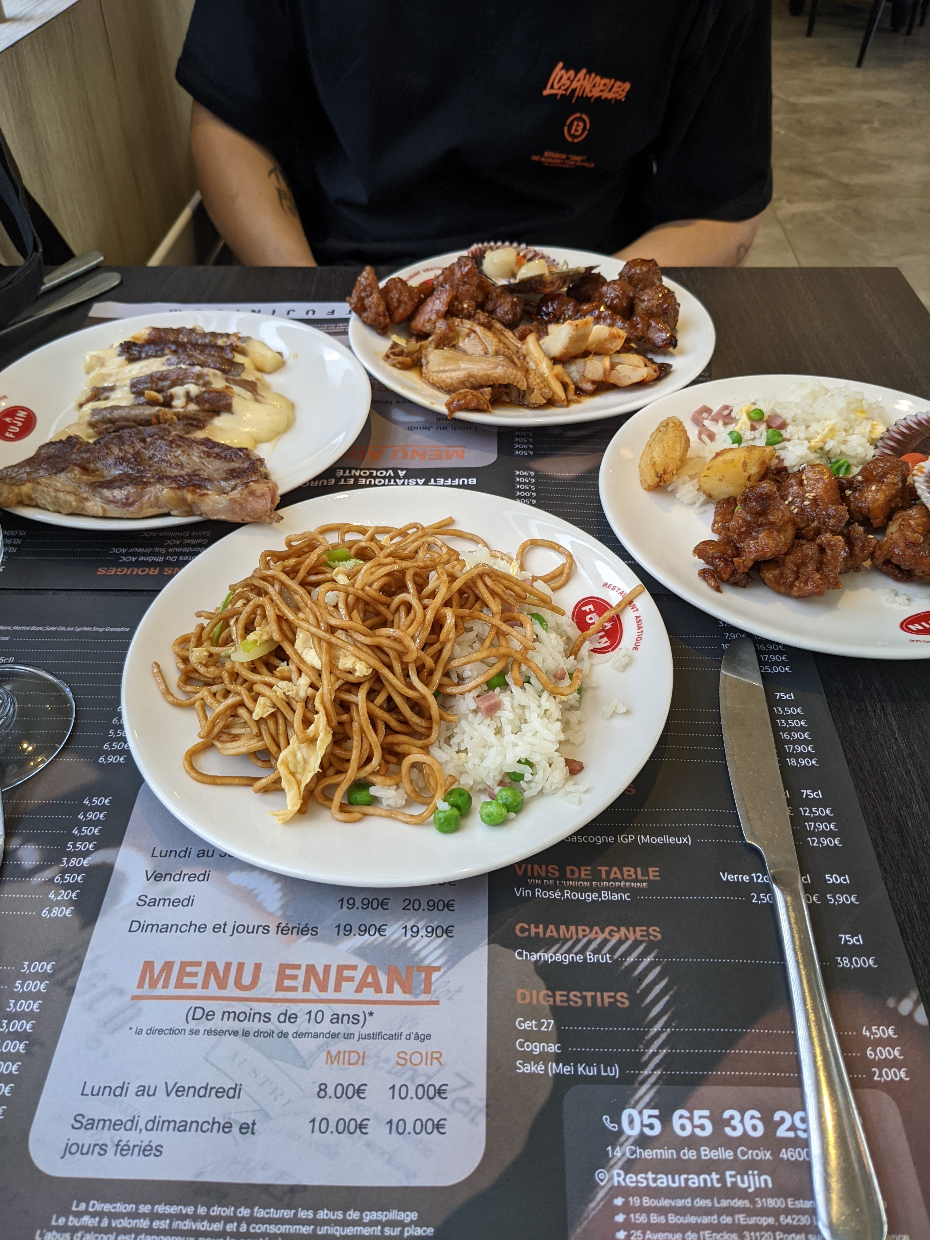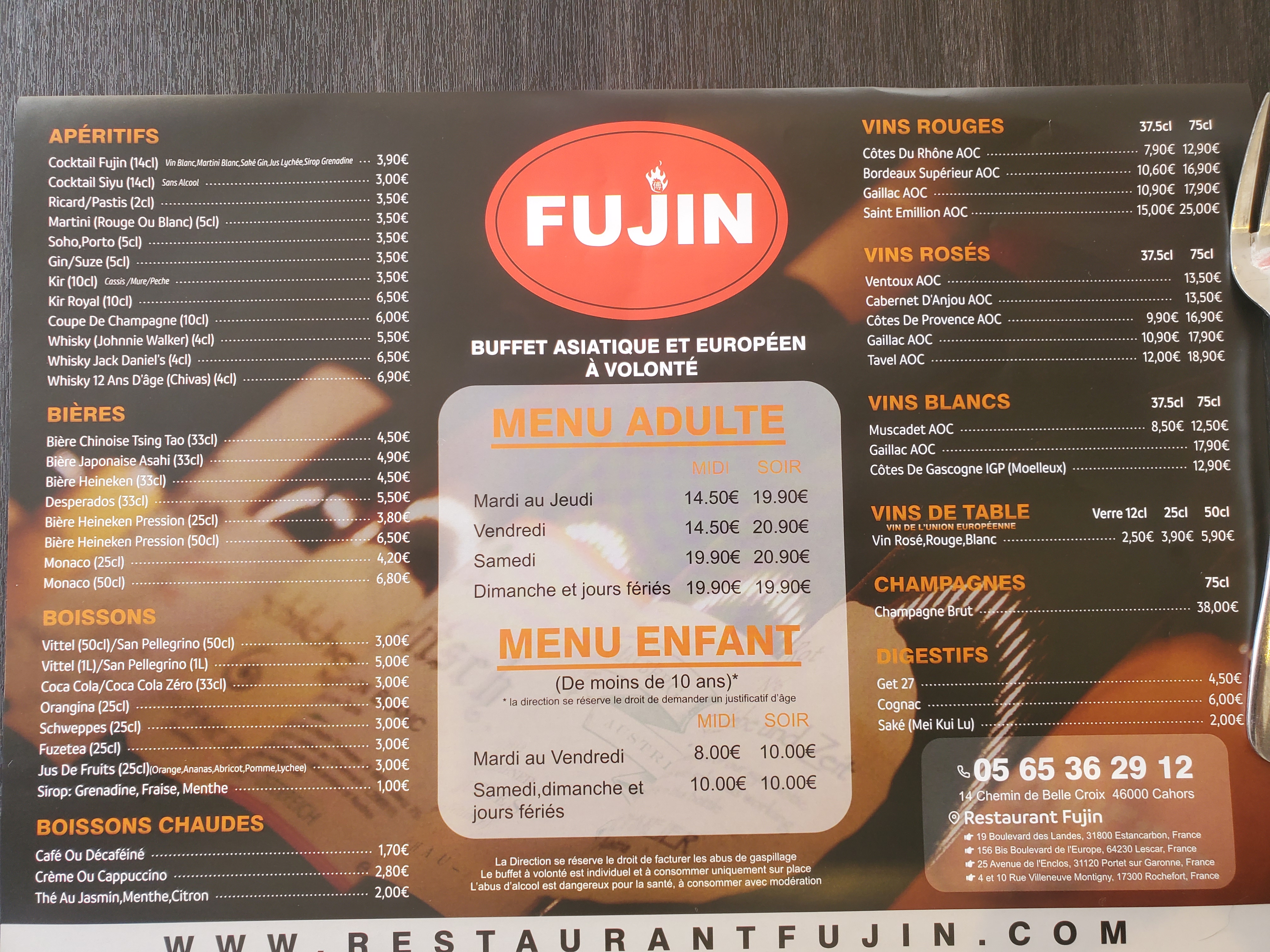 Première expérience au Fujin de Cahors, un régal !!! Le choix des plats est très grand et très varié, tout est très bon, les plats proposés sont excellents, le service impeccable, tout parfait !!! Je recommande +++++++ .