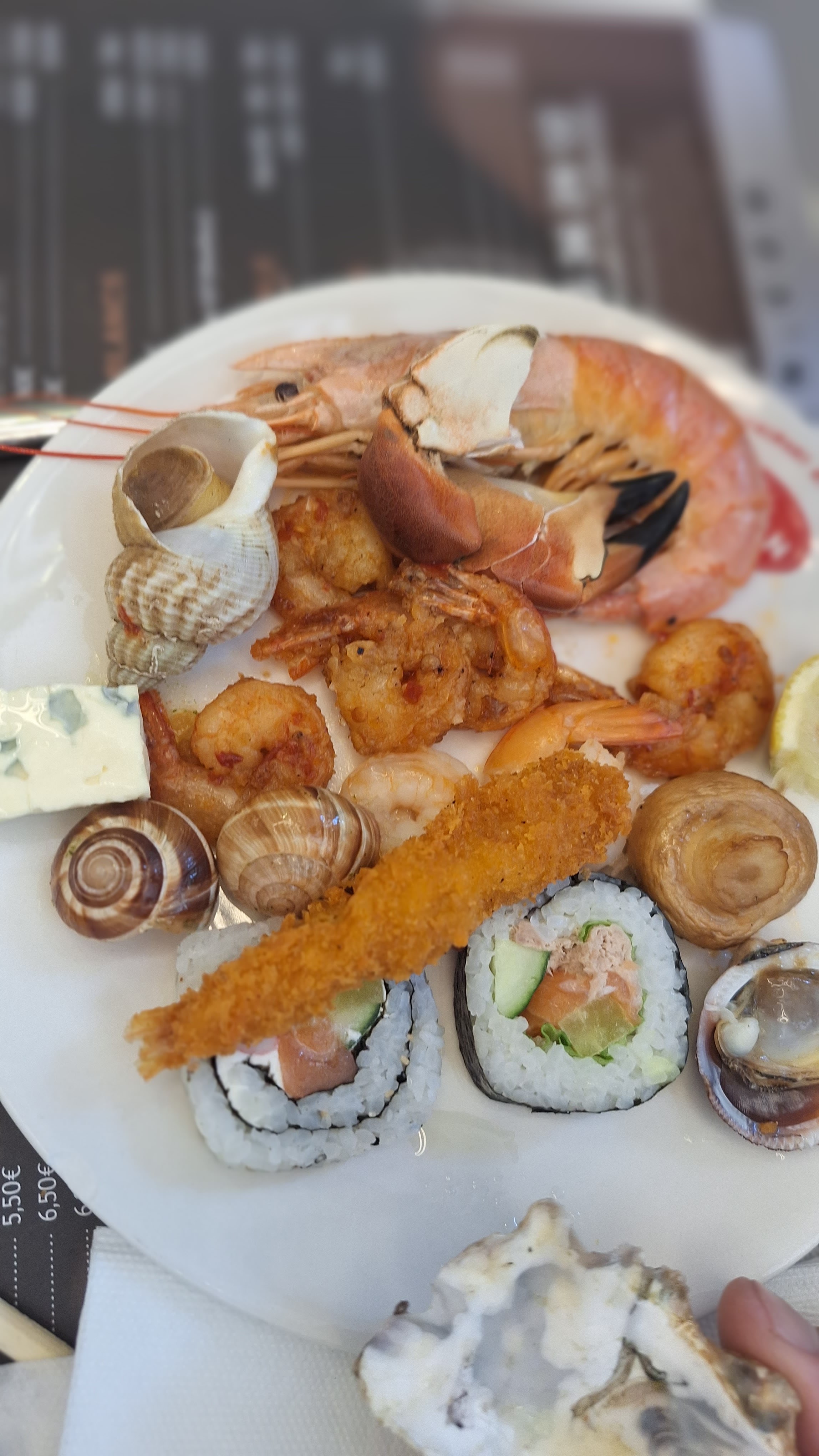 J'y suis allé le soir de mon anniversaire après avoir eu des recommandations de plusieurs amis qui y ont mangé et quel plaisir... De tout, fruits de mer. charcuterie, sushis etc. Tout est parfait, l'ambiance, la quantité et qualité, le wok et plancha au top. Le service au top. Je recommande fortement