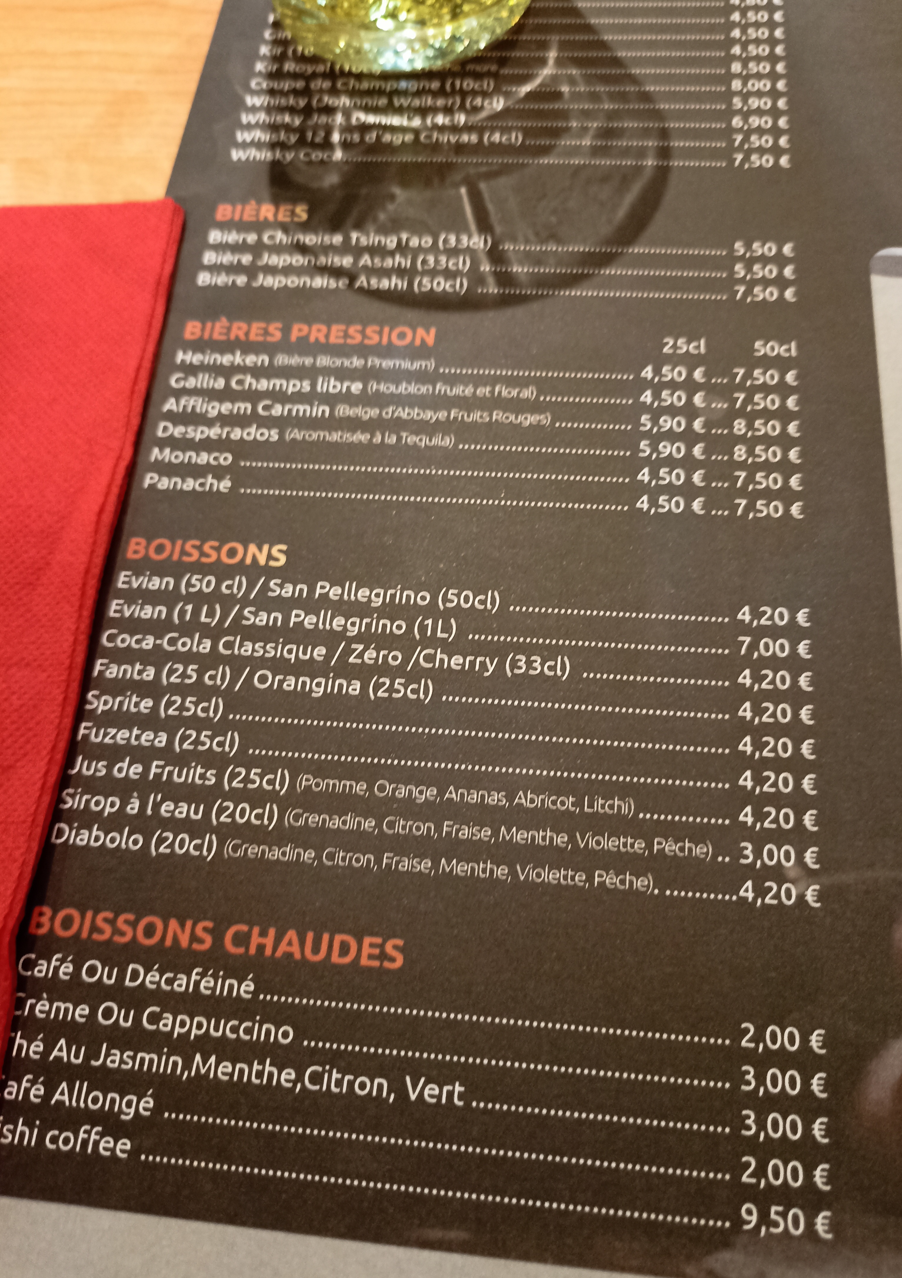 C’est un buffet asiatique donc pas un étoilé bien sûr mais il y a un très très grand choix de produits, le wok est très bon, le cadre sympa + et propre. Un bon rapport qualité prix. J’y retournerai avec plaisir.