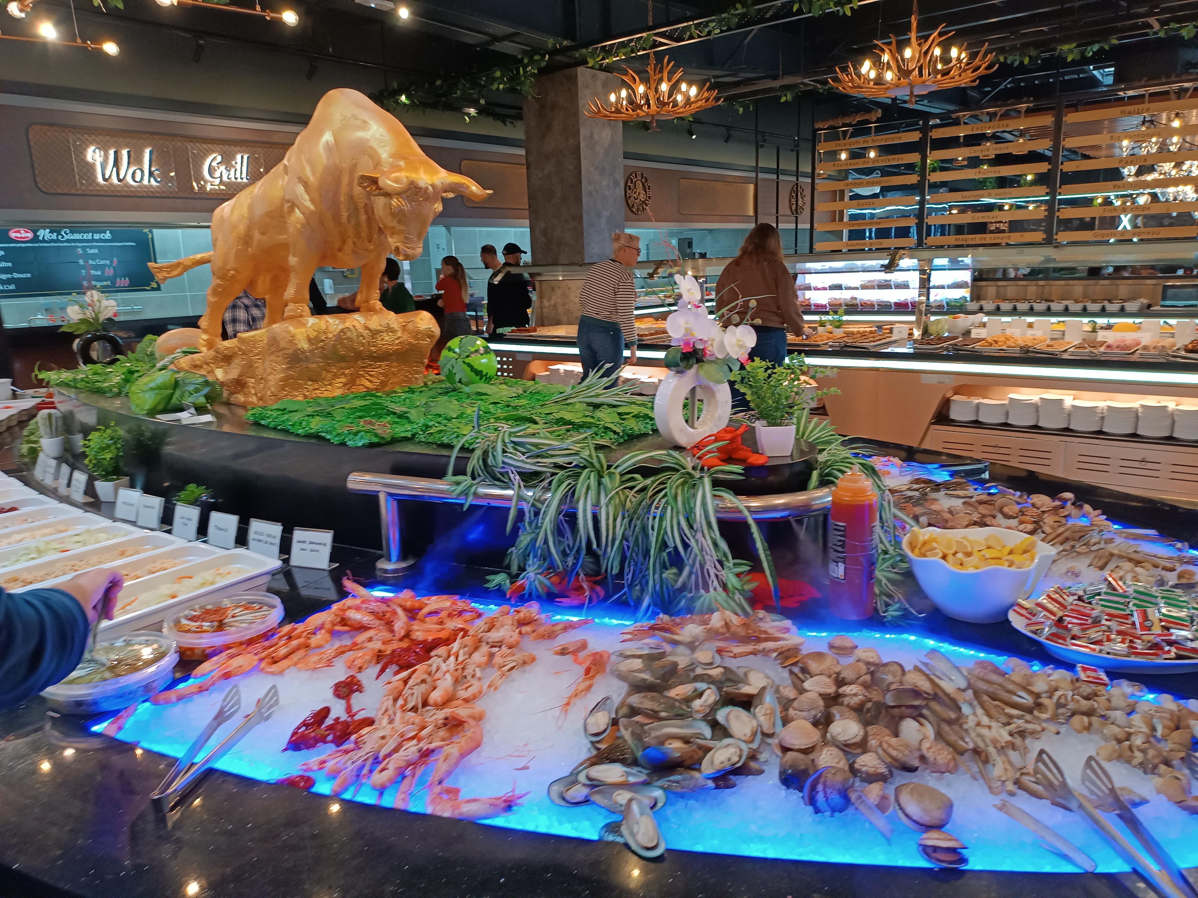 Fruits de mer pas du tout frais, plats chauds ou plutôt tièdes sans gout, desserts tout juste décongelés. si vous aimez les éclairs givrés vous en trouverez..... À part ça, c'est spacieux, parking facile, avis très mitigé sur le robot qui amuse les enfants...... Bref, plus de - que de + !