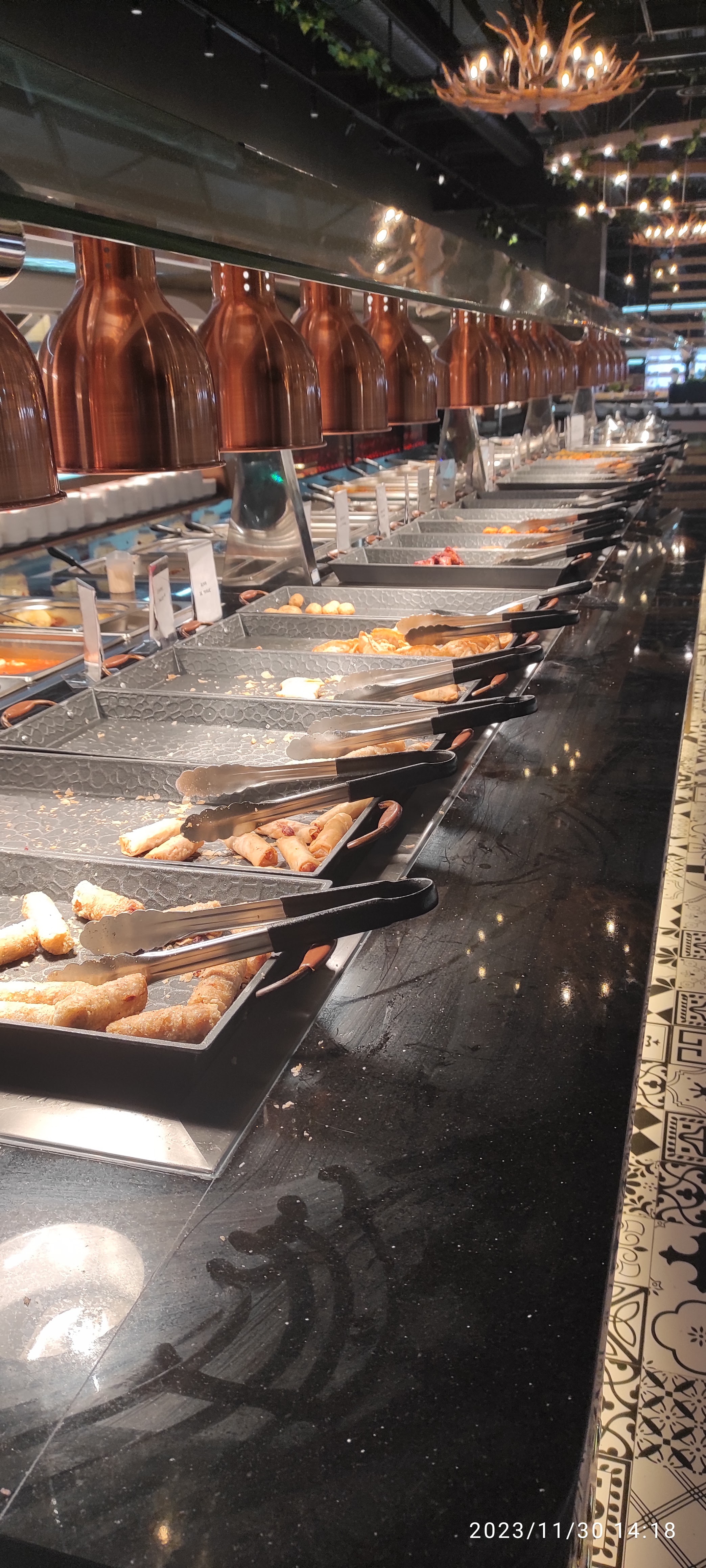 Buffet impressionnant. Service attentif, employés aimables même si certains serveurs ne nous comprenait pas. Pas grave. Il est écrit sur le ticket que toute assiette non terminée sera facturée 8 euros....attention au gaspillage ! C'est plus théorique que réel.