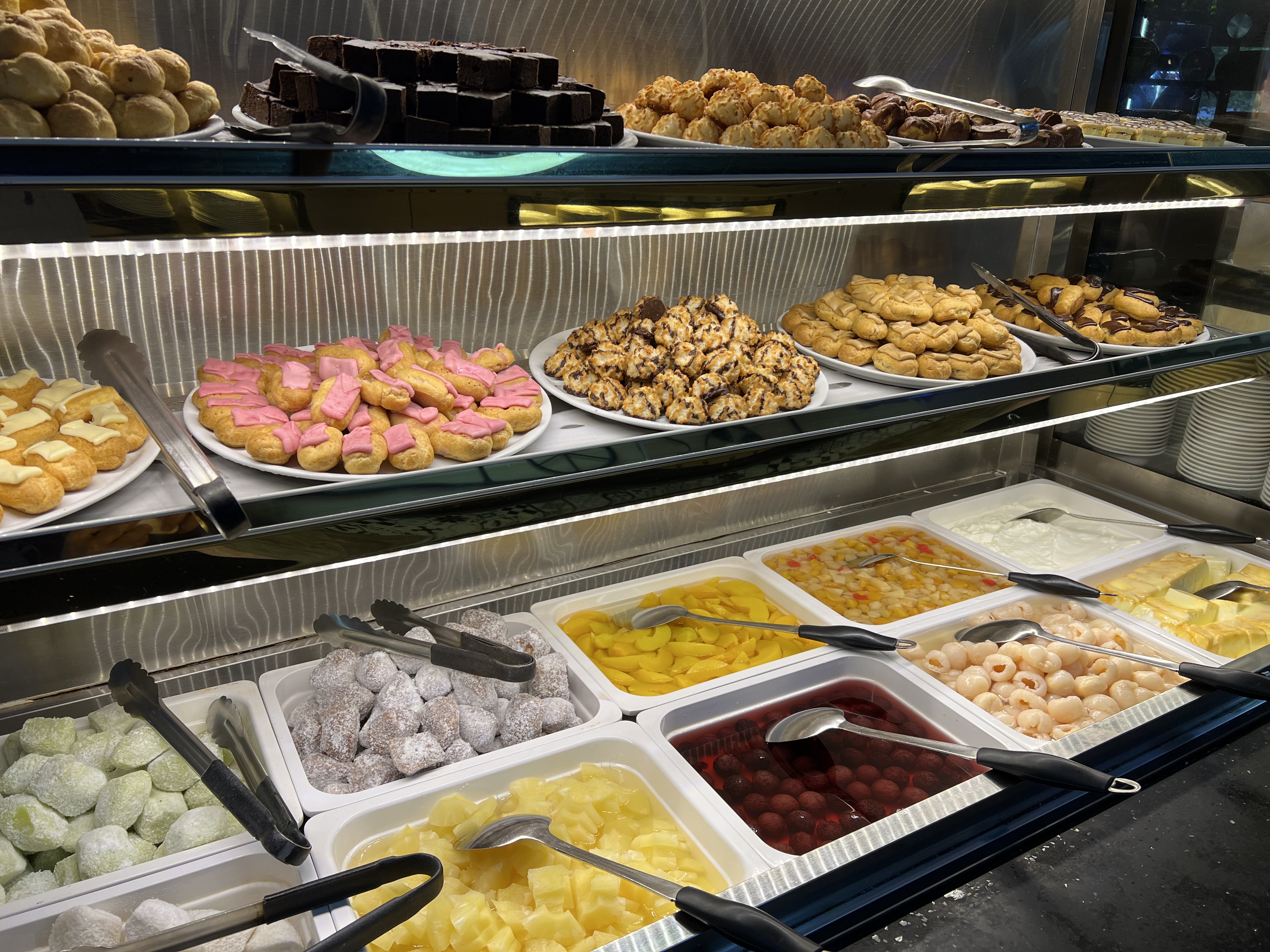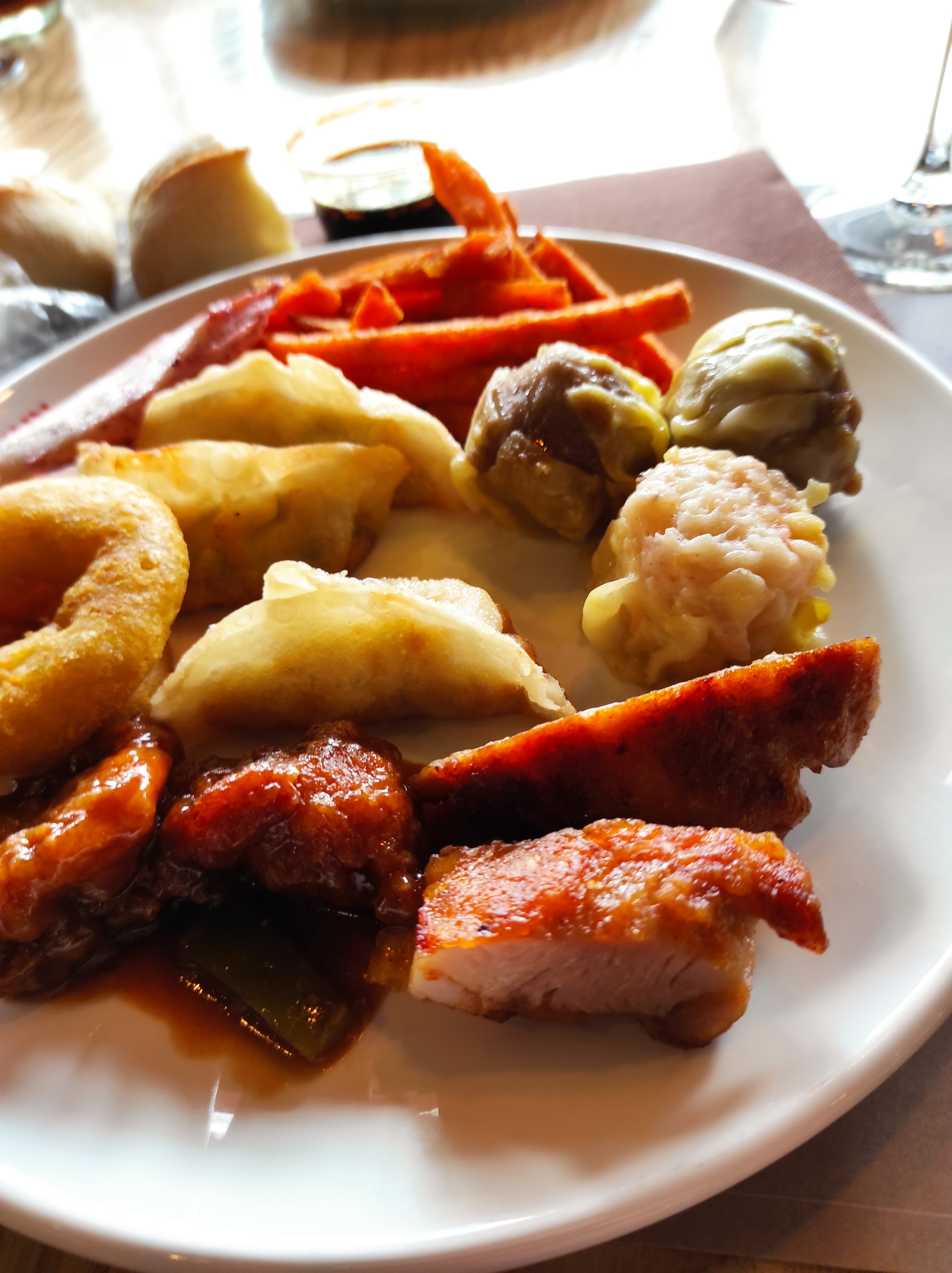 Grande variété de choix passant de l’entrée, au plat, au fromage ainsi qu’au dessert. Les plats présentés font voyager de l’Europe jusqu’à l’Asie ! Les produits proposés au wok sont frais et variés: il y a pas mal d’alternatives végétariennes/végétaliennes. De plus, le personnel est agréable et très efficace. Les mesures d’hygiènes sont respectées. Néanmoins, le sens de circulation pour se servir est un peu tortueux... Mais, vu la taille du buffet, je ne vois pas comment ils pourraient l’organiser autrement ! C’est un lieu que je recommande, surtout aux bons mangeurs !