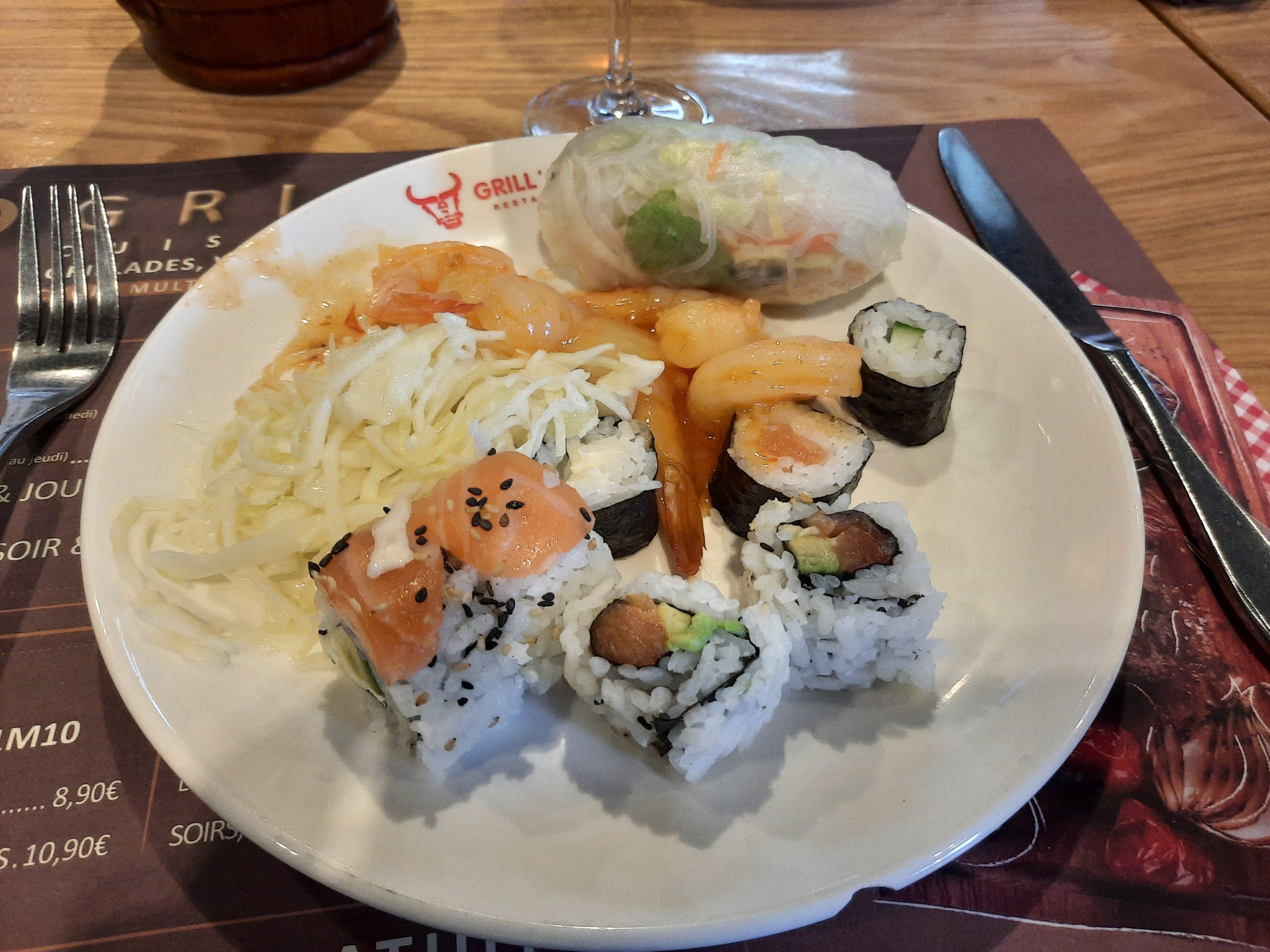 Parfait, il y en a pour tous les goûts, les sushis et les makis délicieux. Le gigot parfaitement cuit. Pas de prise de tête et le personnel sympathique.