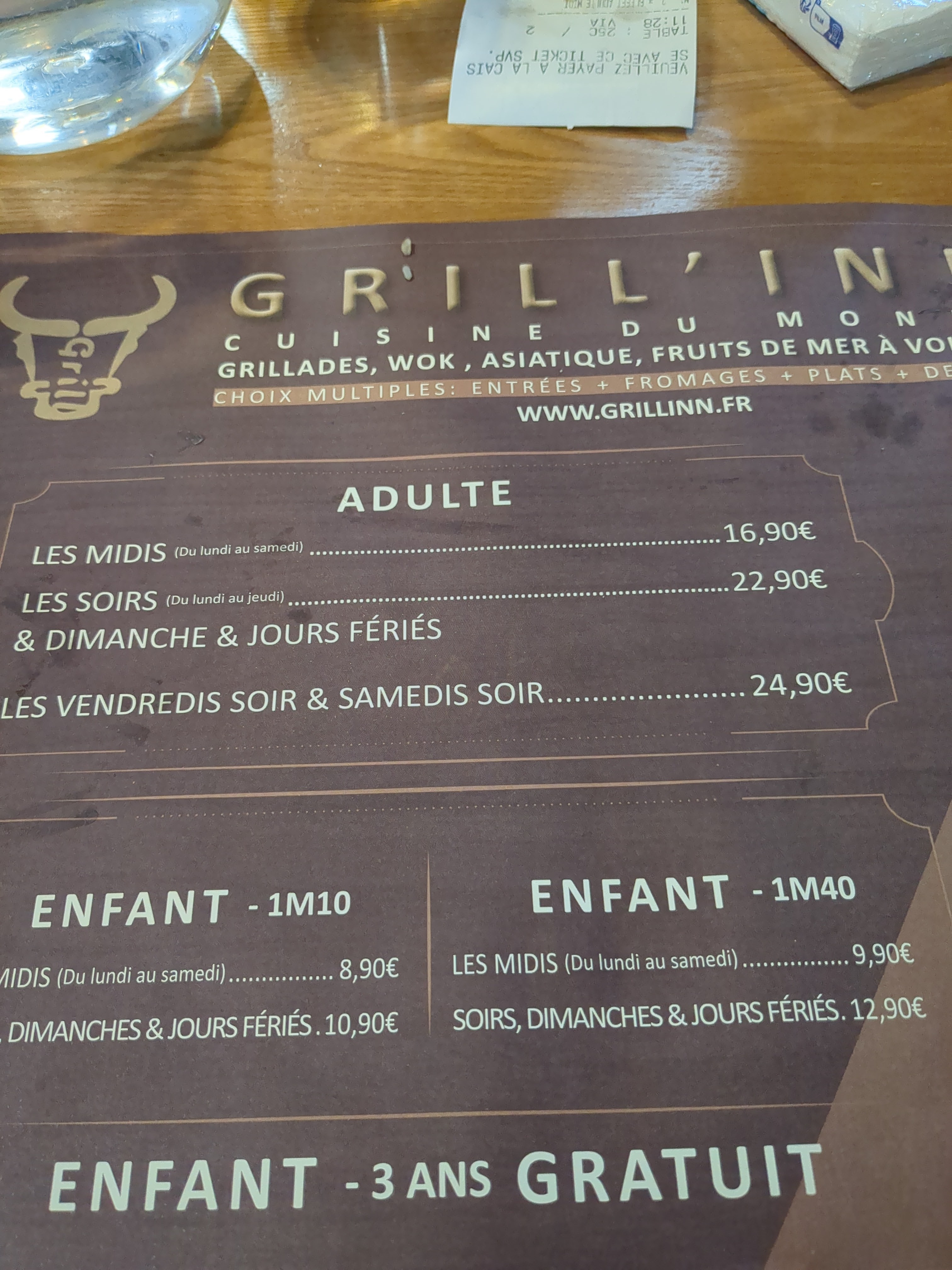 Très bon restaurant, cependant j'ai cru faire une syncope lorsque j'ai découvert les tarifs. 23€ pour les adultes , très correct au vu de l énorme biffet. Mais des tarifs enfants suivant la taille ? Mais c est quoi ça , de la discrimination non? Mes filles de 10 ans mesurent 1m48 et 1 m53 ( filles d un père mesurant 2m02 , et d une maman 1m80) et comptent donc pour des tarifs adultes à 10ans et je pense ne mangent pas du tout comme des adultes , alors bon, si à 10 ans on est pas un enfant je pense que l on nait alors adulte! Je trouve ça incroyable, il va falloir remédier à cela je pense car en 2024 il est très grave de mettre un prix suivant le physique