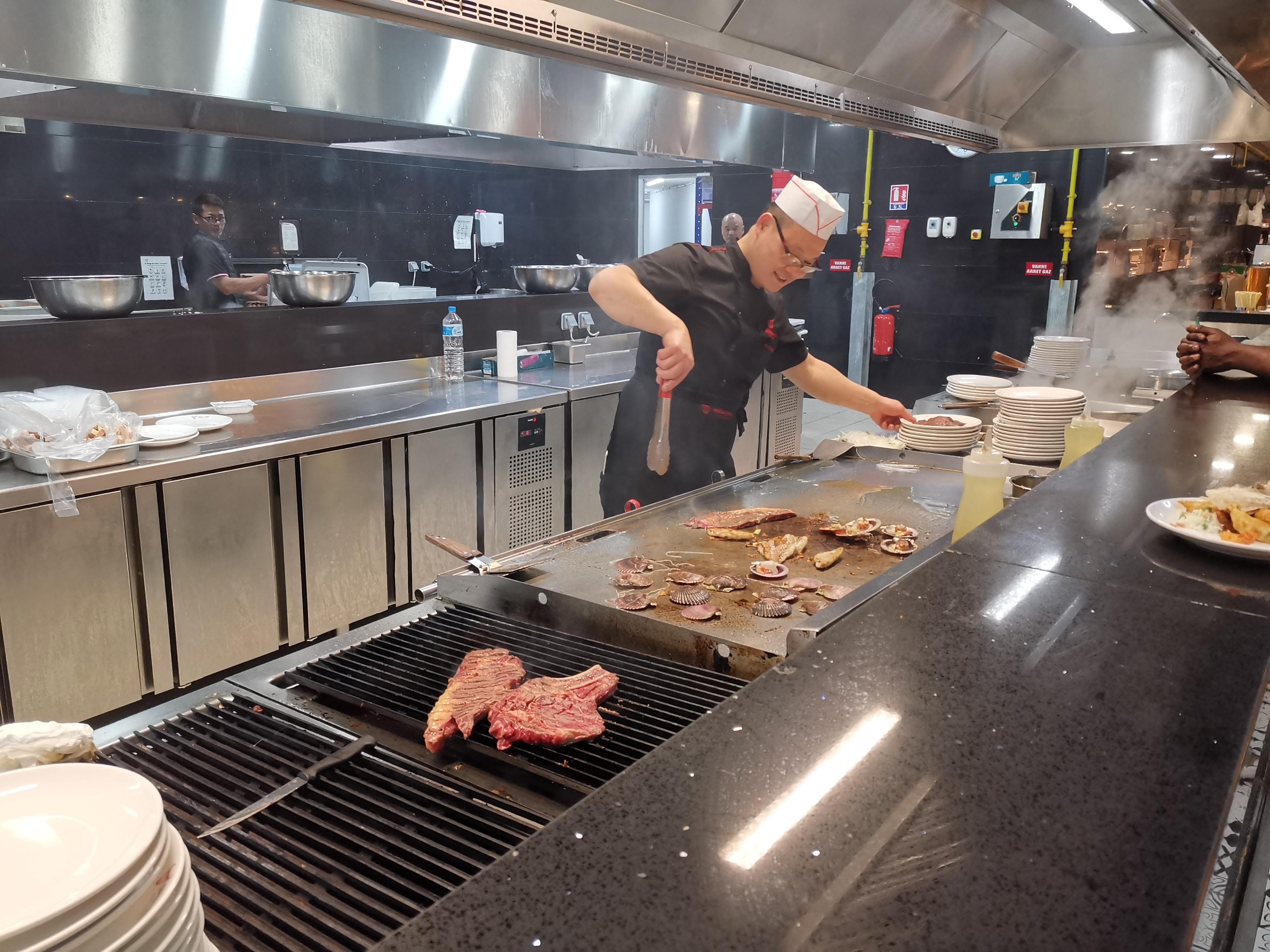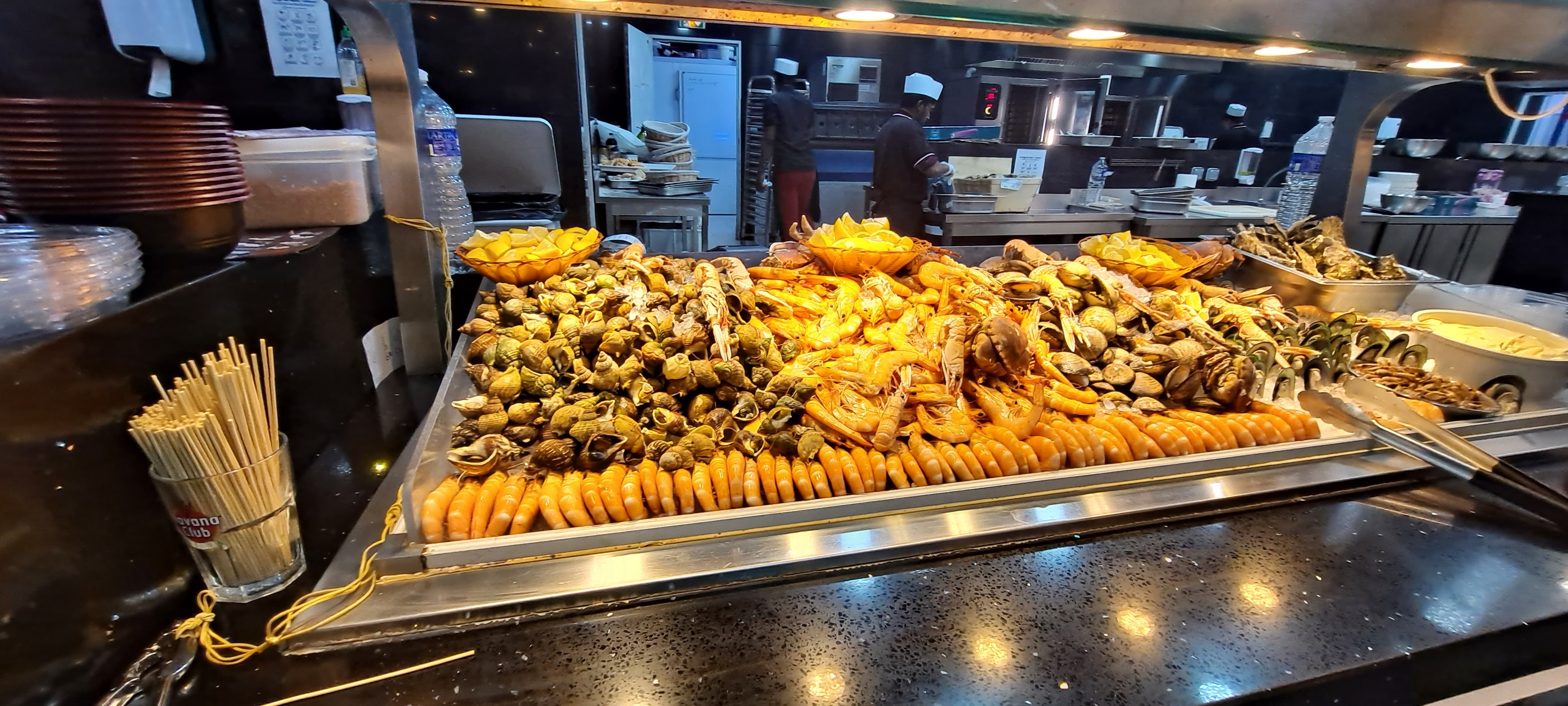 Très grand choix de plats et de qualités. Par contre les serveurs sont 4 pour plus de 200 tables a peine installé qu'on doit commander les boissons. Les toilettes sont aussi ceux du personnel avec juste 4 WC. Beaucoup de monde du coup de l'attente sur les plats préparés (grillades et Wok).