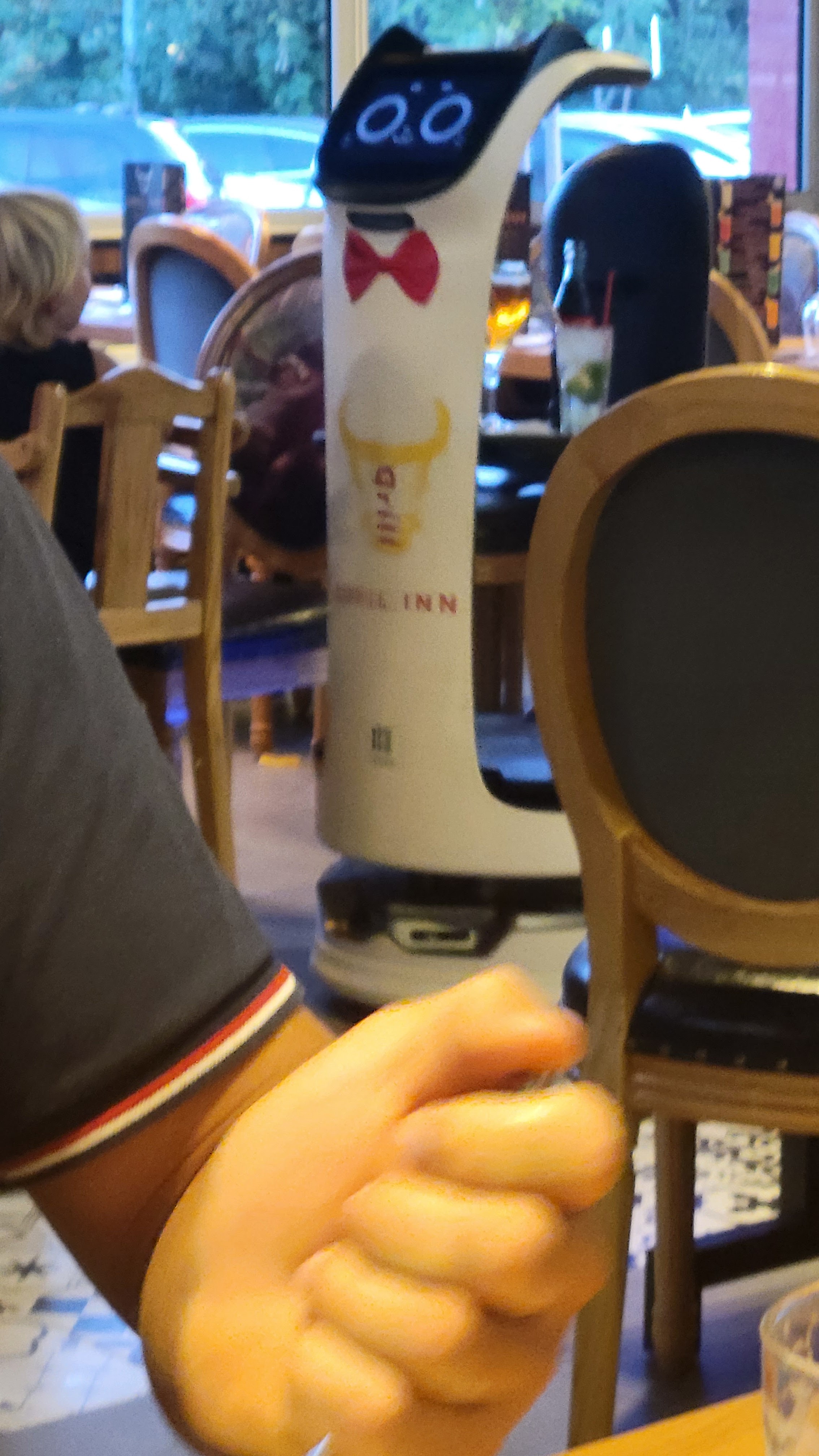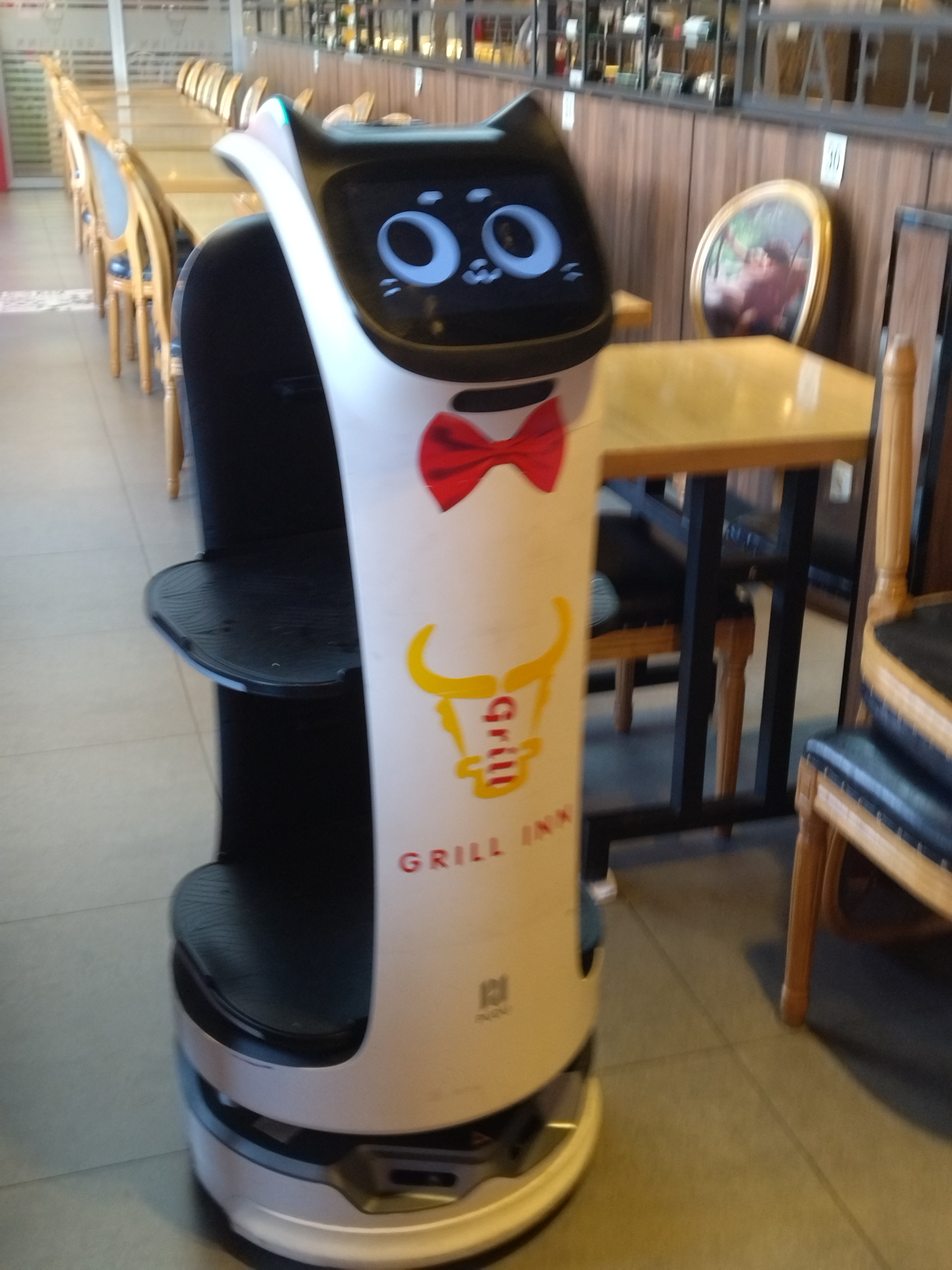 Incroyablement propre pour un établissement de cette envergure. Mais tout aussi incroyable,la qualité des produits et par dessus tout un accueil efficace et sympathique. Prix très raisonnable,bref un sans faute..la petite touche d humour,le. Robot qui se déplace seul pour les boissons