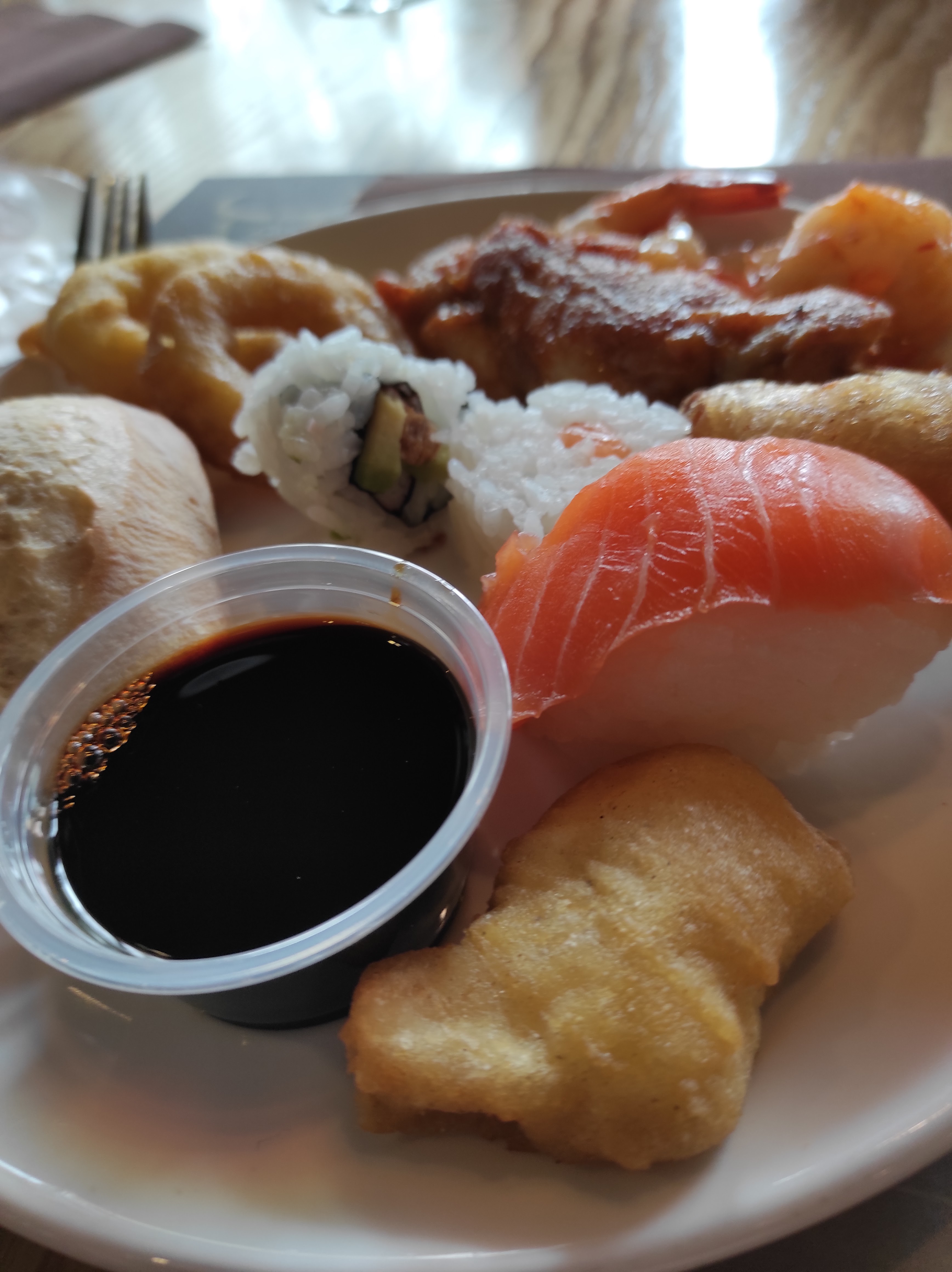 Les sushis sont bons, c'est tout. Le reste est soit froid, soit sec, soit dur, probablement de la veille voire plus vieux