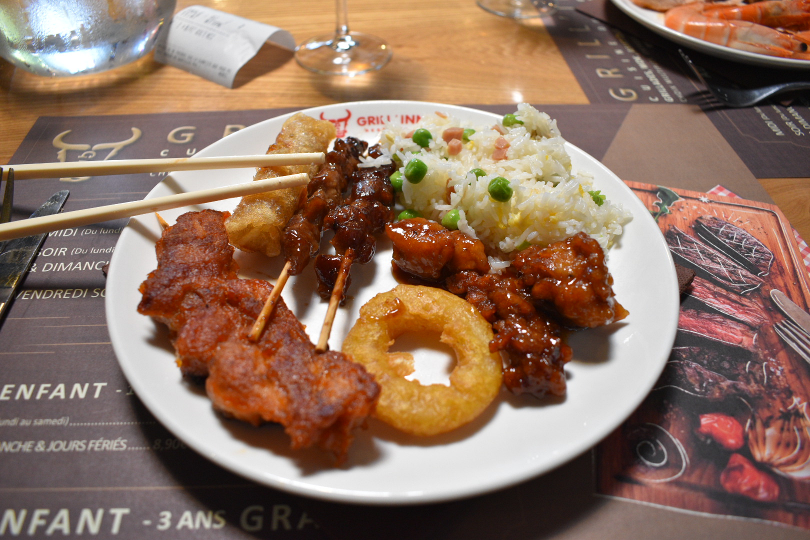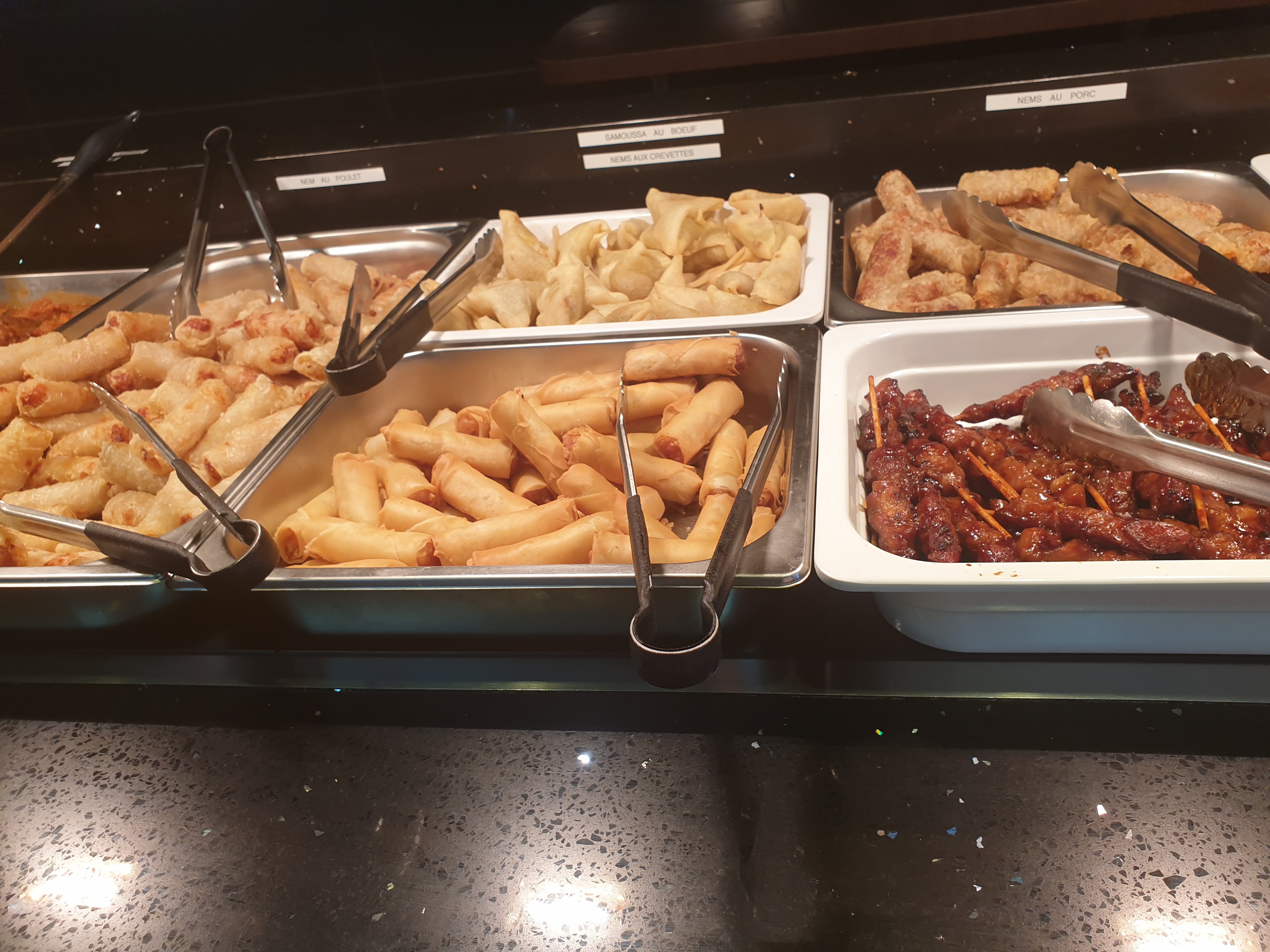 Buffet à volonté de cuisine asiatique et française. Les plats manquent un peu de goût ou d'assaisonnement. Petite rigidité au stand grillade si on demande de griller quelque chose qu'il souhaite faire en wok. Sinon, l'équipe est agréable et le décor est sympa.