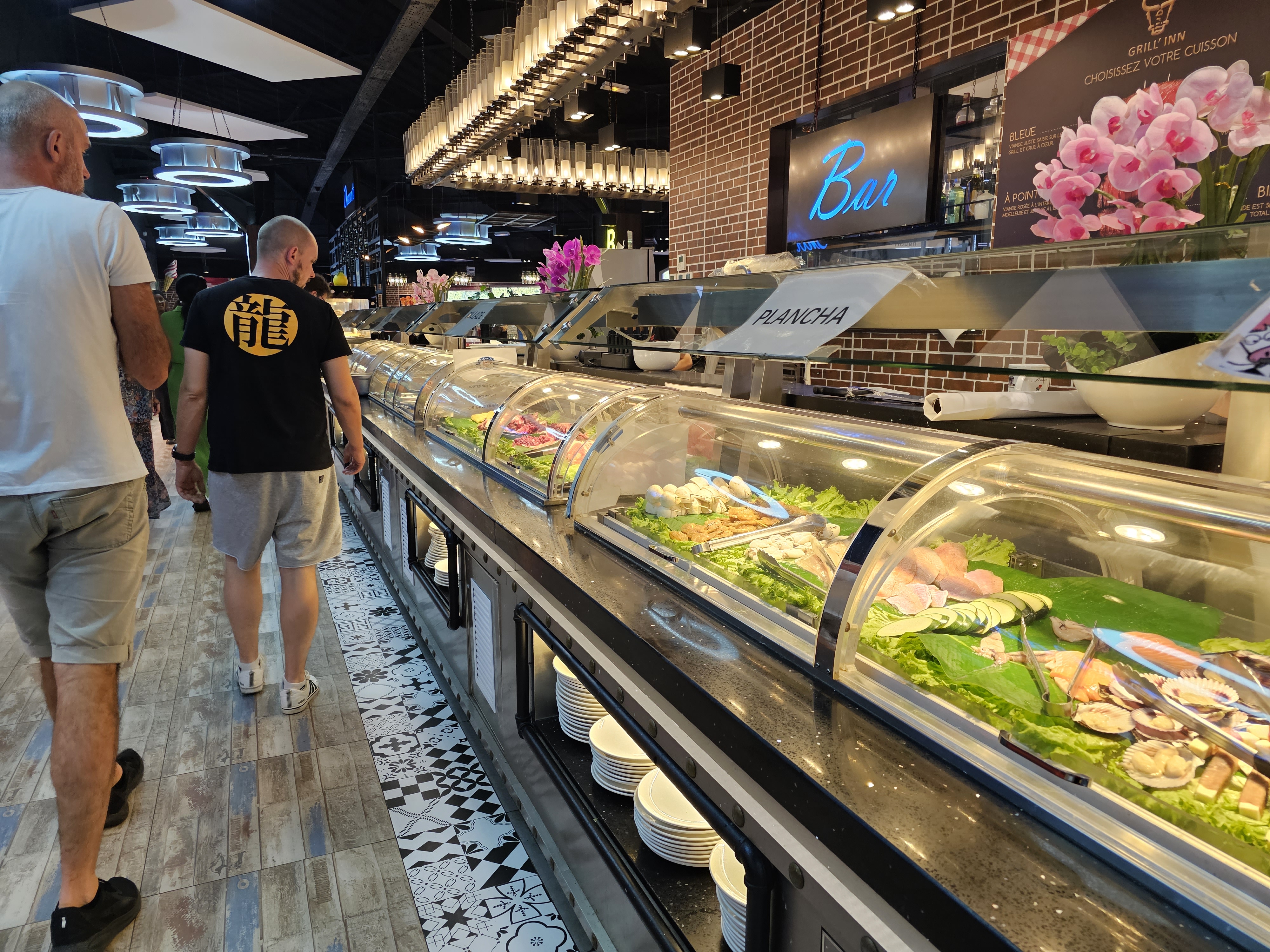 Je ne connaissais pas du tout ,c'est énorme tout ce qui peut avoir entrées froides /chaude sushis,nems,salades de toutes ,plats en sauce,poissons ,viandes cuite à la demande, fromage et desserts ,glaces à volonté .Jy suis allé le soir donc buffet a volonté plus cher boisson non comprise j'ai passé un bon moment je recommande.
