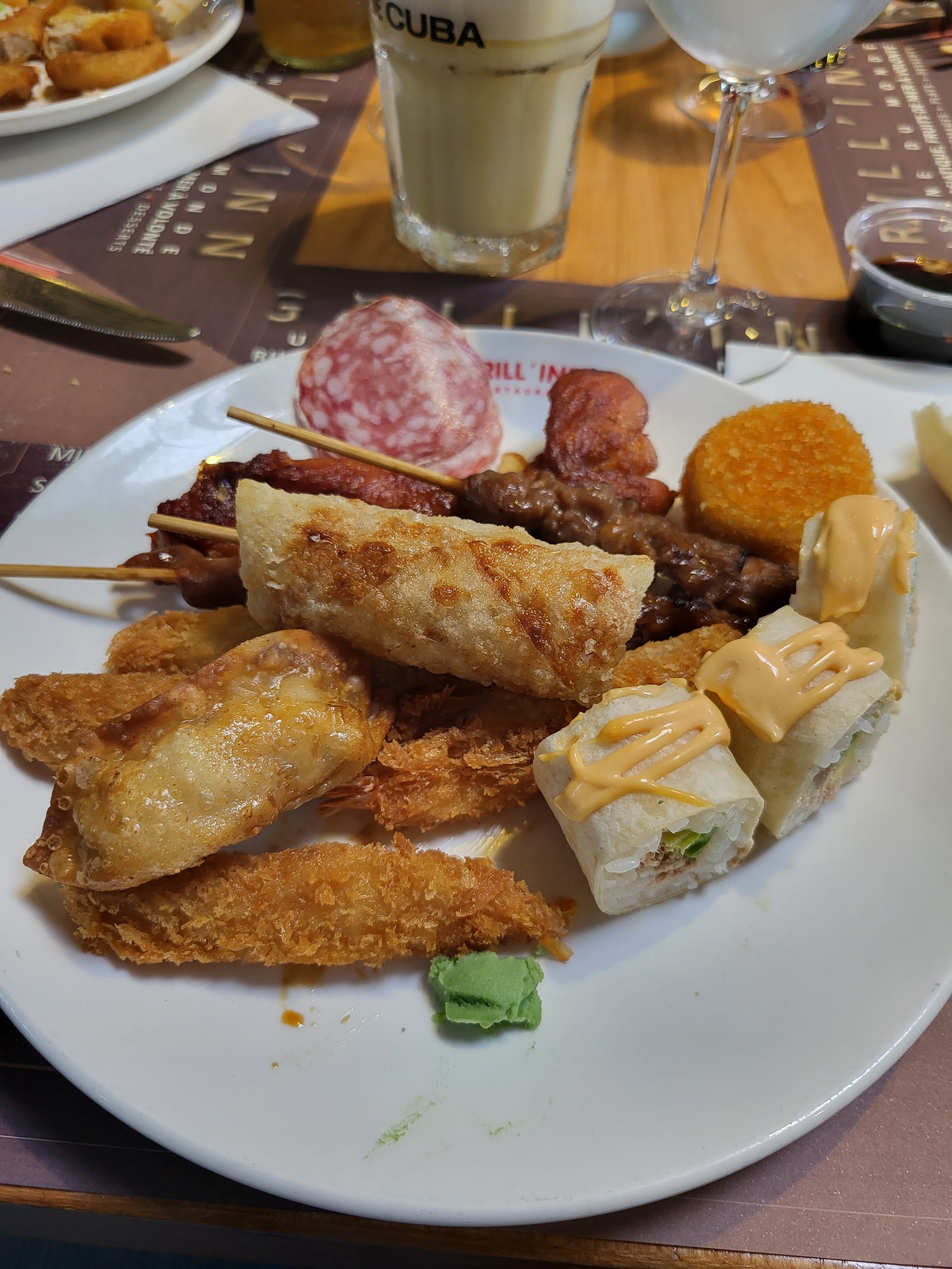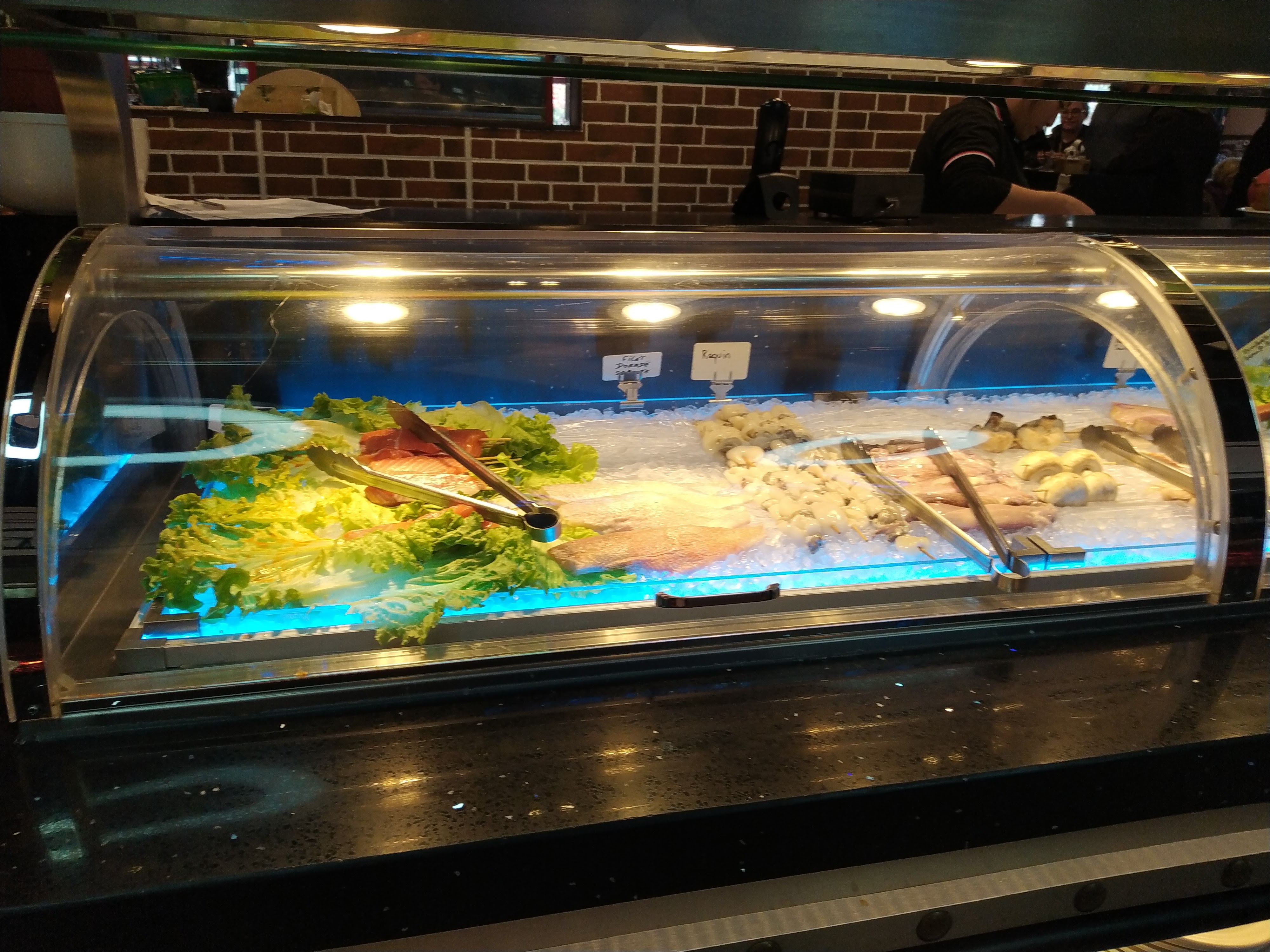 Buffet à volonté, certains plats ne donnent pas envie à manger ( salades, fruits de mer). Le personnel est désagréable- le service à table est mal fait, les assiettes salles restent sur votre table durant tout le repas, très fort odeur chimique après le nettoyage. Il n’y a pas lˋeau dans les bouteilles type Evian, que des carafes avec lˋeau qui sent fortement du chlore. Ambiance bruyante, il y avaient des personnes qui criaient après avoir beaucoup bu. A éviter.