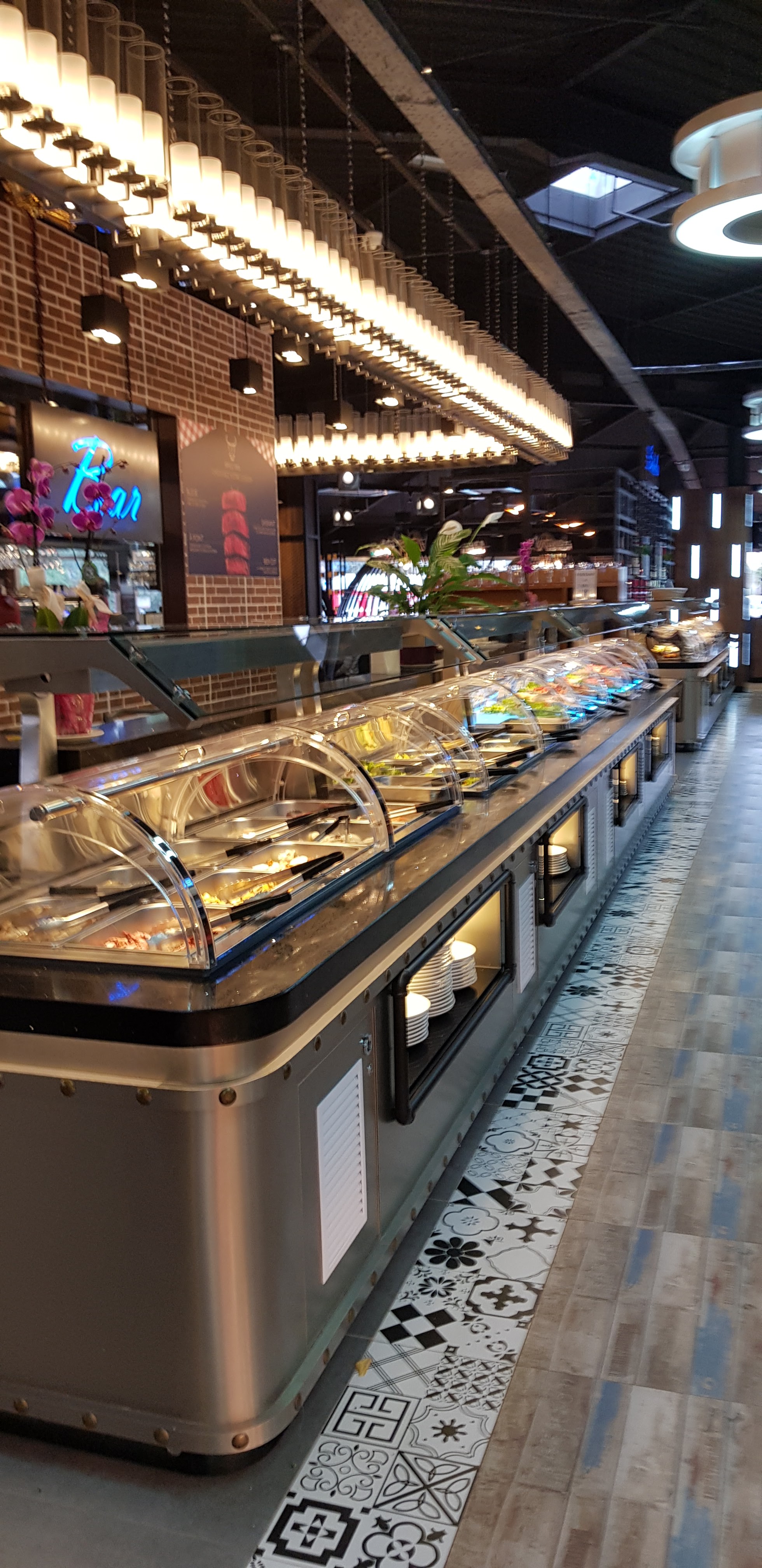 Une très belle adresse !!! Très grand, très standing, très bien achalandé et garni avec un choix gigantesque !!! Les préparations, multiples et variées, crues ou cuites n'attendent que vos assiettes pour chanter la farandole et aguicher vos papilles ... Les pupilles ont déjà été servies lors de votre passage dans les étals ... Plus que confortablement assis, l'ambiance feutrée et chaude vous incline à escompter une belle expérience gustative ... Le personnel , très pro et attentif, souriant de surcroît vous guidera dans vos démarches à dessein de vous satisfaire devant les assiettes que vous prendrez plaisir à remplir et à déguster ... Le petit robot vous servira selon vos envies ... Très belle adresse, et la sécurité est omniprésente, avec le sourire ...