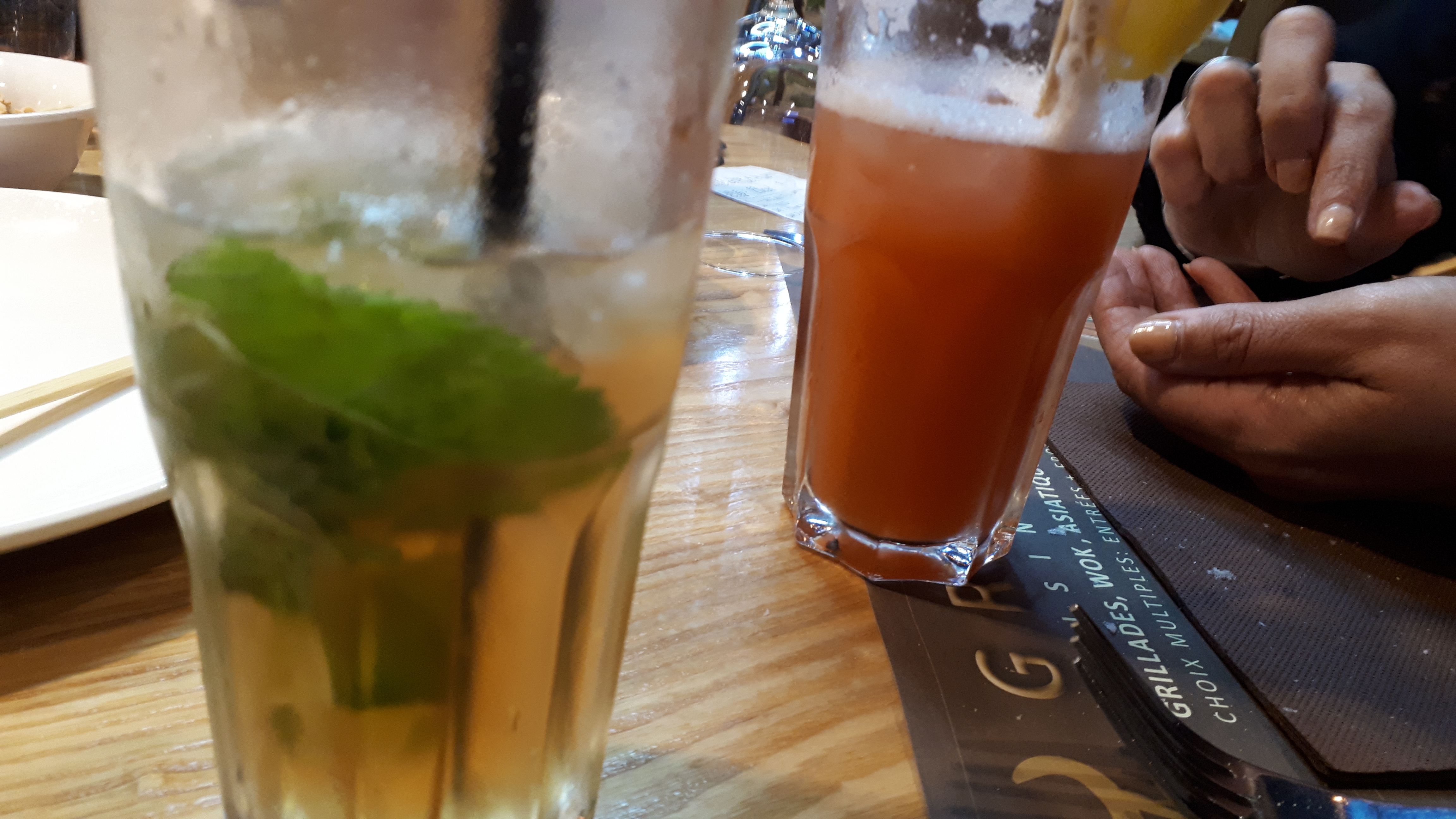 Je ne renouvellerai pas Arrivés et placés en plein sur ouverture de porte par 1°dehors sans mettre au minimum un paravent (Samedi soir très fréquenté) Salade de surimi encore congelée Mention spéciale pour les très belles crevettes cela a sauvée la note Par contre la mayo présentée en saladier Où les indélicats clients mettent tout et n'importe quoi dedans Zéro pointé Nems et samoussas secs et froids Poulet du chef Je me demande encore quelle partie du poulet ou qu'elle est la race de celui ci vu les morceaux Par ailleurs il n'a pas du trouver le chef Du coup je suis restée dans le classique Aspect des plats cuisinés trop gras Par contre les sushis ont plus Dessert salades fruits corrects mais sortis des boites et nougats Que nous avons pas pu terminer vu que l'on nous a débarrassées nos assiettes encore pleines sous notre nez que nous voulions terminer.... Noktails pas foufous mais on passe vu le reste Ambiance hyper bruyante Vigile aimable avec le compte de jetons de sortie.😉 Troisième fois et dernière fois pour nous Venons. 61€ pour deux. Au final cher pour manger du poulet des frites reconstituées une salade encore gelée Un jus de fruits Et un mirage de dessert dans un bruit plus élevé que la foire de Paris