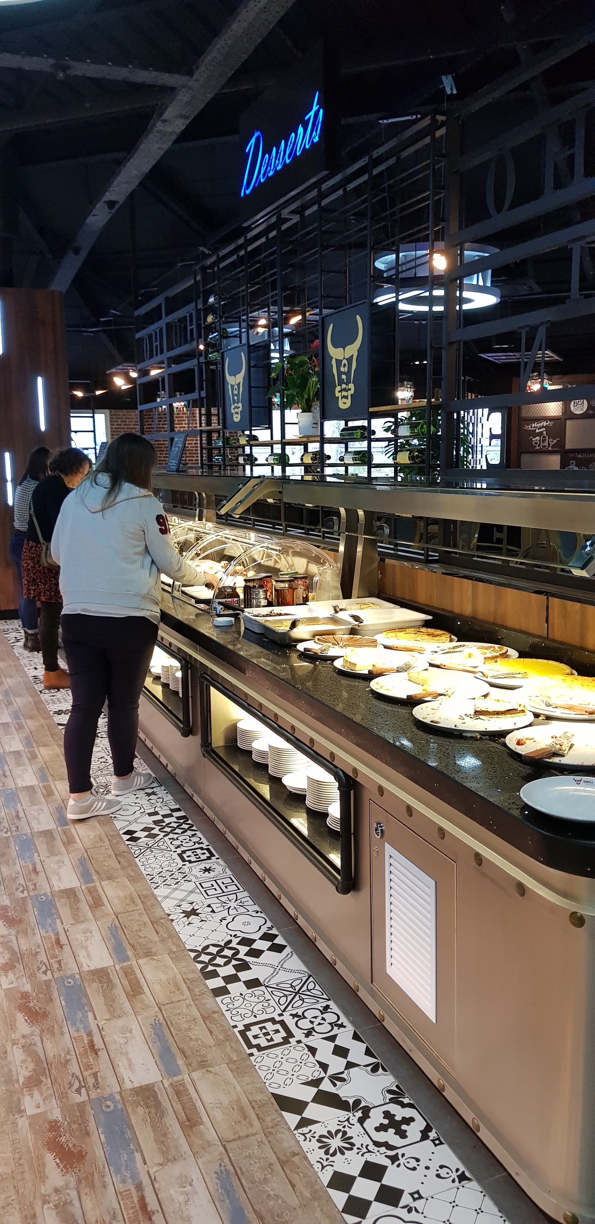 À fuir le weekend ! C'est pire que la cantine de l'école, énormément de bruit ! des files interminable des gens qui poussent j'ai était découragé pour aller à la grillade et même pour payer faut attendre,et oublié pas de saluer les vigiles à l'entrée. Si vous prenez un apéritif et un vin à table on dépasse les 30€/pers Autant aller ce poser au calme dans un vrai restaurant avec service à table. Je genre de formule pesait dans la balance quand ça ne dépassait pas les 18€/personne.
