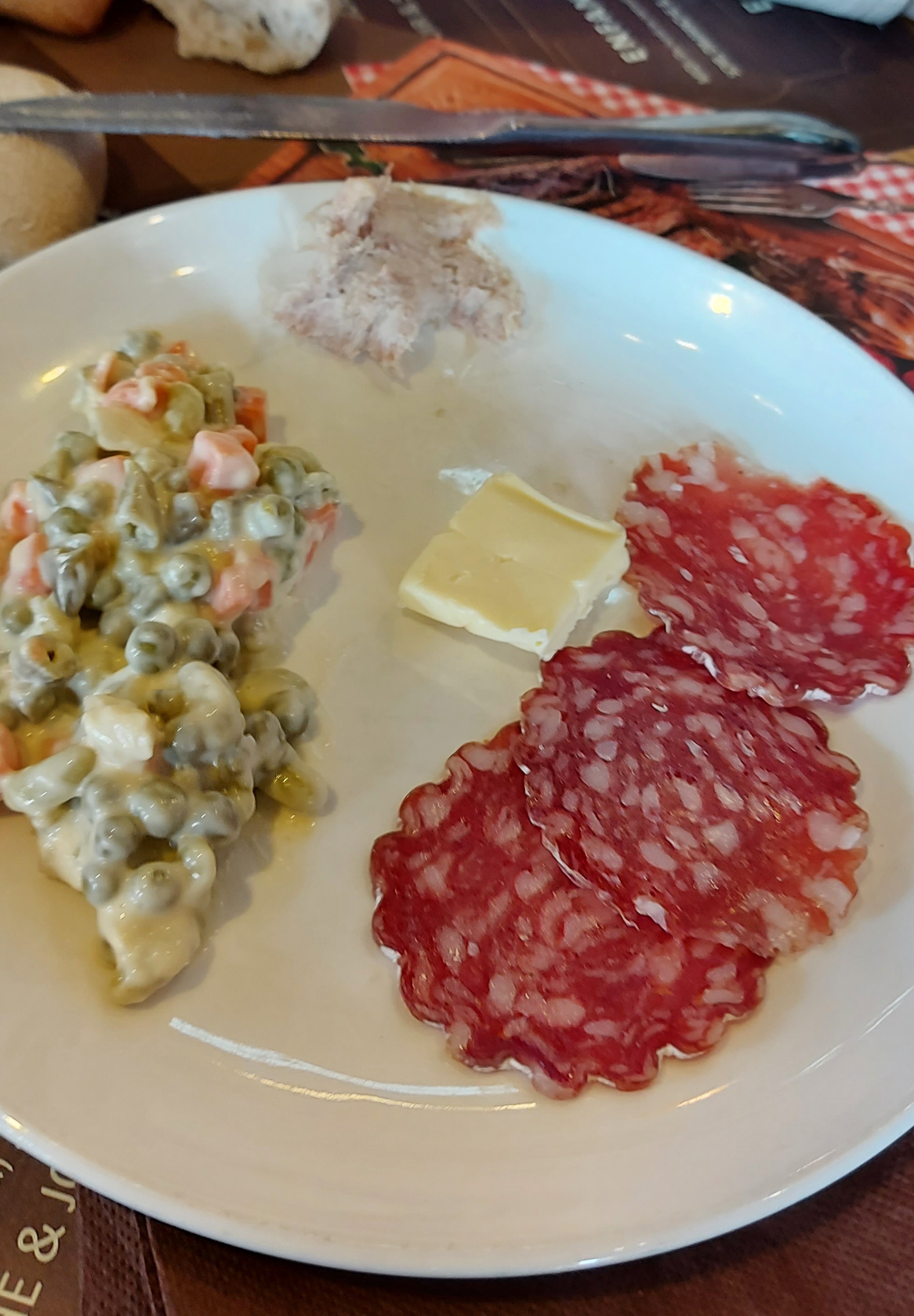Super resto. Nourriture à volonté aussi bien pour les entrées, les plats, le fromage, les dessert et même les bonbons pour les enfants. Et les chiens sont acceptés. Un choix de produits de très bonnes qualité avec un prix très abordable. Et cerise sur le gâteau un robot vous apporte le café. Le détour de quelques kilomètres sera sympa pour tous avec un service de qualité...