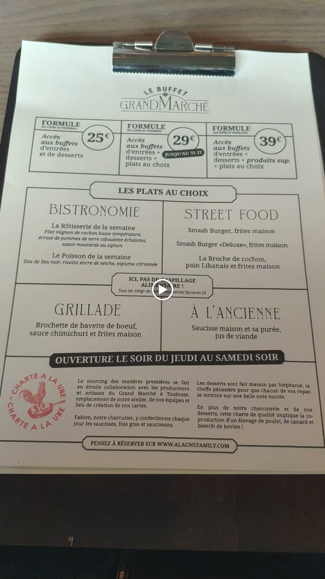 Nous avons adoré le buffet du grand marché. Très bon moment passé chez vous équipe très agréable et aux petits soins. Nous espérons un jour y retourner.