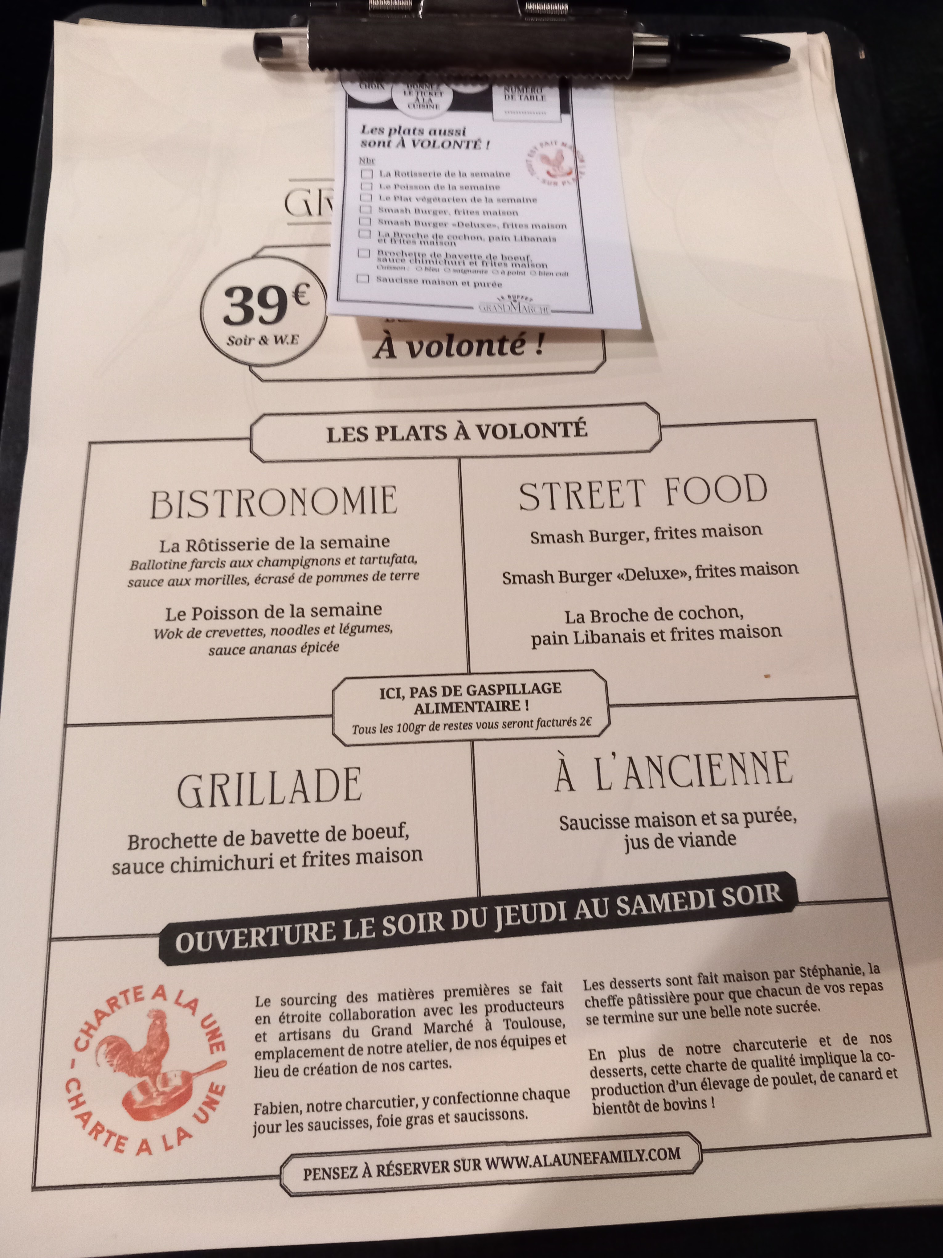 Lieu très sympathique on y mange super bien avec une multitude de choix et le plus important tout est à volonté pour 39€ sans compter les boissons l'approvisionnement se fait en circuit très court et on y mange très bien !