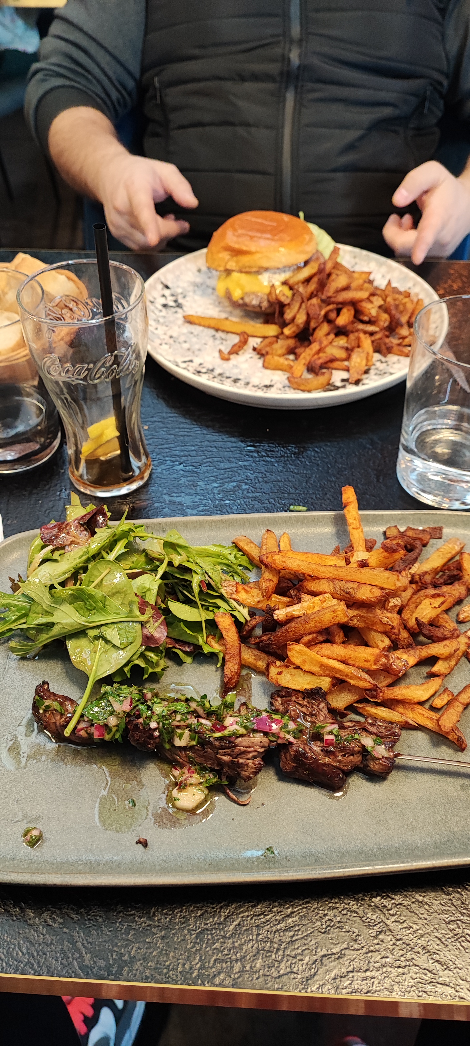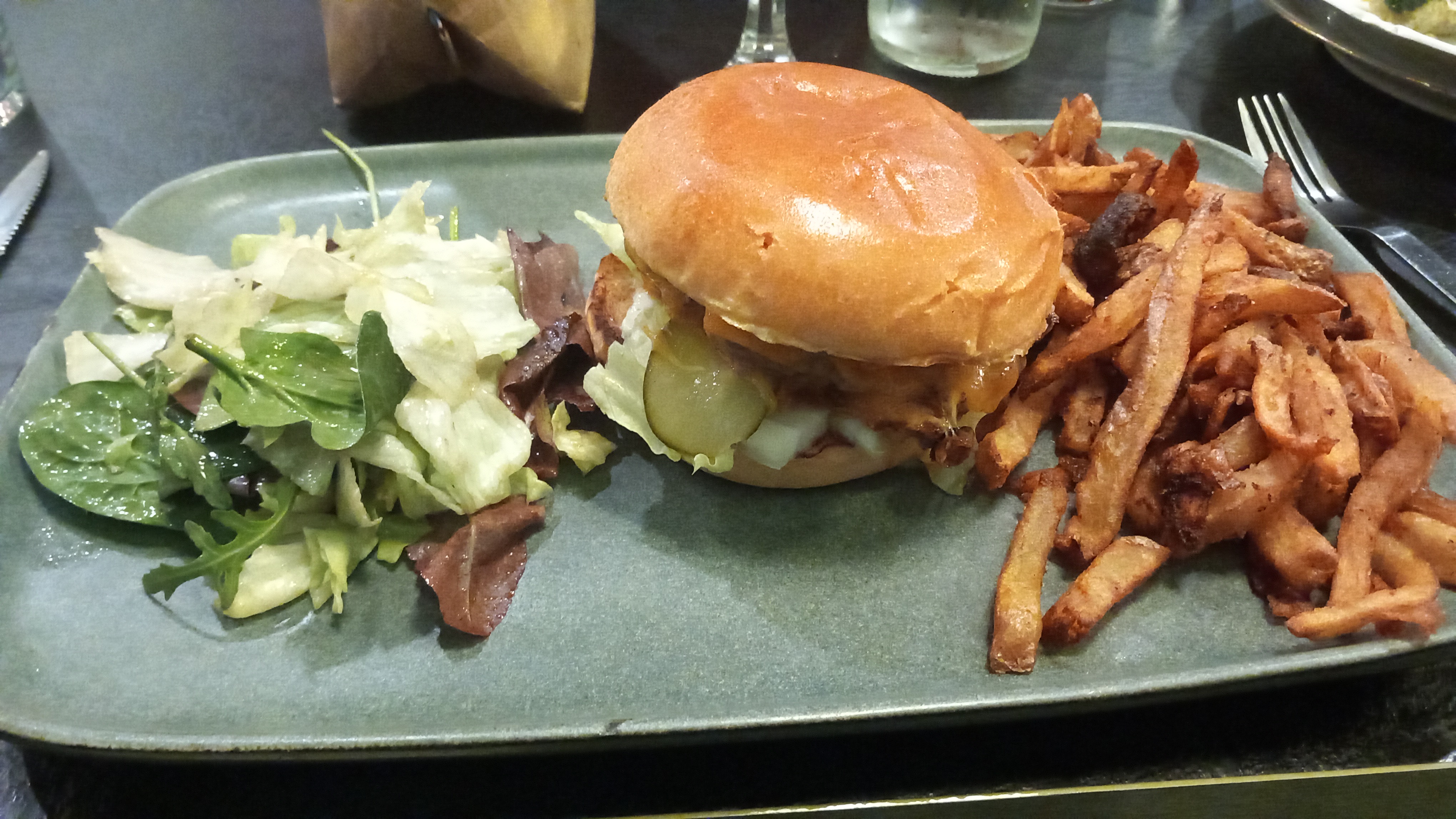 Buffet d'exception Le burger excellent, tendre. Il fond en bouche. La brochette de bavette est très bonne aussi Je conseille fortement Petit bémol, c'est la musique un peu trop forte avec les gens qui parlent autour c'est un peu embêtant. Mais ça reste agréable en fin de repas Le décor est très joli.