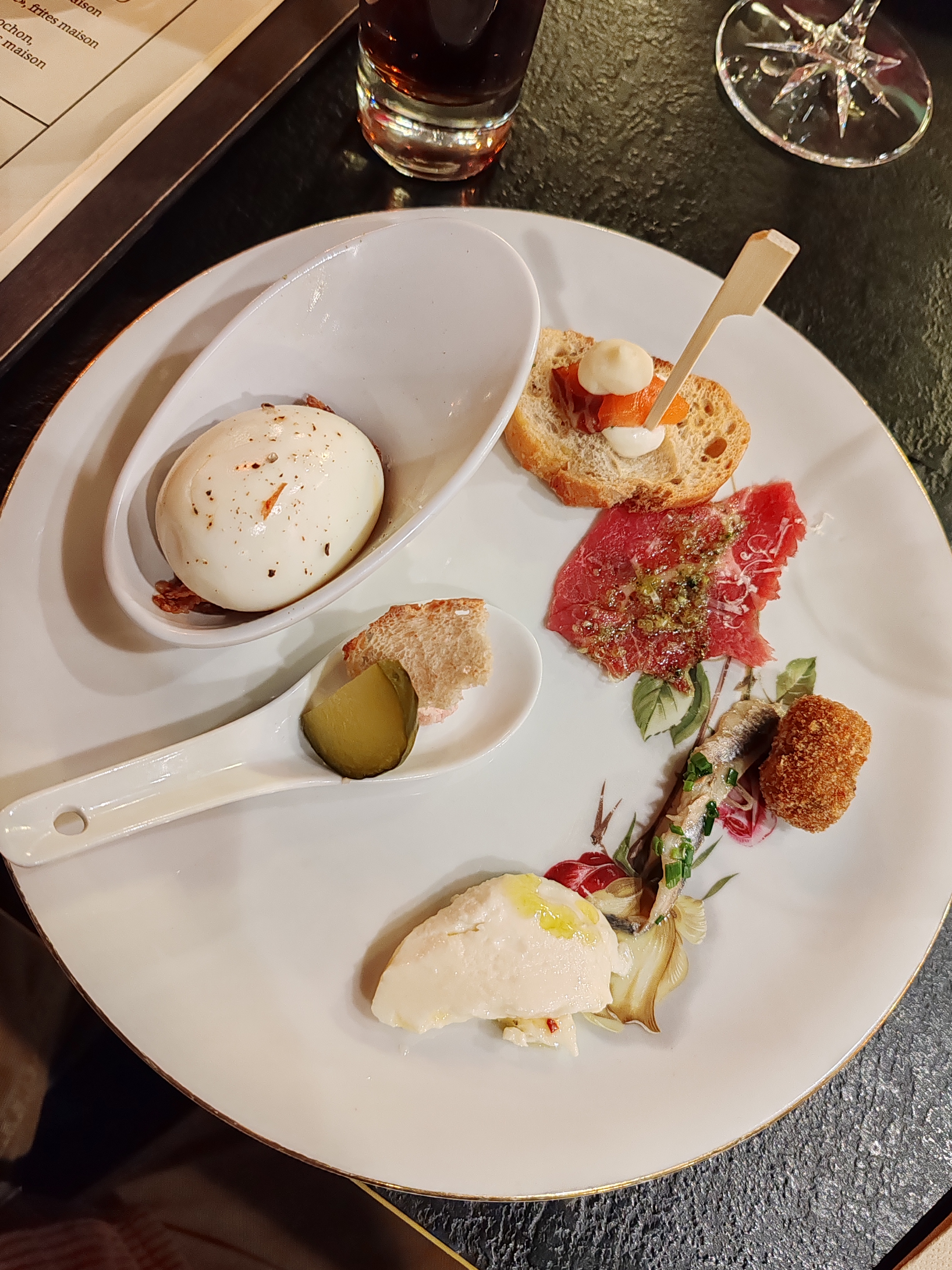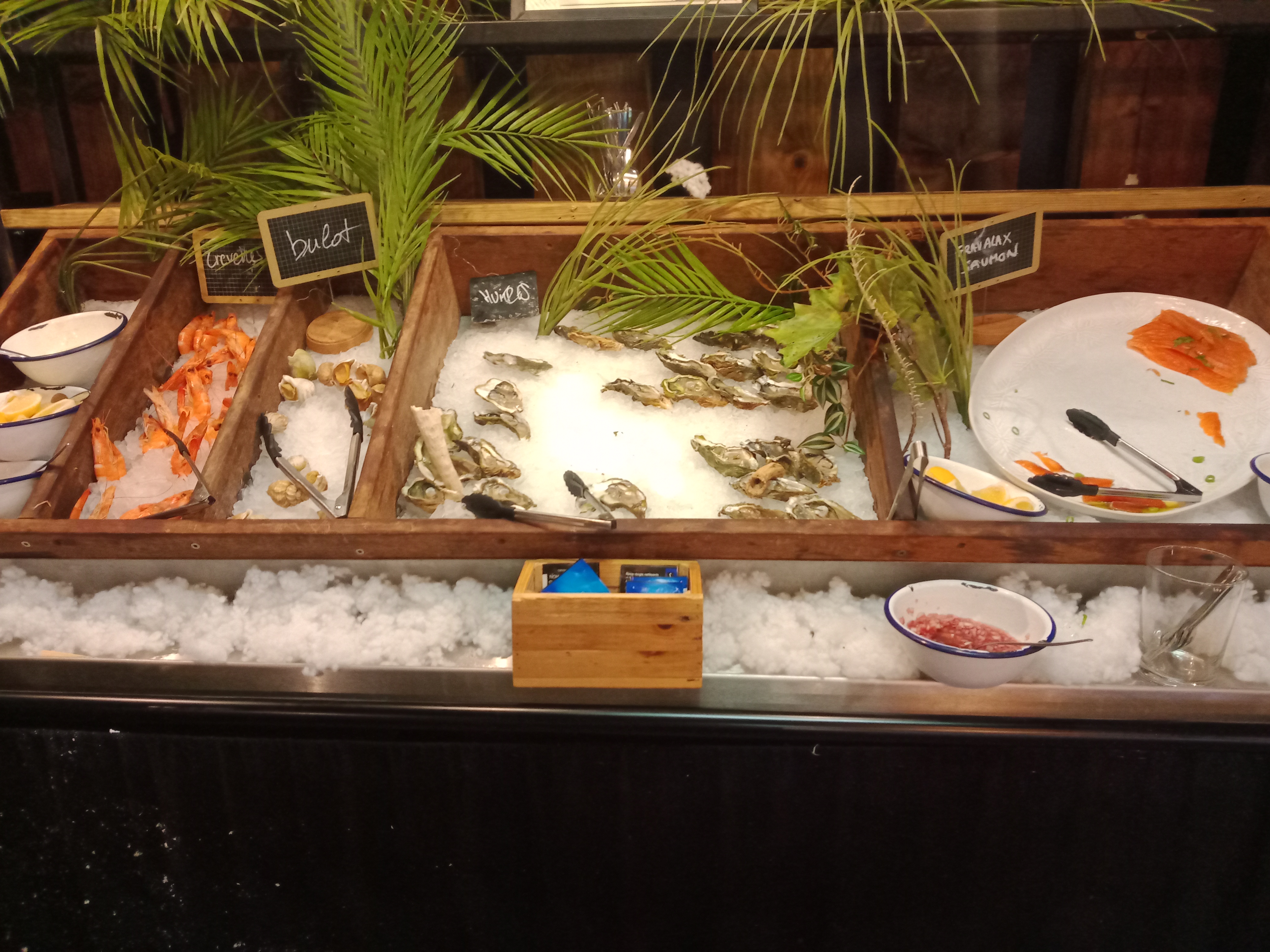 Visité un dimanche midi pour mon anniversaire. Un endroit tout simplement délicieux, pour de belles occasions (prix élevé mais produits de très belle qualité) où la variété de ne fait pas défaut : salades, foie gras, huître, charcuterie, fromages, entrées chaudes et froides. Il serait vraiment intéressant de proposer un menu moins élevé et sans plat seulement les deux types d’entrées (basiques et produits raffinés) et desserts. Cela m’inciterait à revenir, et je ne suis pas la seule! Les serveurs sont assez speeds et parfois trop présents… mais je ne serais pas en capacité de faire ce qu’ils font alors c’est une simple constatation. Chouette expérience culinaire.