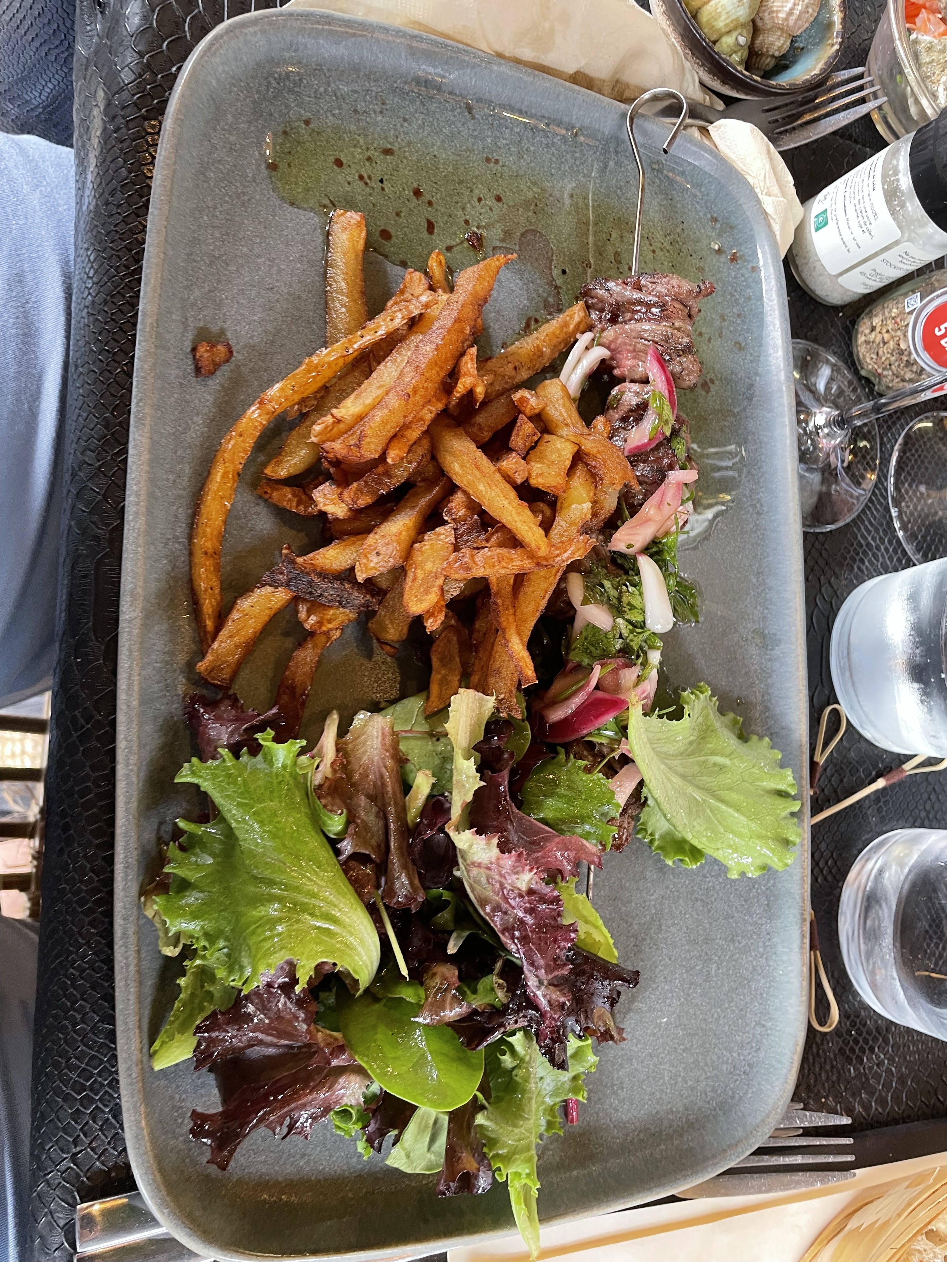 1ère visite dans ce restaurant, ambiance très sympa, joli cadre dans un endroit improbable qu'est le marché gare. Le personnel est adorable et serviable. Diversité dans les plats et qualité des produits, avec les 2 plats phares du jour proposés. pour nous, basse-côte de boeuf grillée et cochon de lait grillé, découpés par le chef en pleine salle.... un régal. Une très belle et bonne découverte!