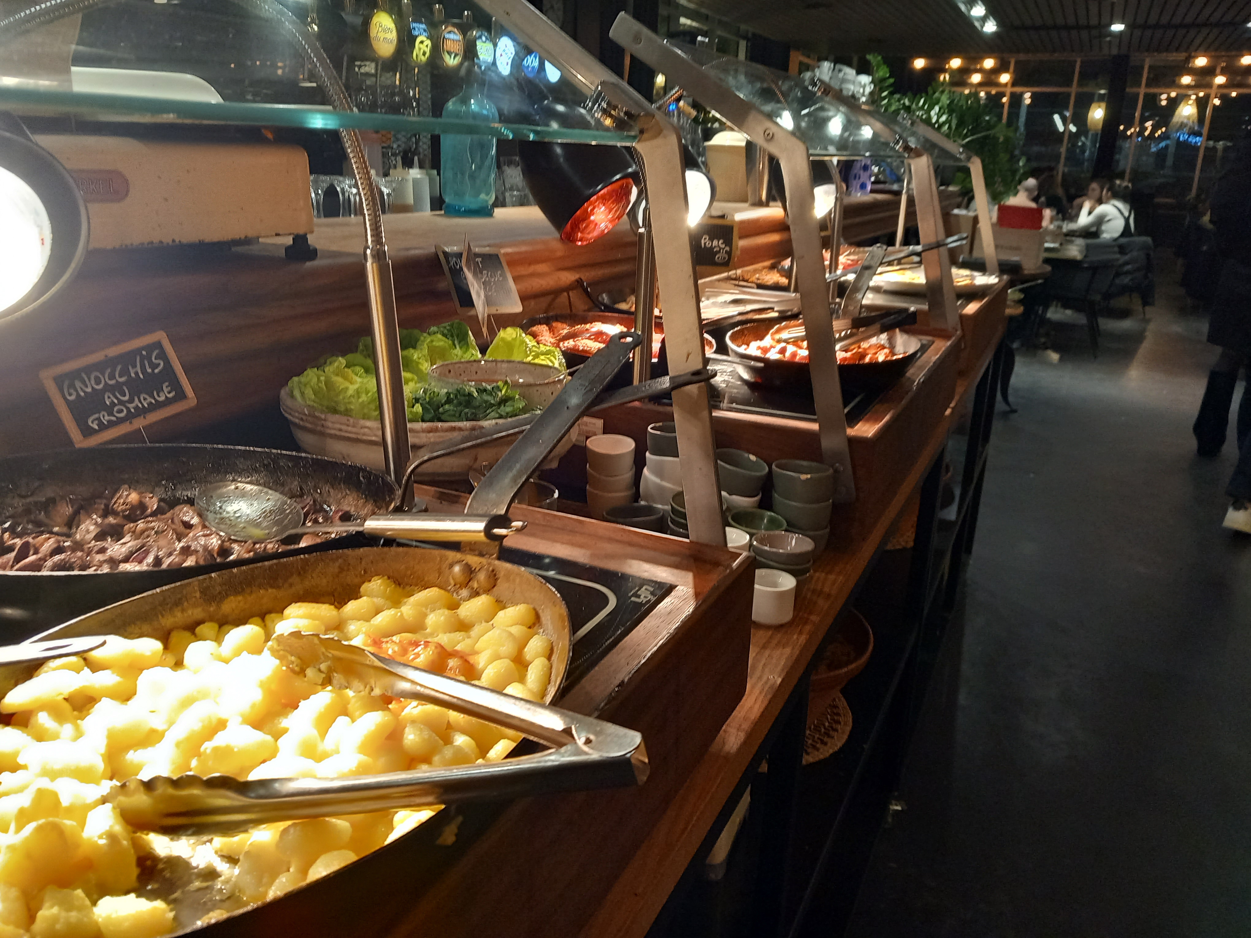 Ce buffet est au M.I.N. de Toulouse. Tous les plats sont à volonté. La variétés des plats est orientée cuisine française. Les produits sont de qualités frais et sourcés. Bon choix d'entrées, plats et desserts. Les plats sont travaillés, surtout ceux de la rôtisserie. Une belle expérience. Il prennent les tickets restaurant J'y retournerai.