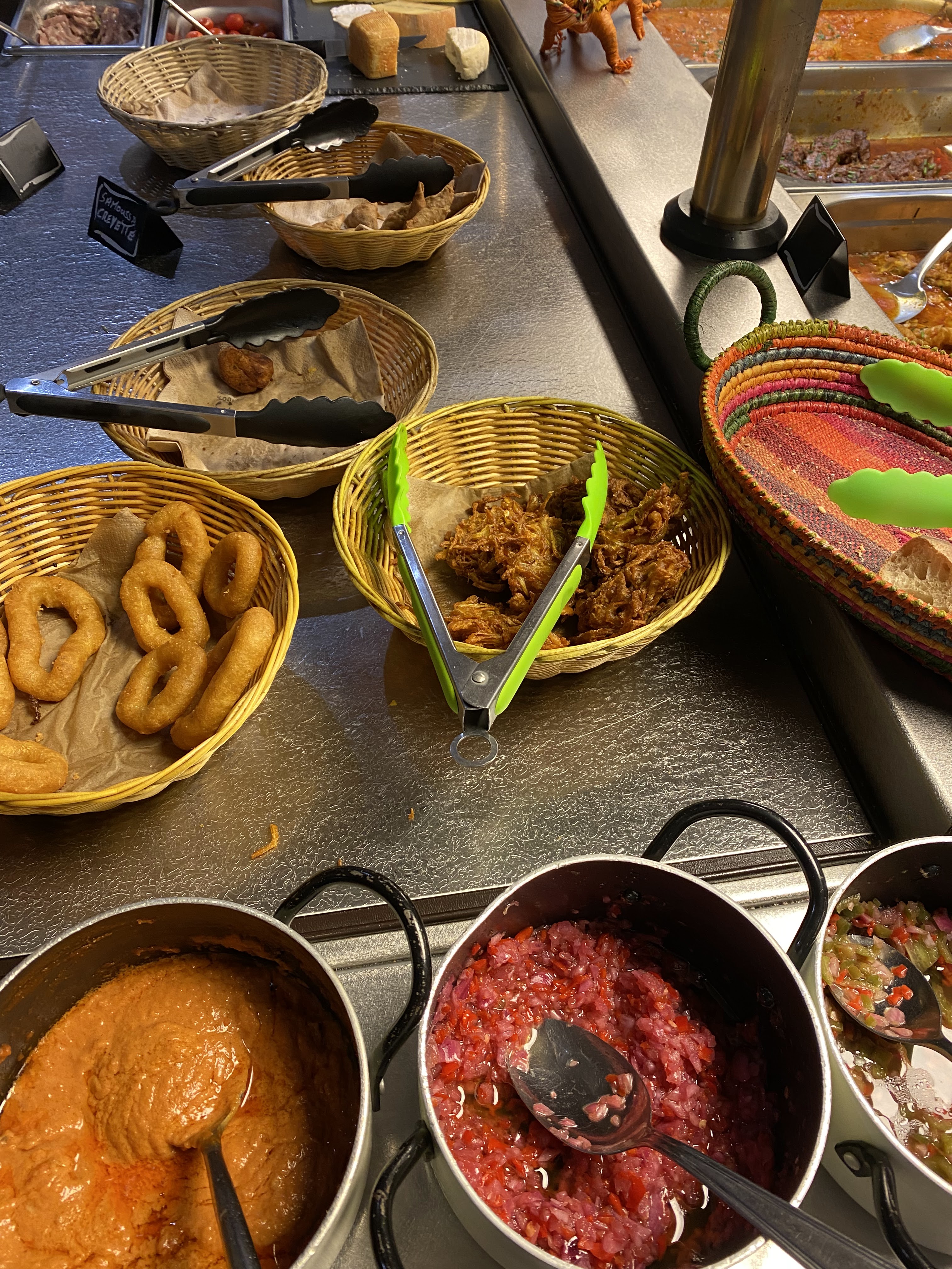 Il n'y a pas beaucoup de choix pour se servir mais j'ai apprécié les saveurs des plats. Le personnel est sympathique. Les toilettes à l'extérieur du restaurant (toilette de chantier) est vraiment un point négatif)