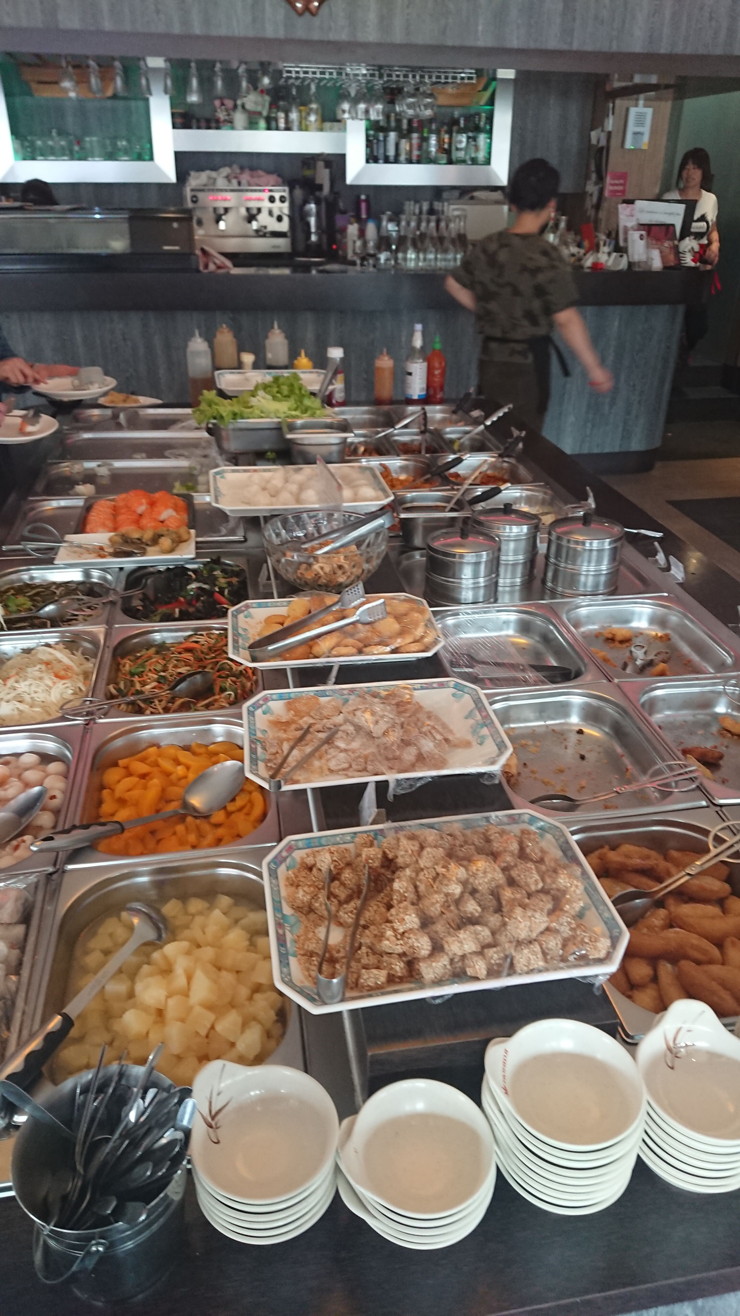 Restaurant avec un buffet à volonté remplissant son rôle. Cuisine asiatique classique, choix relativement diversifiés