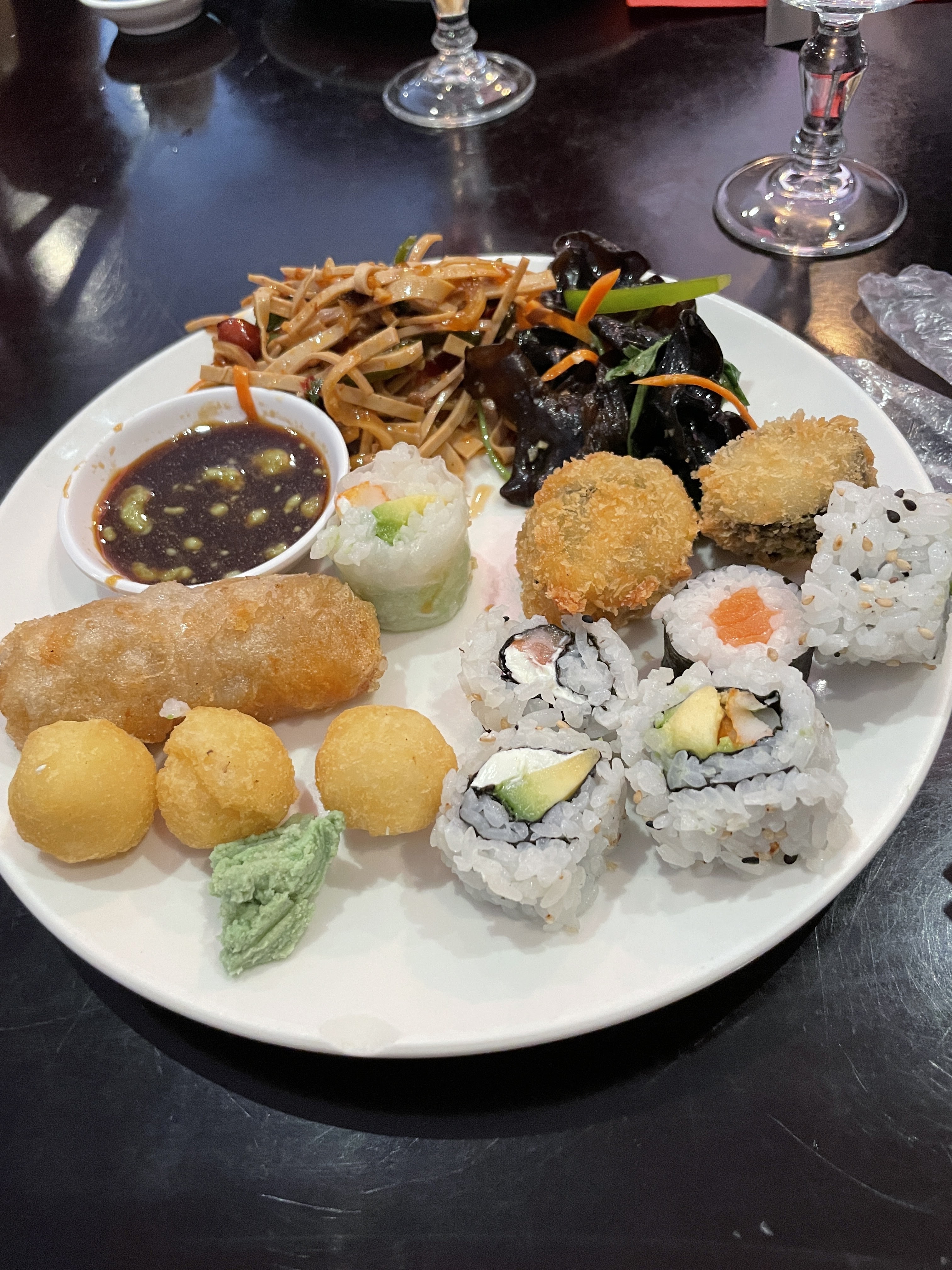 Buffet à volonté avec un large choix de plats chinois et japonais. Je le recommande.