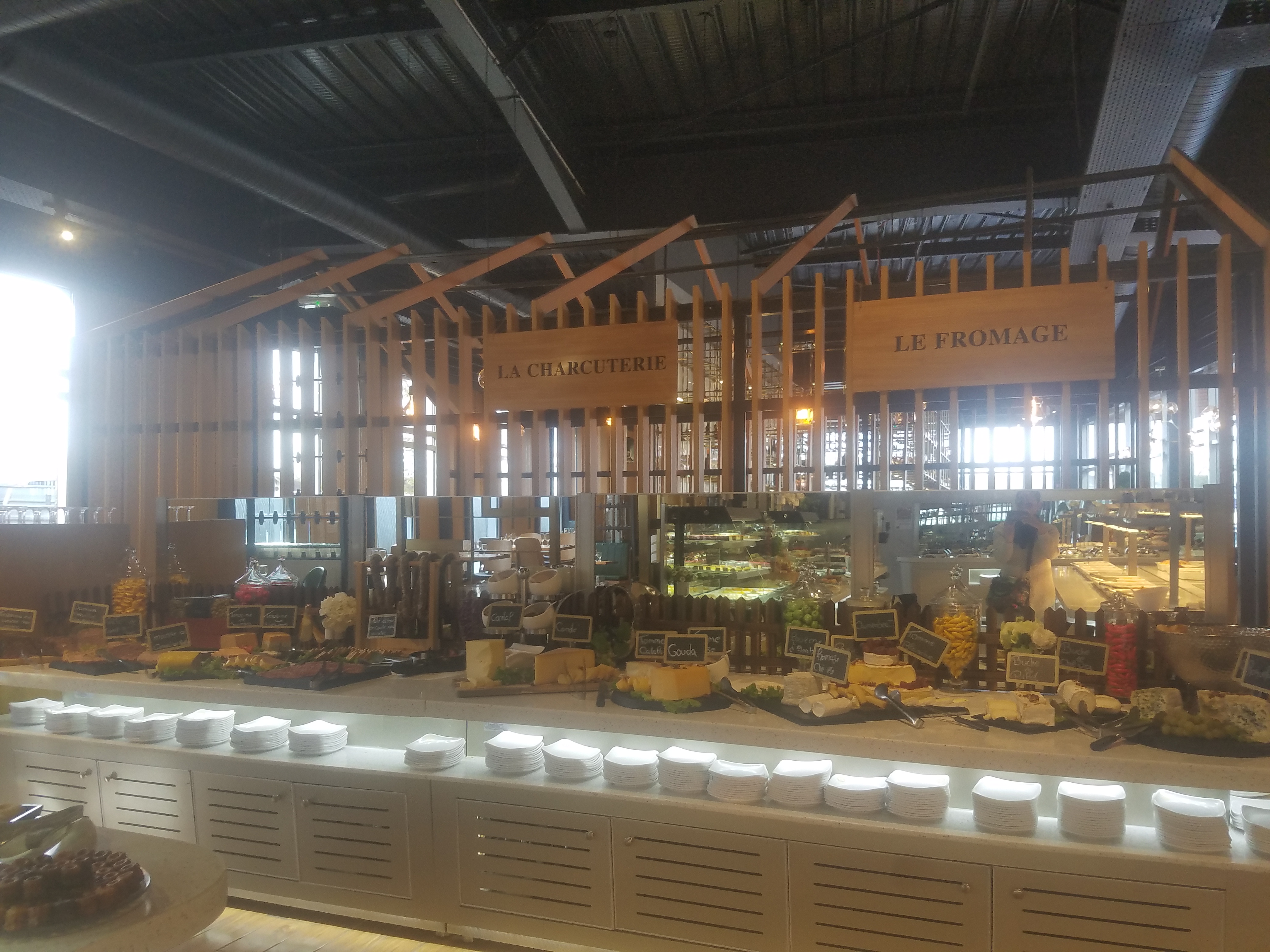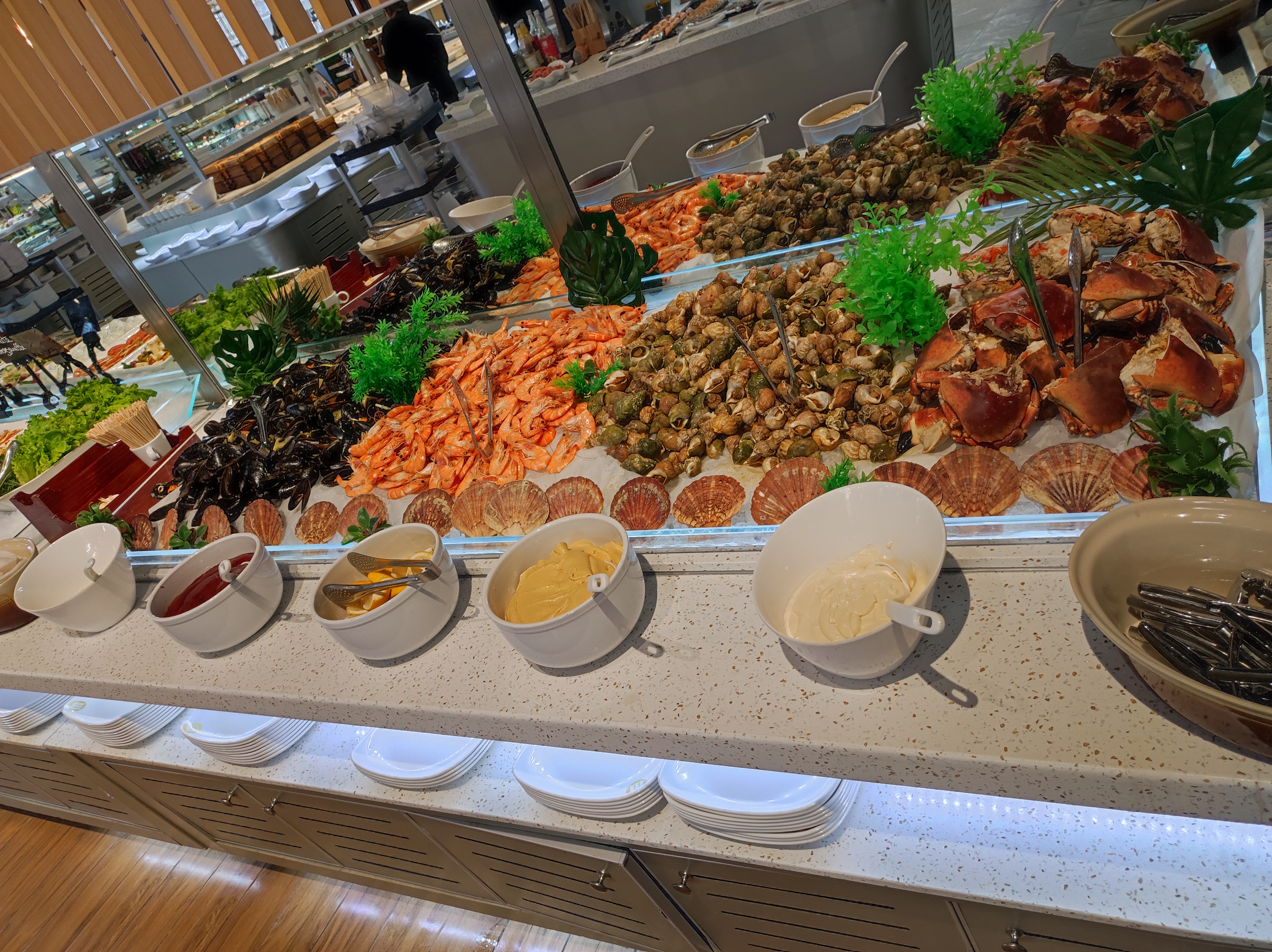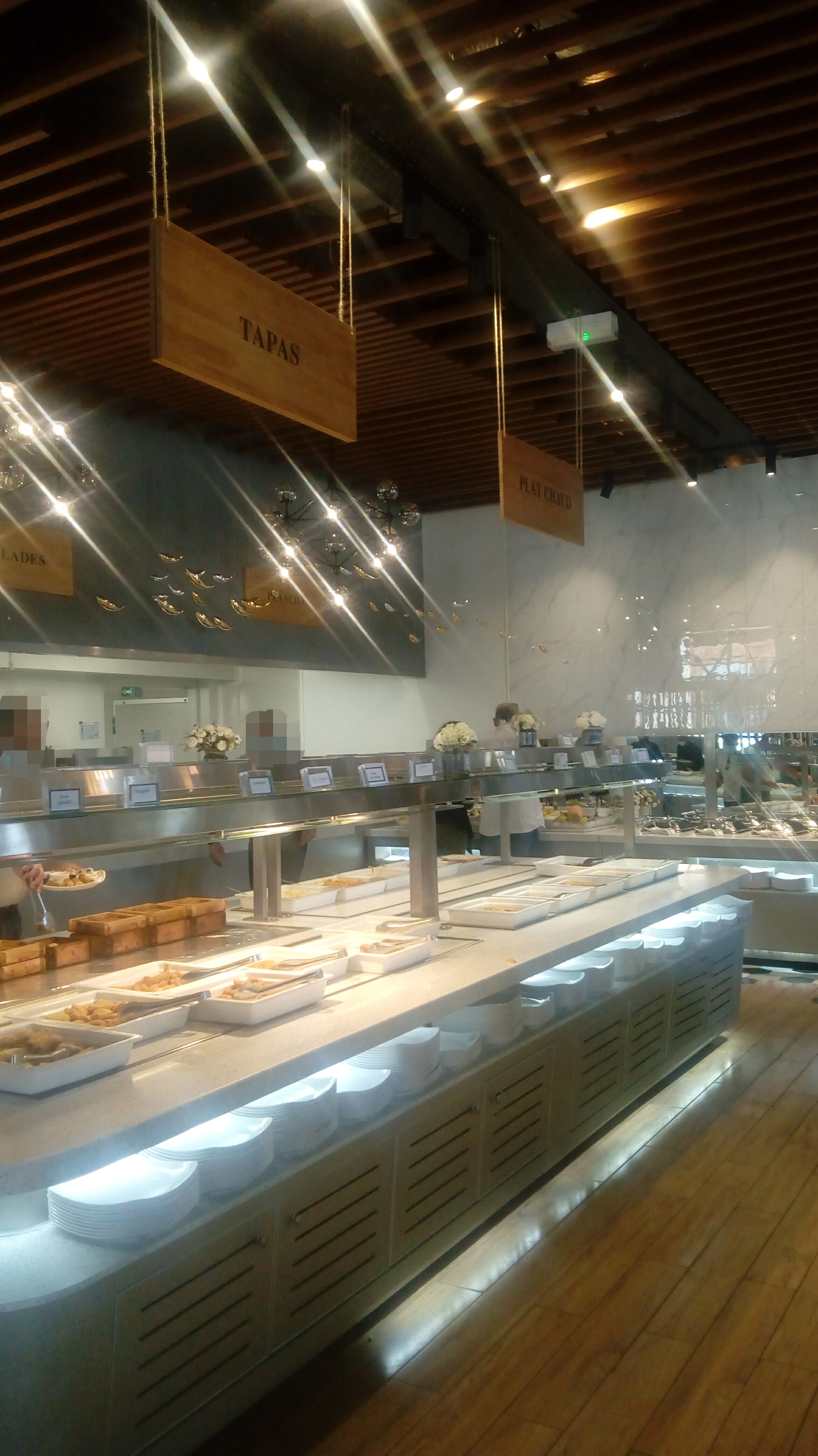 La déco est belle..mais cela s arrête là. Les assiettes sont en plastique. Ce n est pas de la cuisine on y viens pour s alimenter pas pour savourer. Le buffet n'a rien d extraordinaire la qualité est au dessous de tout.. côté crustacés crevettes n étaient pas bonnes..nous leur avons signalés .. La viande n est pas d origine Française. Il y a beaucoup trop de cuisine asiatique..c est plus facile tout est surgelés dans ces plats. Les pâtisseries rien n est préparé..même les glaces italiennes ne sont pas savoureuses..passez votre chemin vous trouverez moins cher et meilleur ailleurs