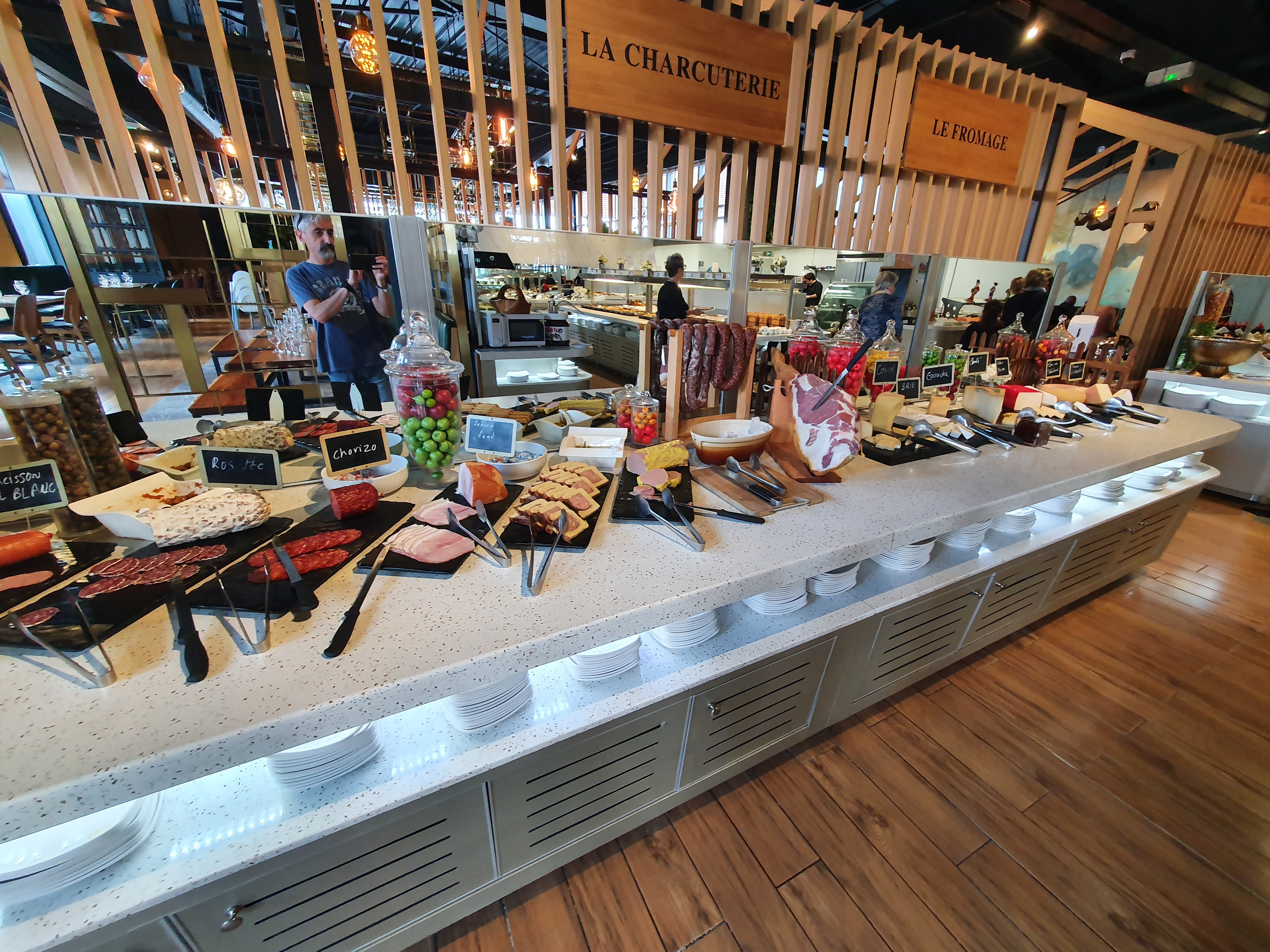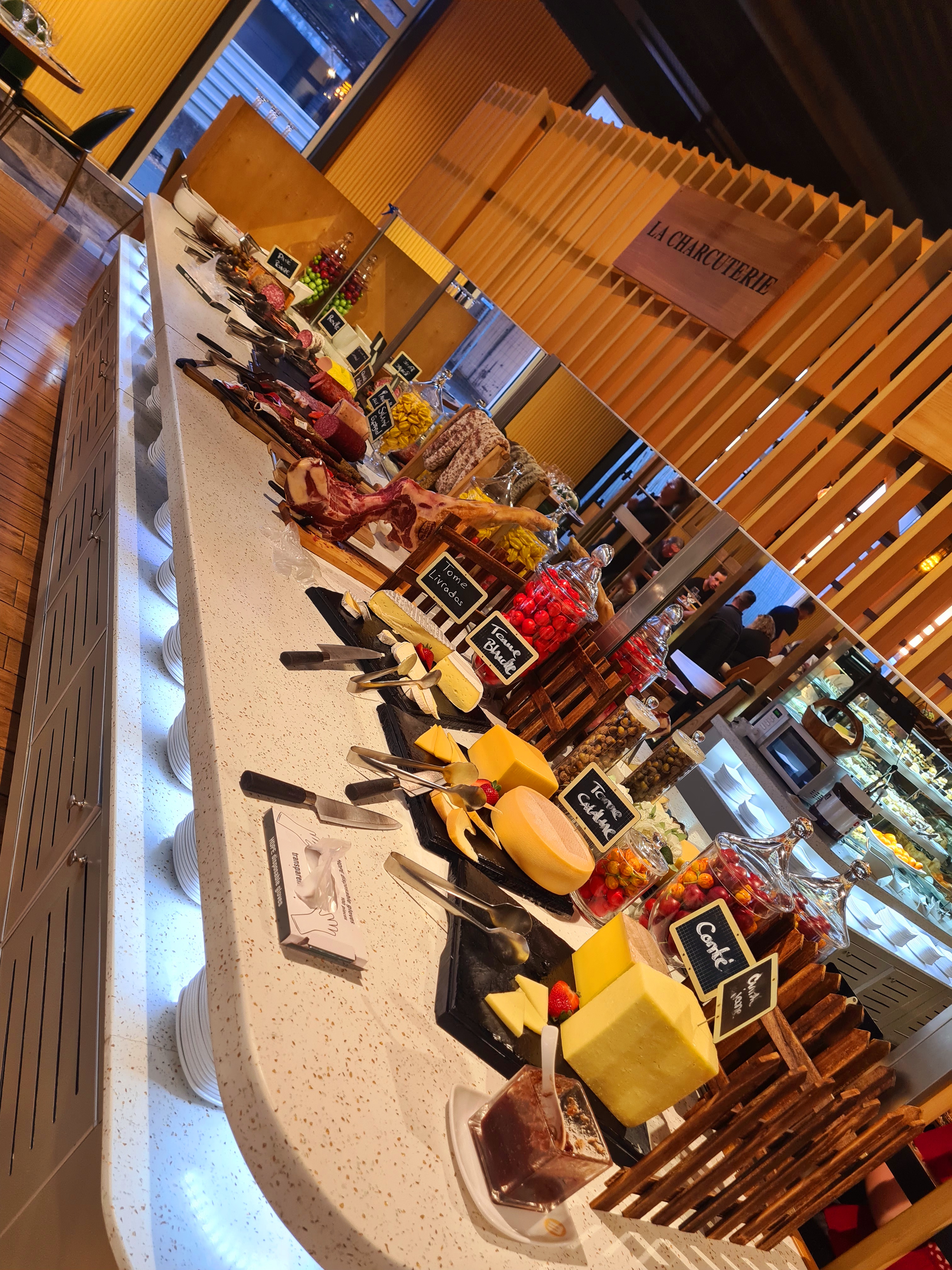 Venue il y a 2semaines Beau buffet et choix à profusion Aujourd'hui à peine quelques entrées chinoises, quasi aucune spécialités en plat... Pas de liste des viandes et cuisson non conforme aux demandes, goût plus que fade et d'eau... ... Idem niveau dessert, fromage et charcuterie Je ne reviendrai plus vu le prix !!!! En plus obligé de manger avec veste ou manteau il fait un froid de canard !!!!