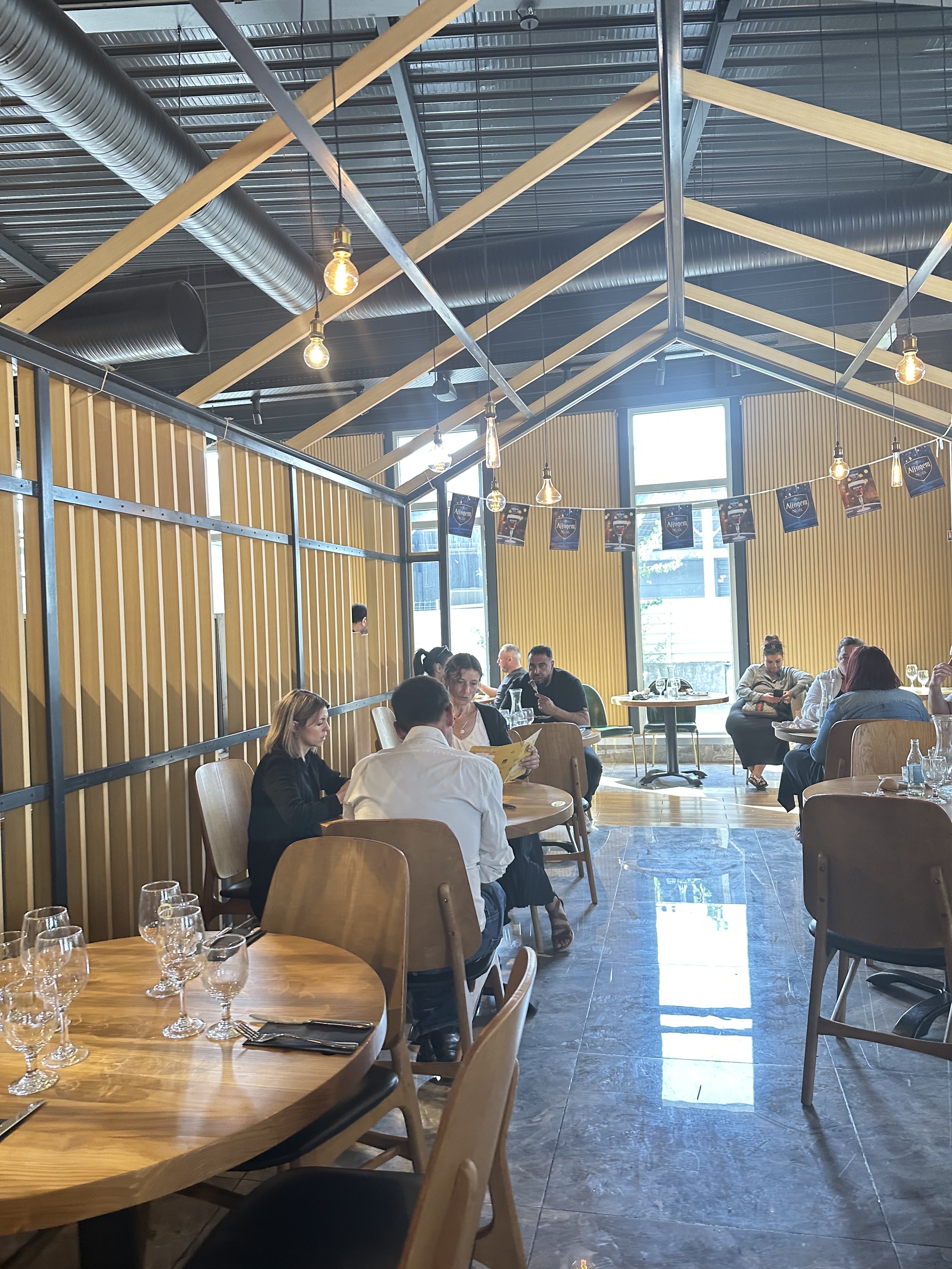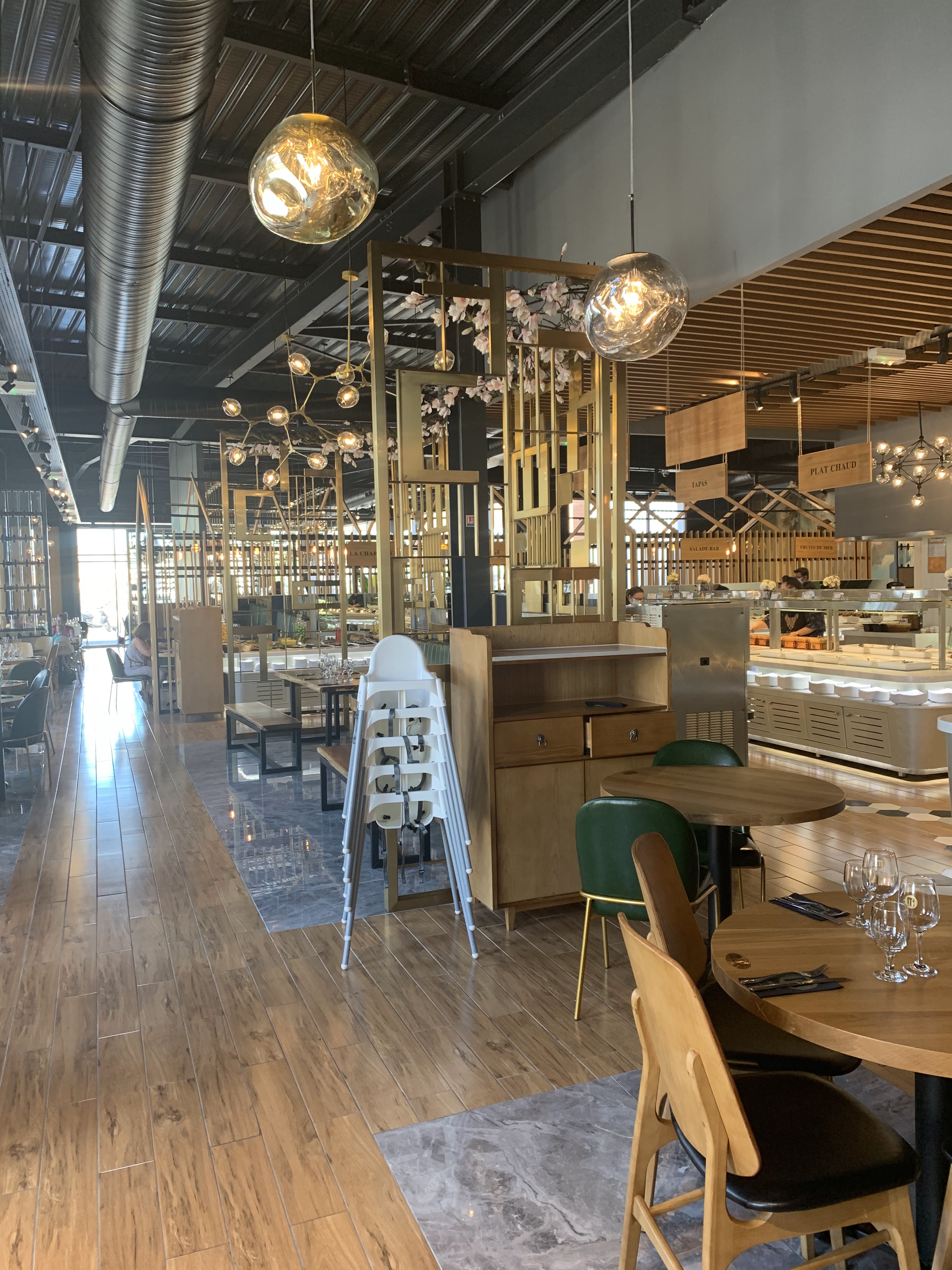 Très joli restaurant la décoration est sympa (luminaires, murs, grandes tables en bois ou on peut y manger au moins à 10). Il y a du choix, mais pour les petits il faudrait rajouter des nuggets, de la purée et des pâtes. On y mange en buffet et il y une note sur le menu boisson pour éviter le gaspillage ce qui est très bien de nos jours. Le concept est bien. Nous y retournerons.