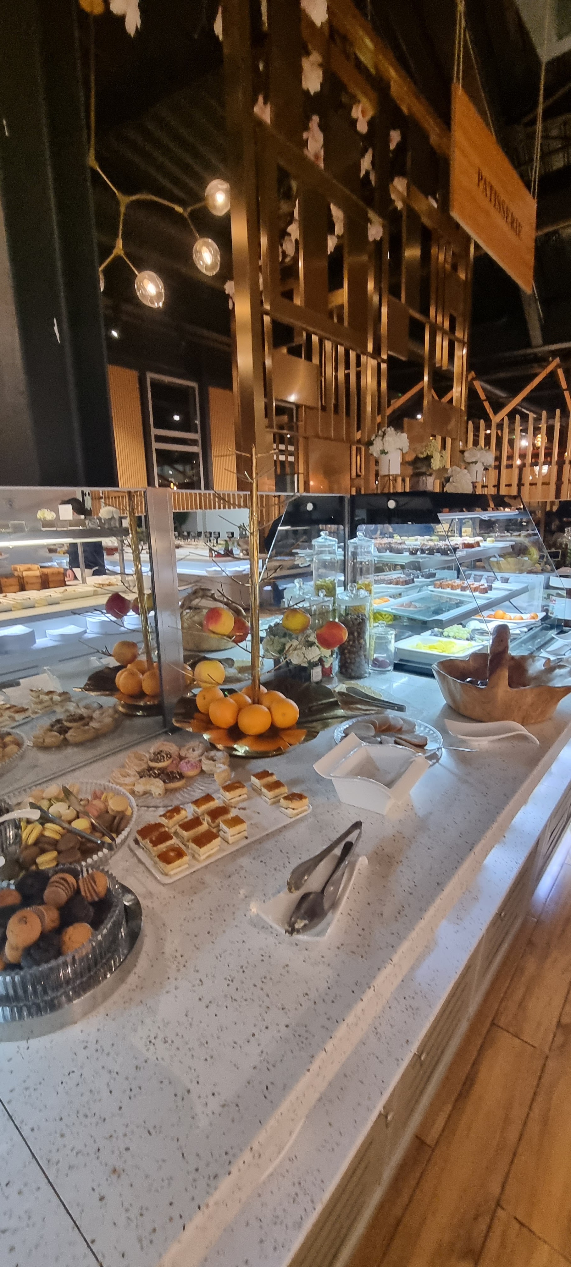 Vraiment un service déplorable. Les serveuses n’esquissent aucun sourire à croire que c’est payant. Nous n’avons même pas pu goûter le buffet chaud car tout était ramassés à 22h alors que cela ferme qu’à 22h30.